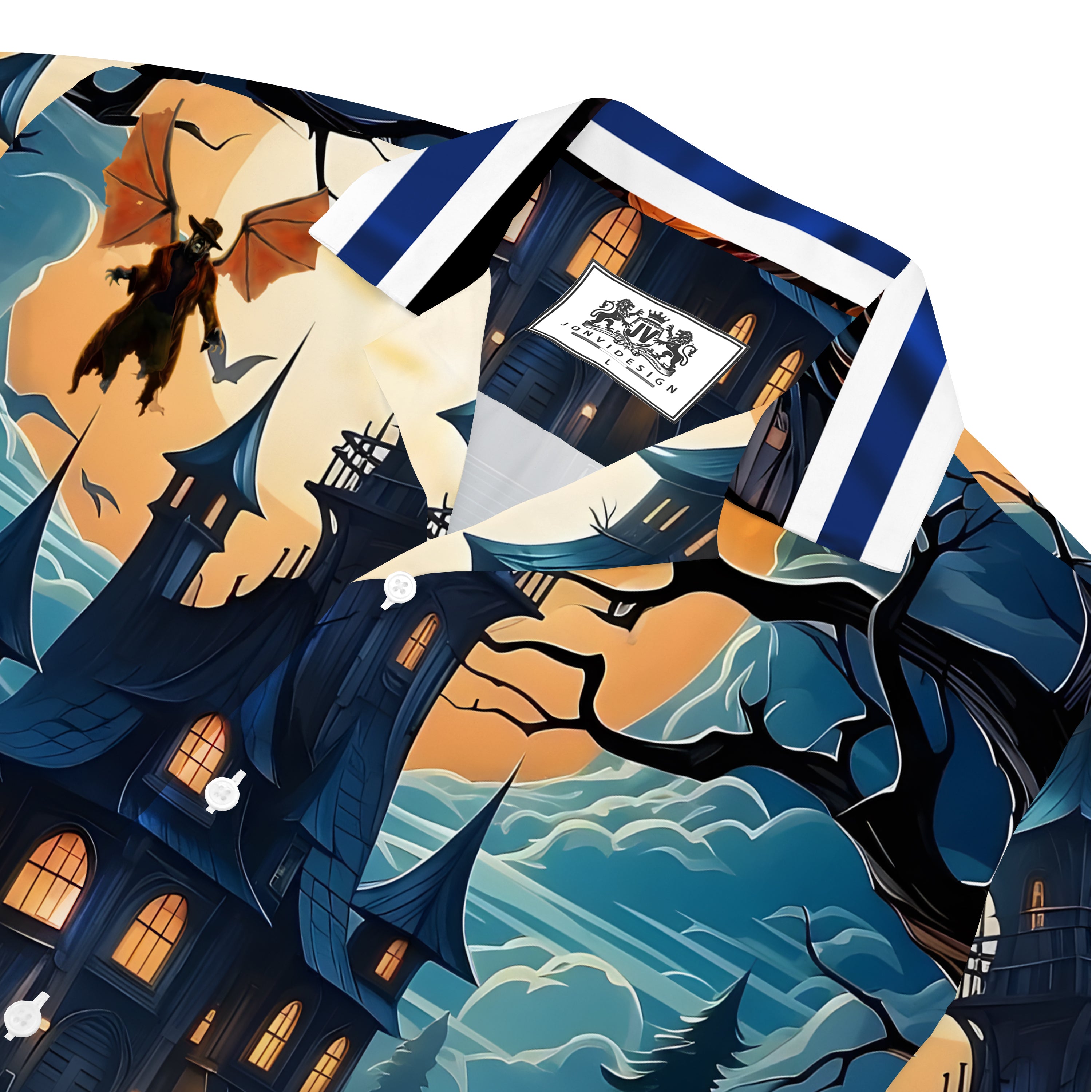 Horror Movie Themed Prints Long Sleeve Camp Collar Shirt