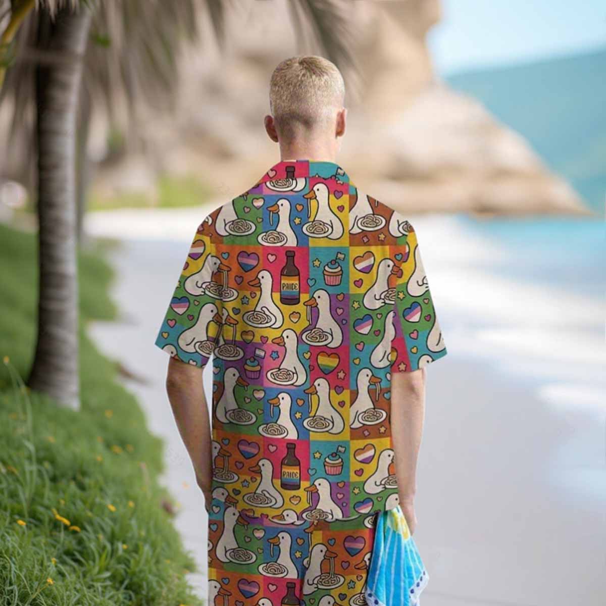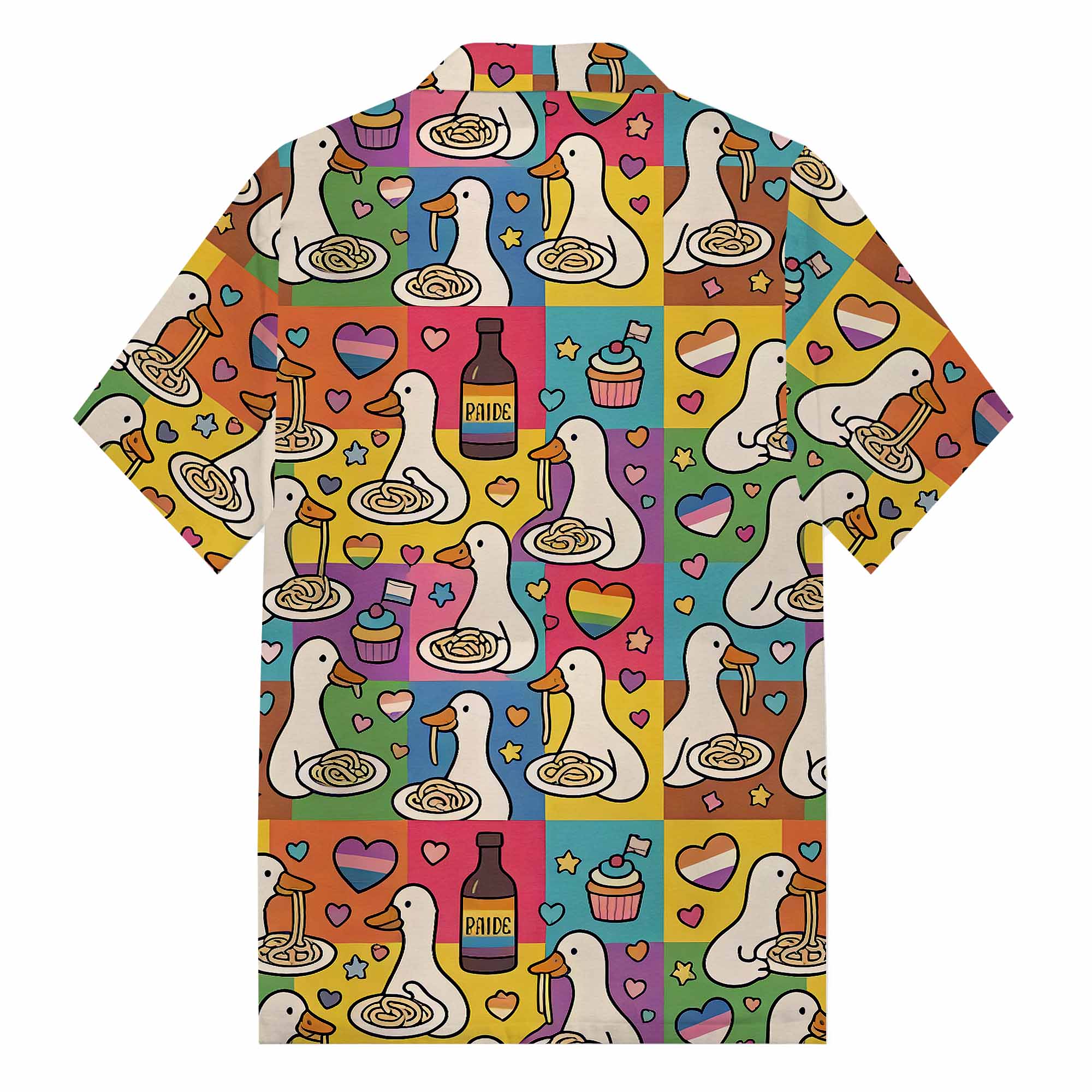 Japanese Goose Eating Spaghetti Hawaiian Camp Collar Short-Sleeved Shirt