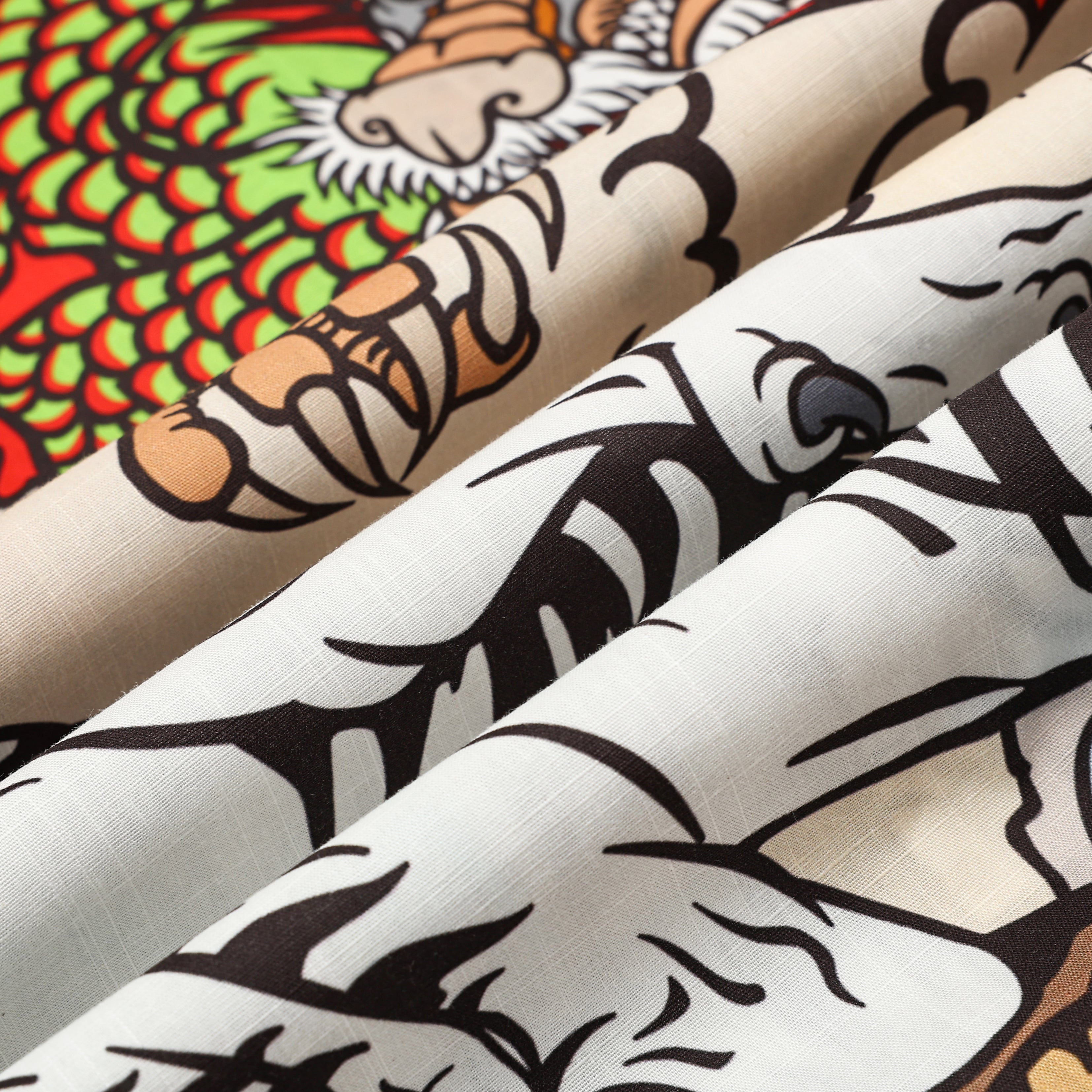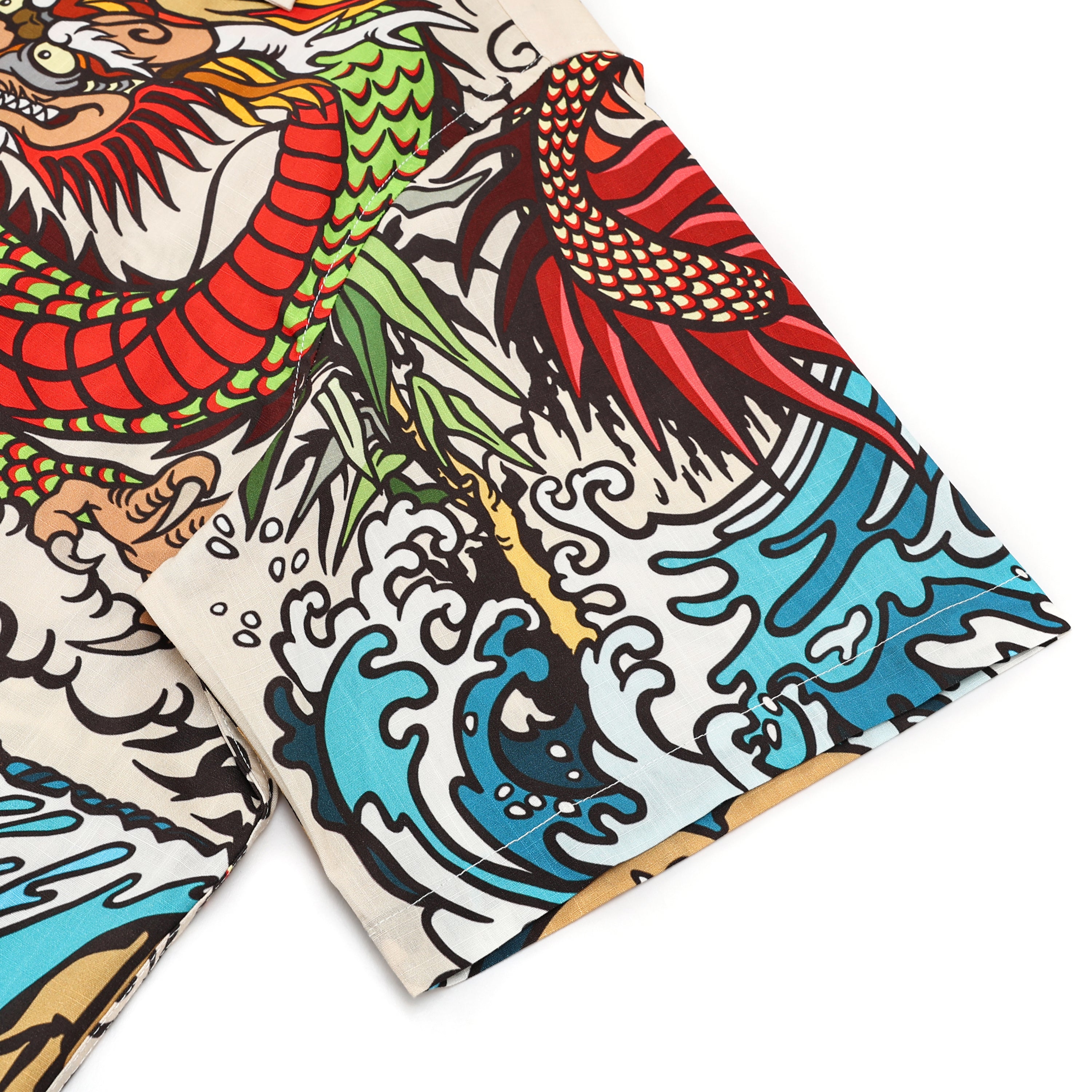 Japanese Tiger Dragon Printed Camp Collar Short Sleeve Shirt