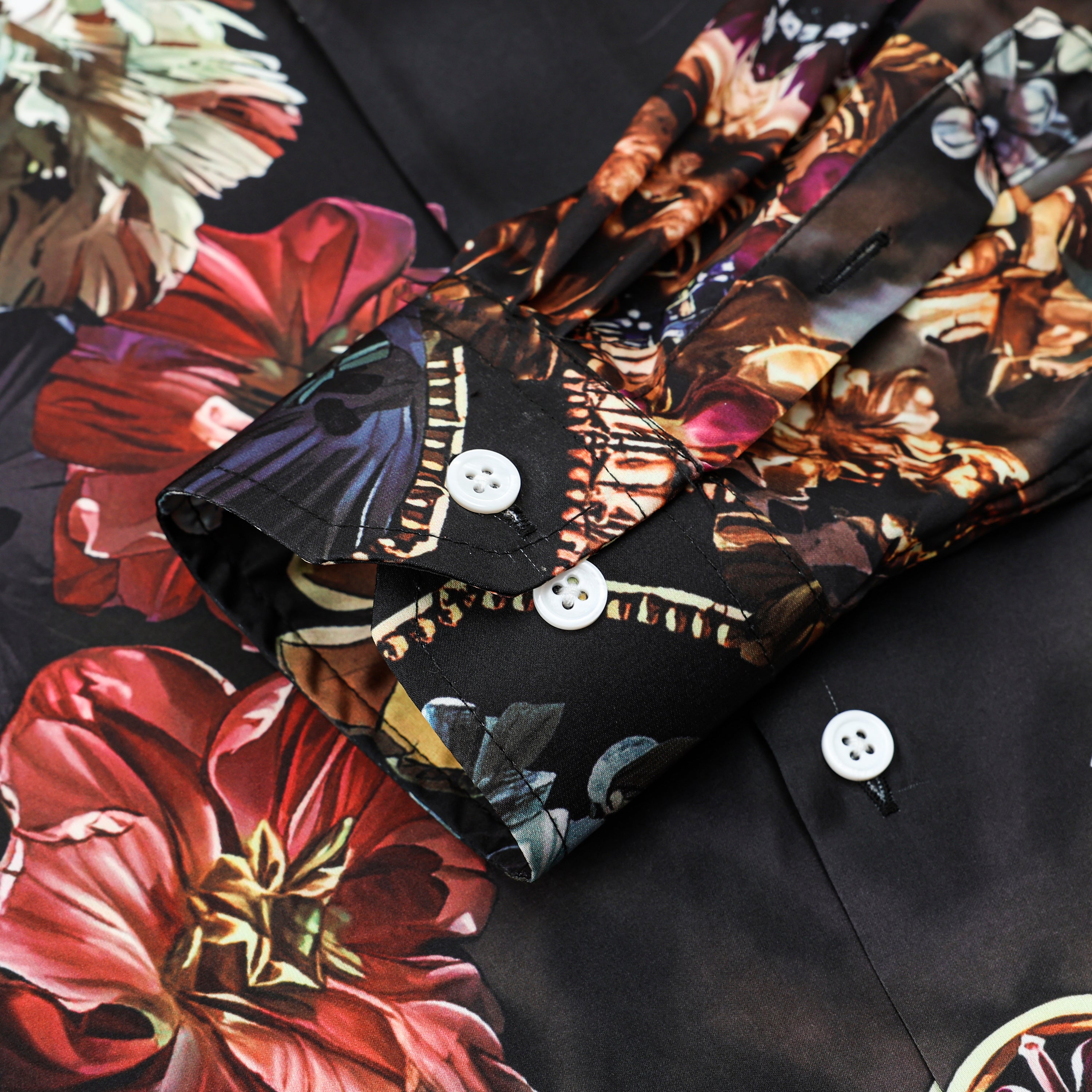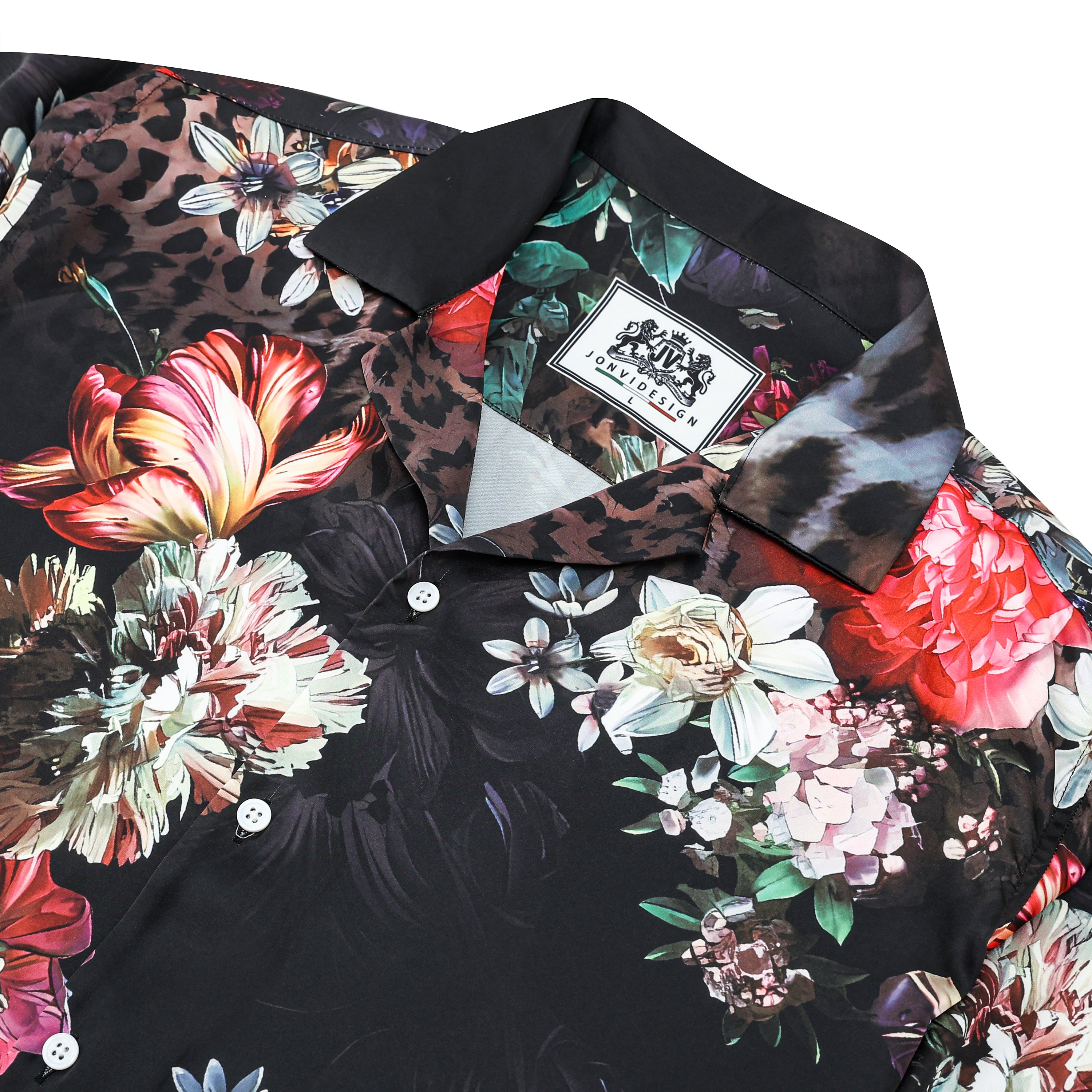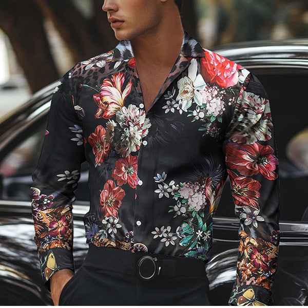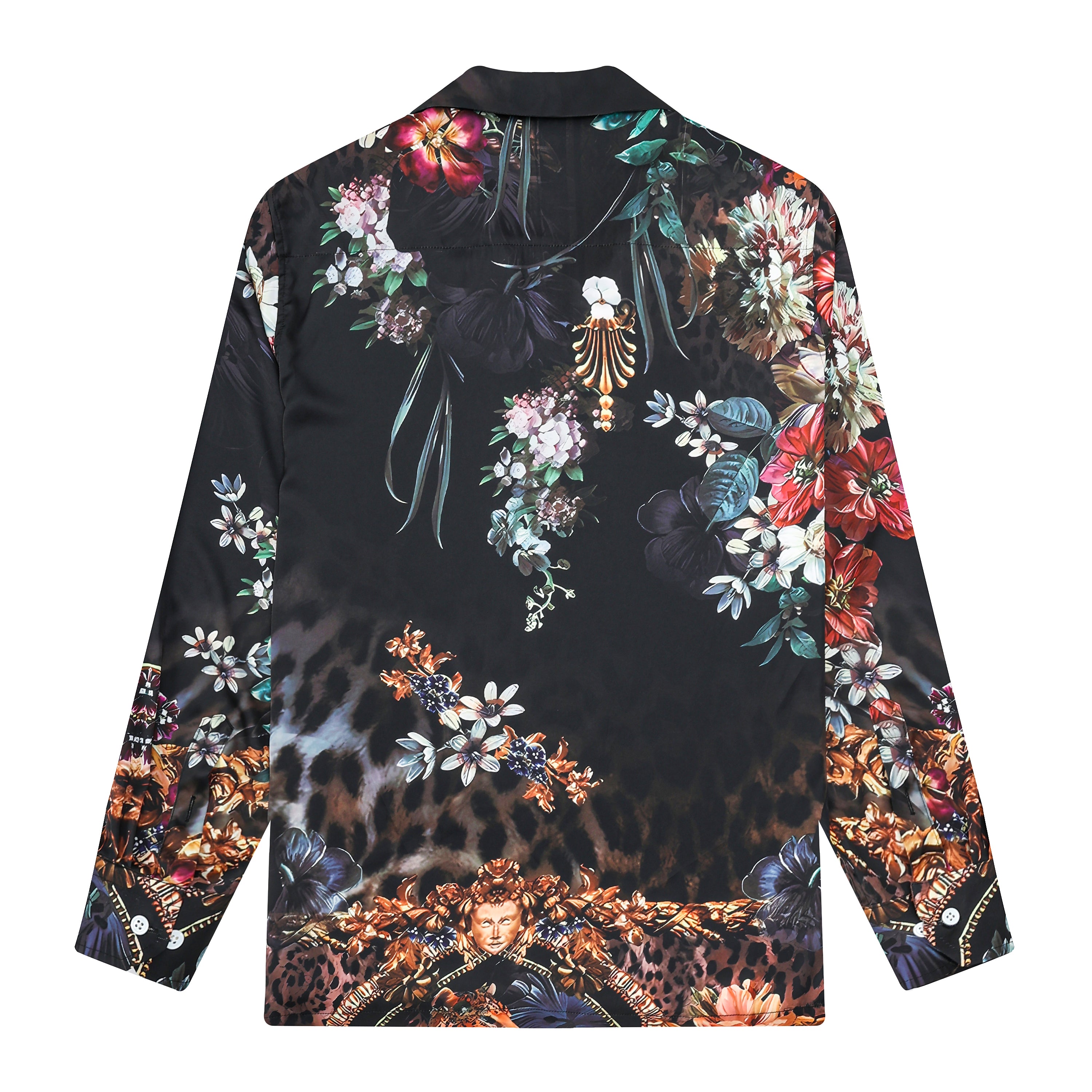 Leopard Printed Floral Camp Collar Long Sleeve Shirt