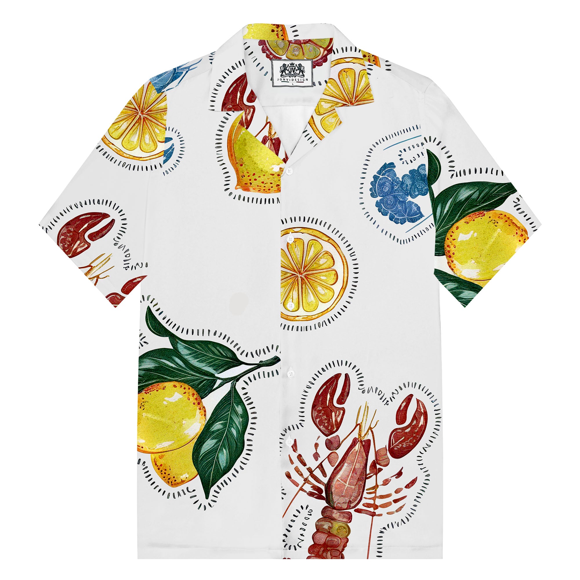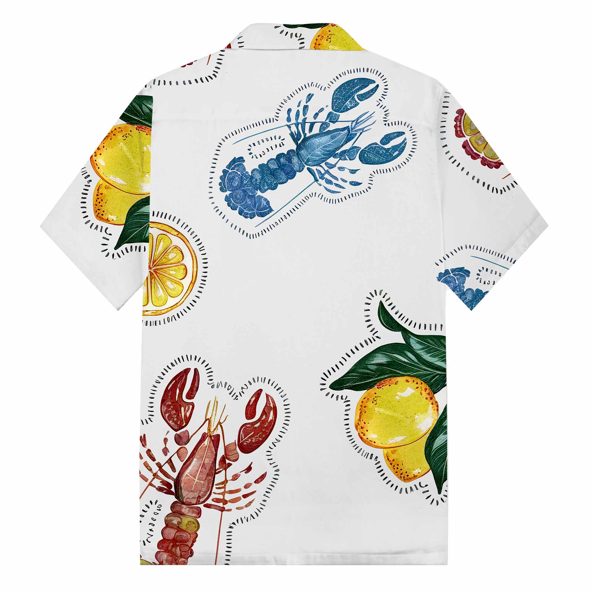 Lobster And Lemon Pattern Camp Collar Short-Sleeved Shirt