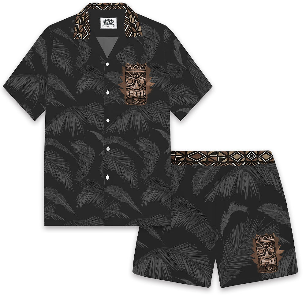 Men's Black Tiki eEements Camp Collar Casual Shirt