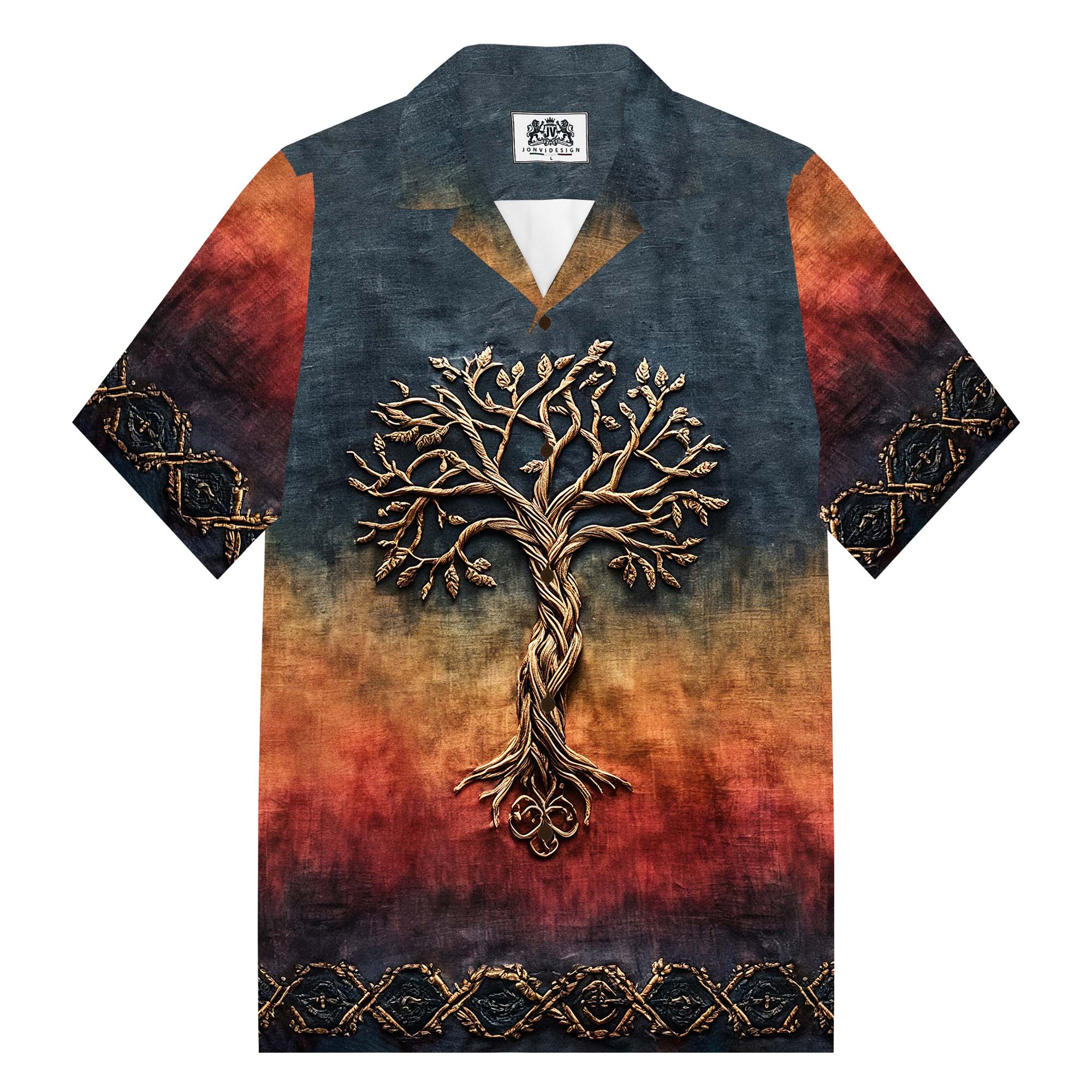 Men's Celtic Knot Tree Of Life Gradient Camp Collar Short Sleeve Shirt