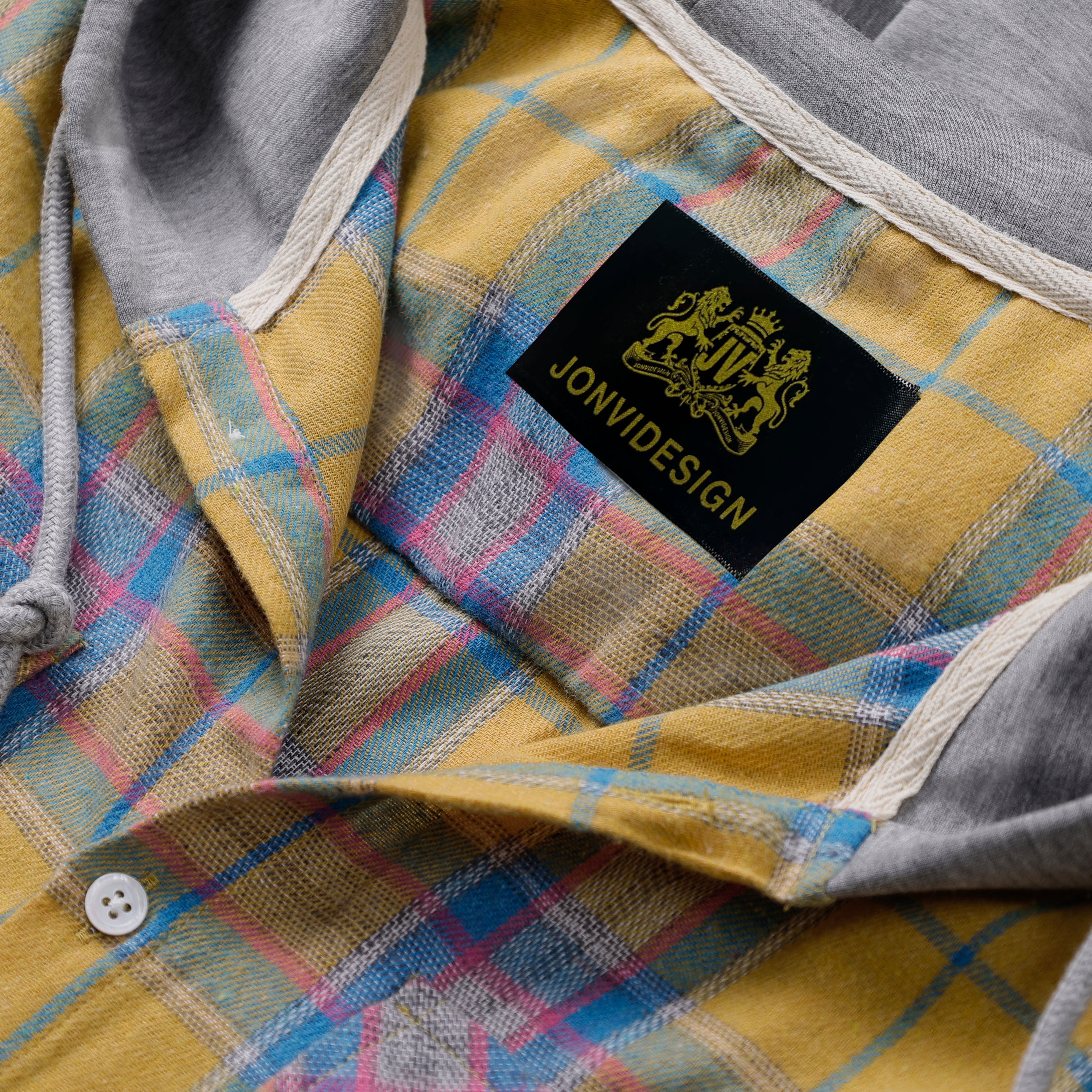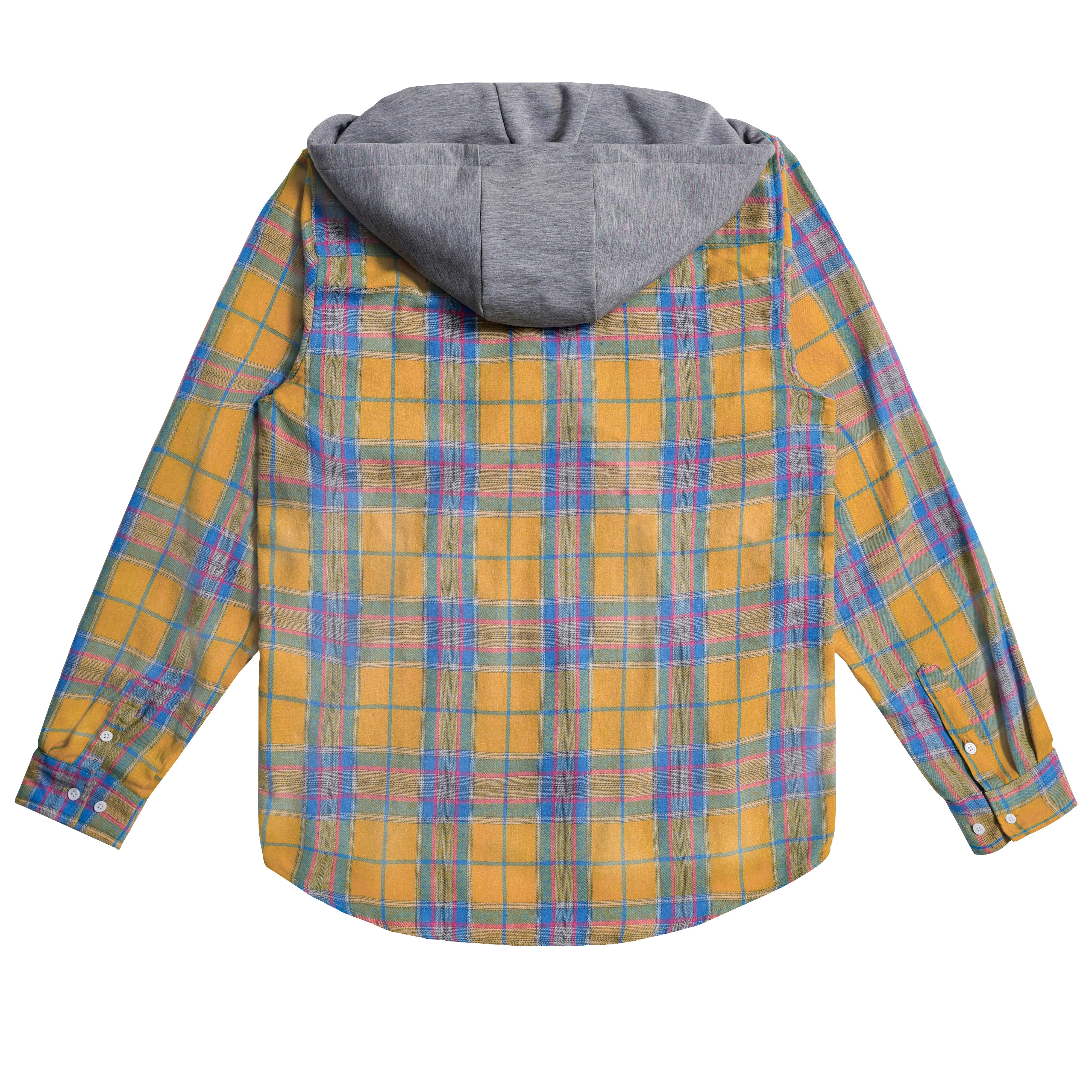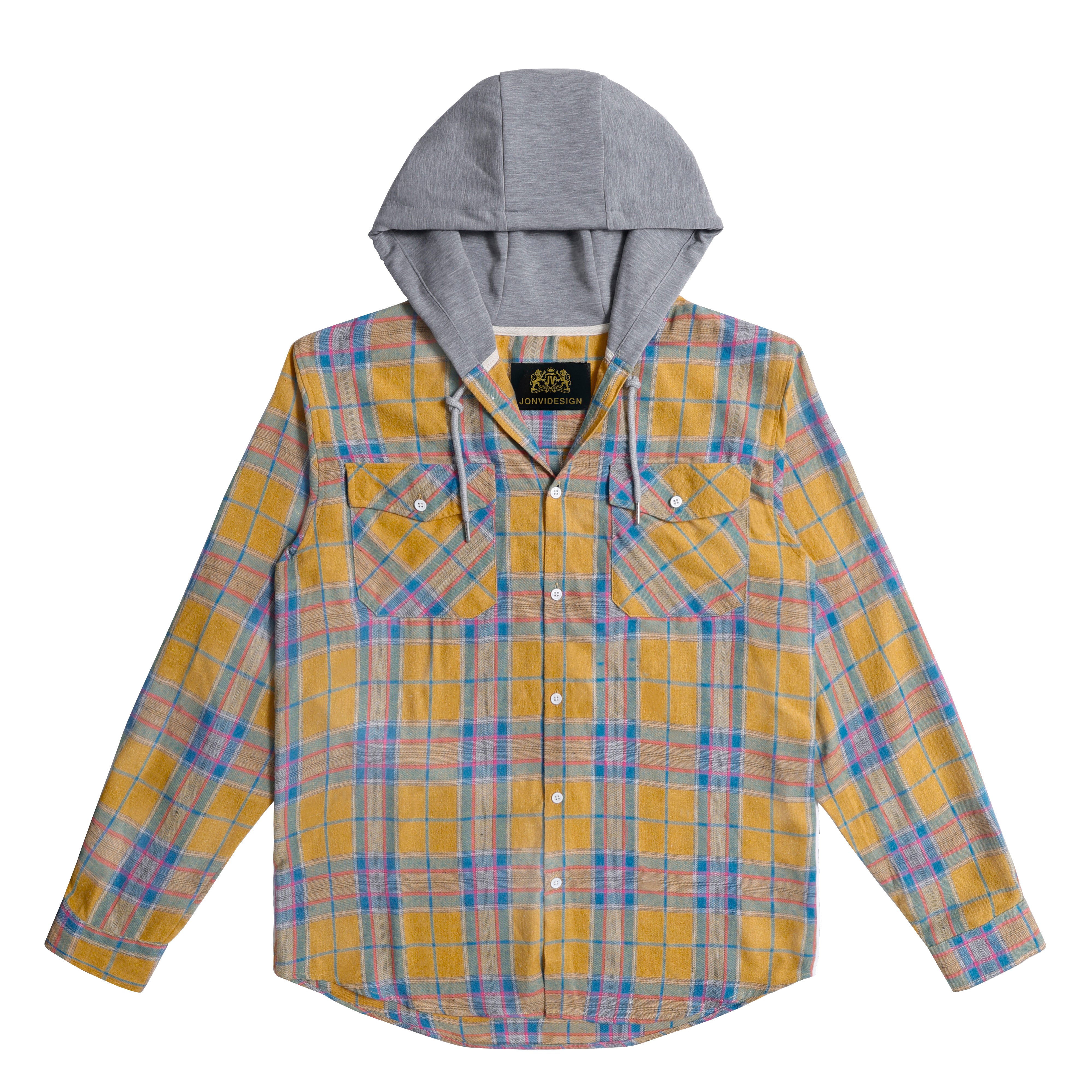 Men's Shirt with Hood - Long Sleeve Cotton Plaid Style