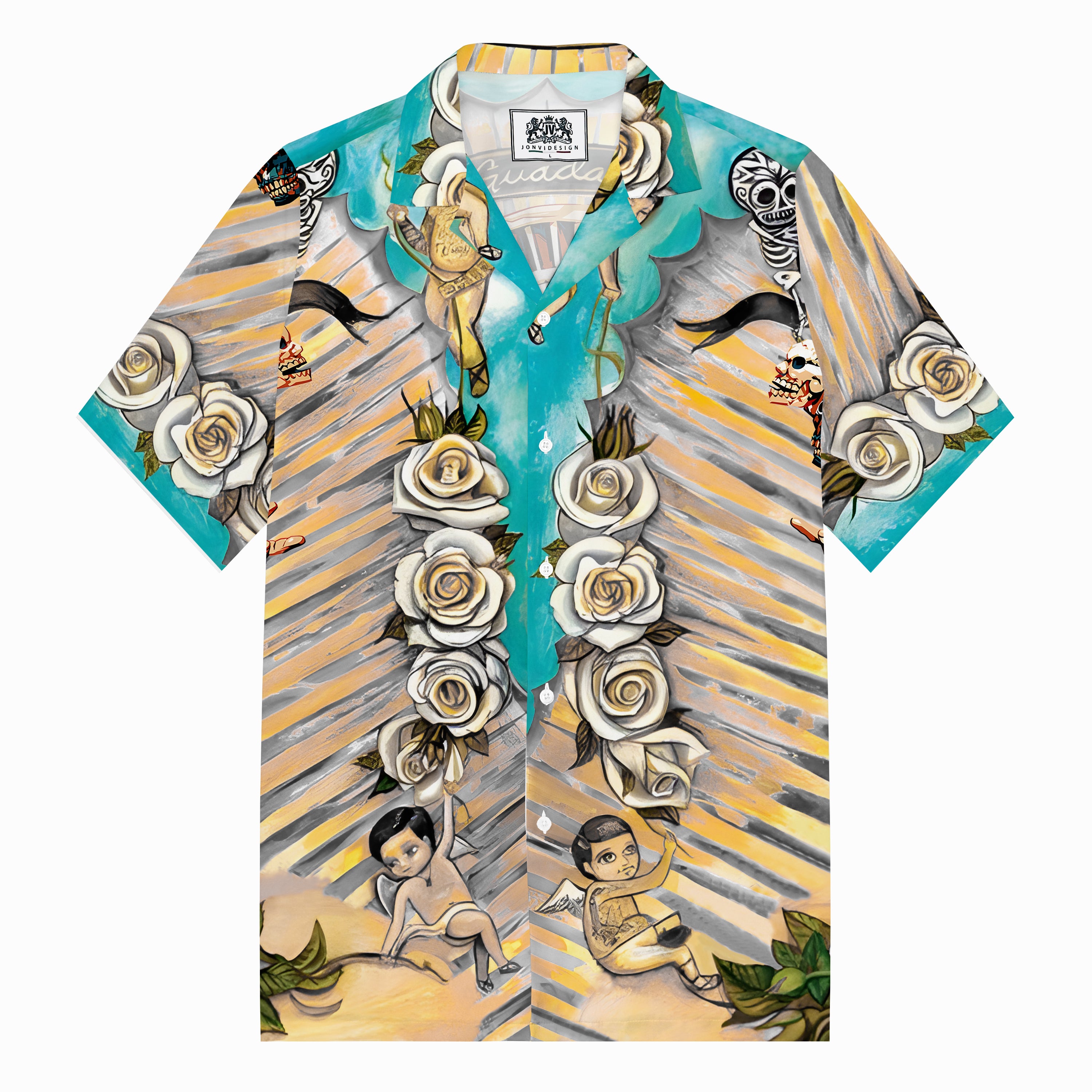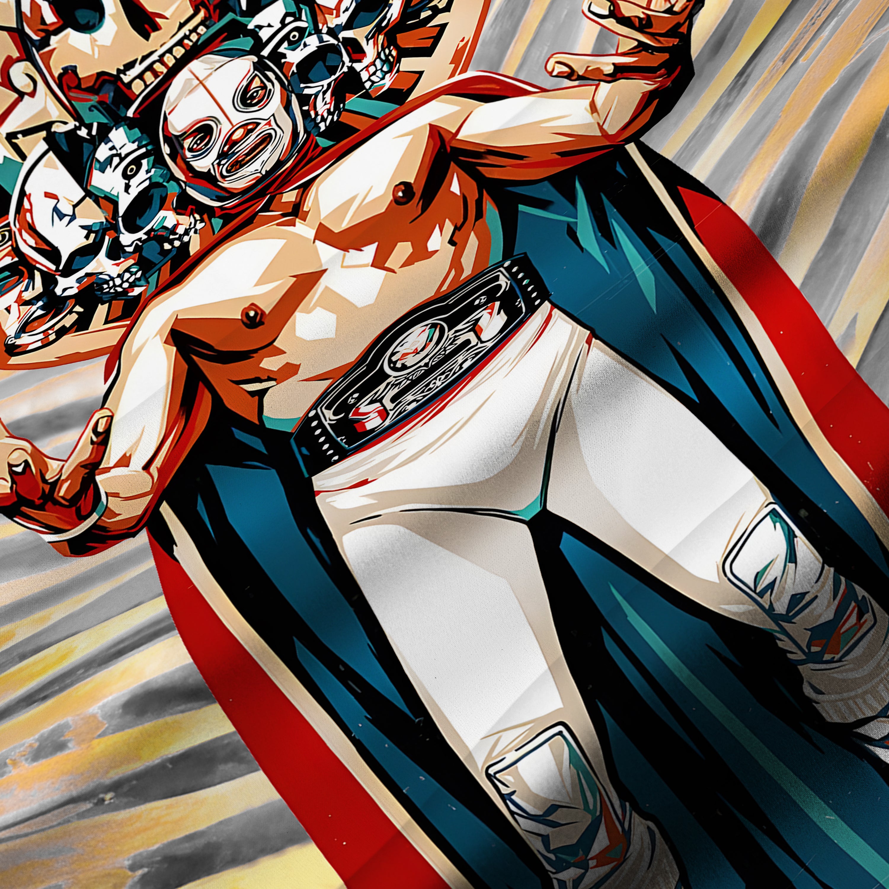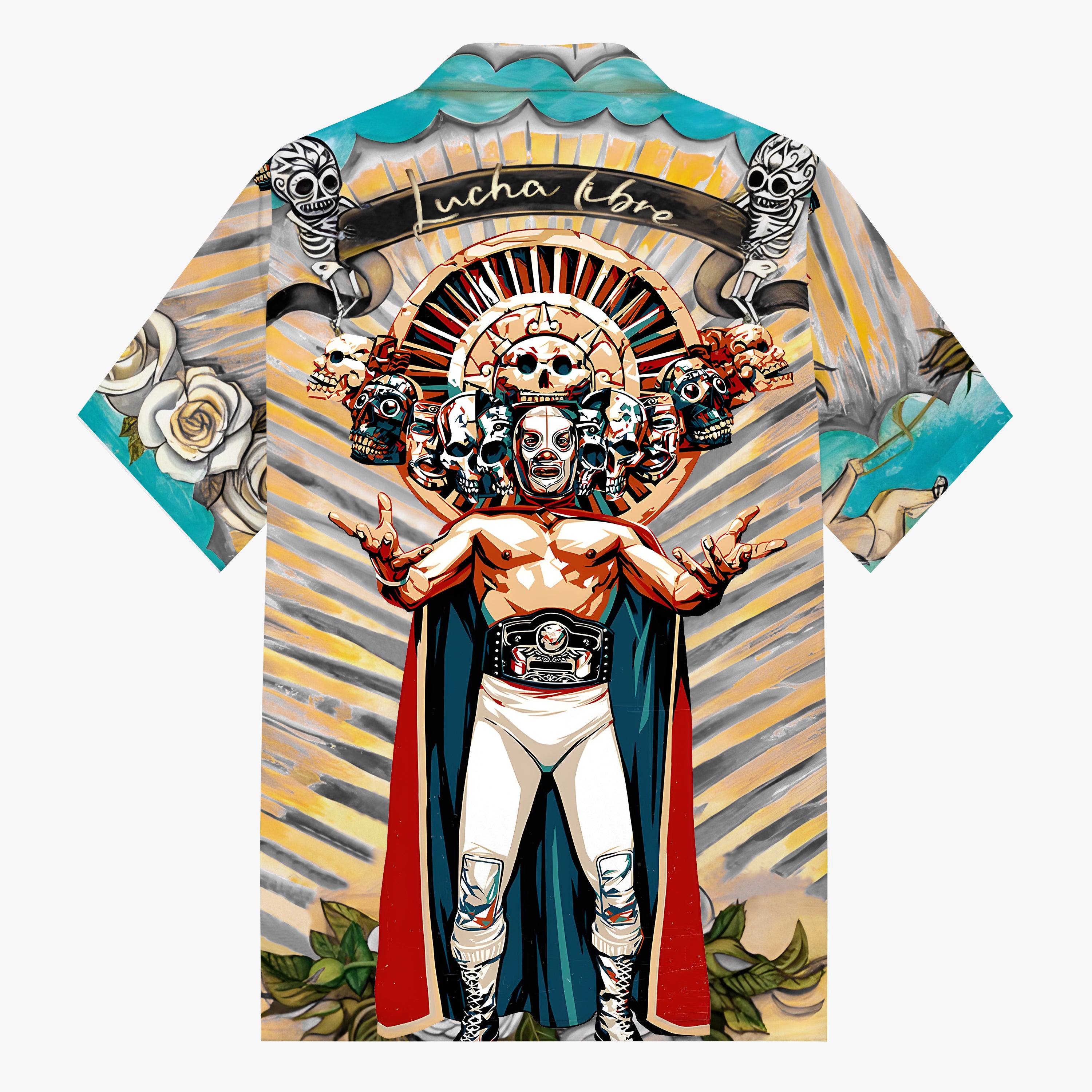 Mexican Wrestling Print Camp Collar Short Sleeve Shirt
