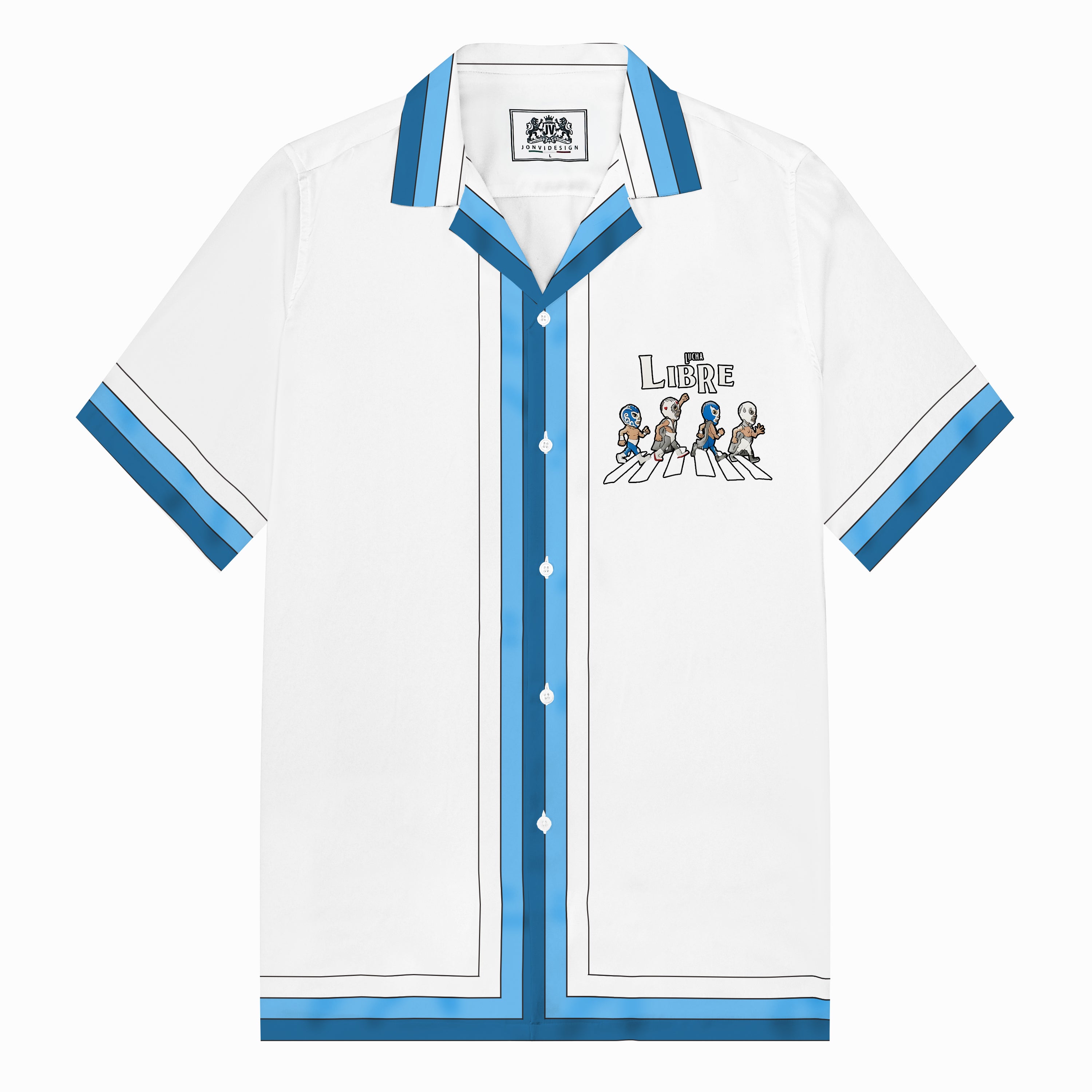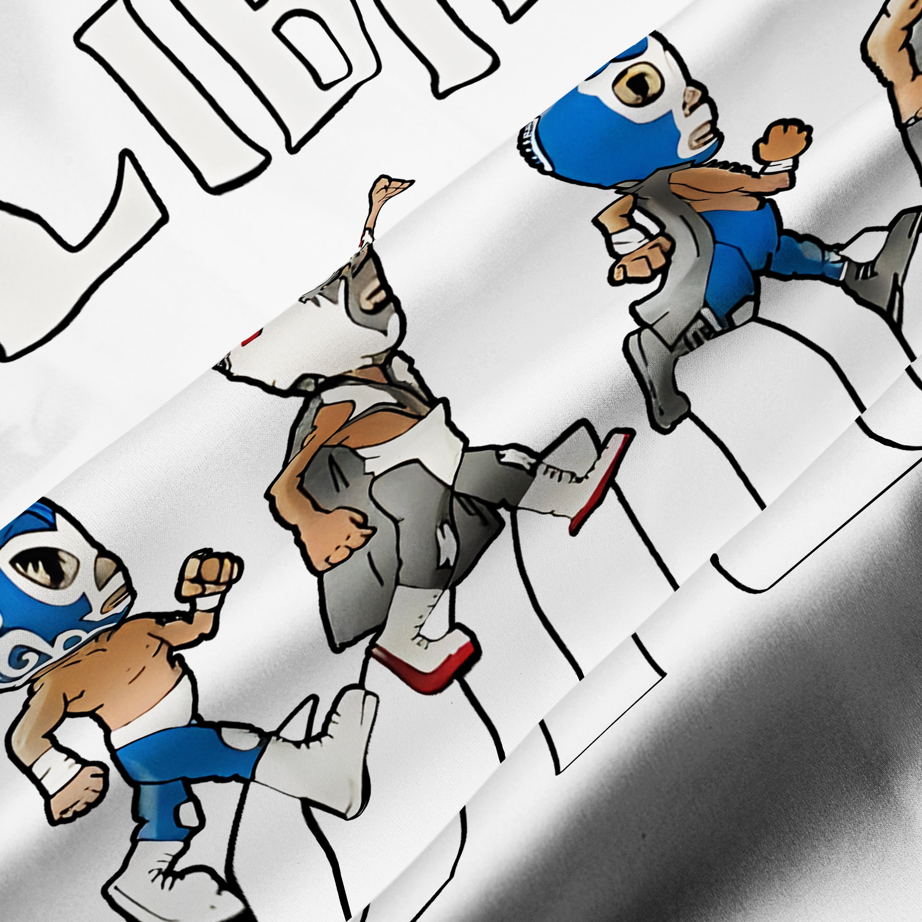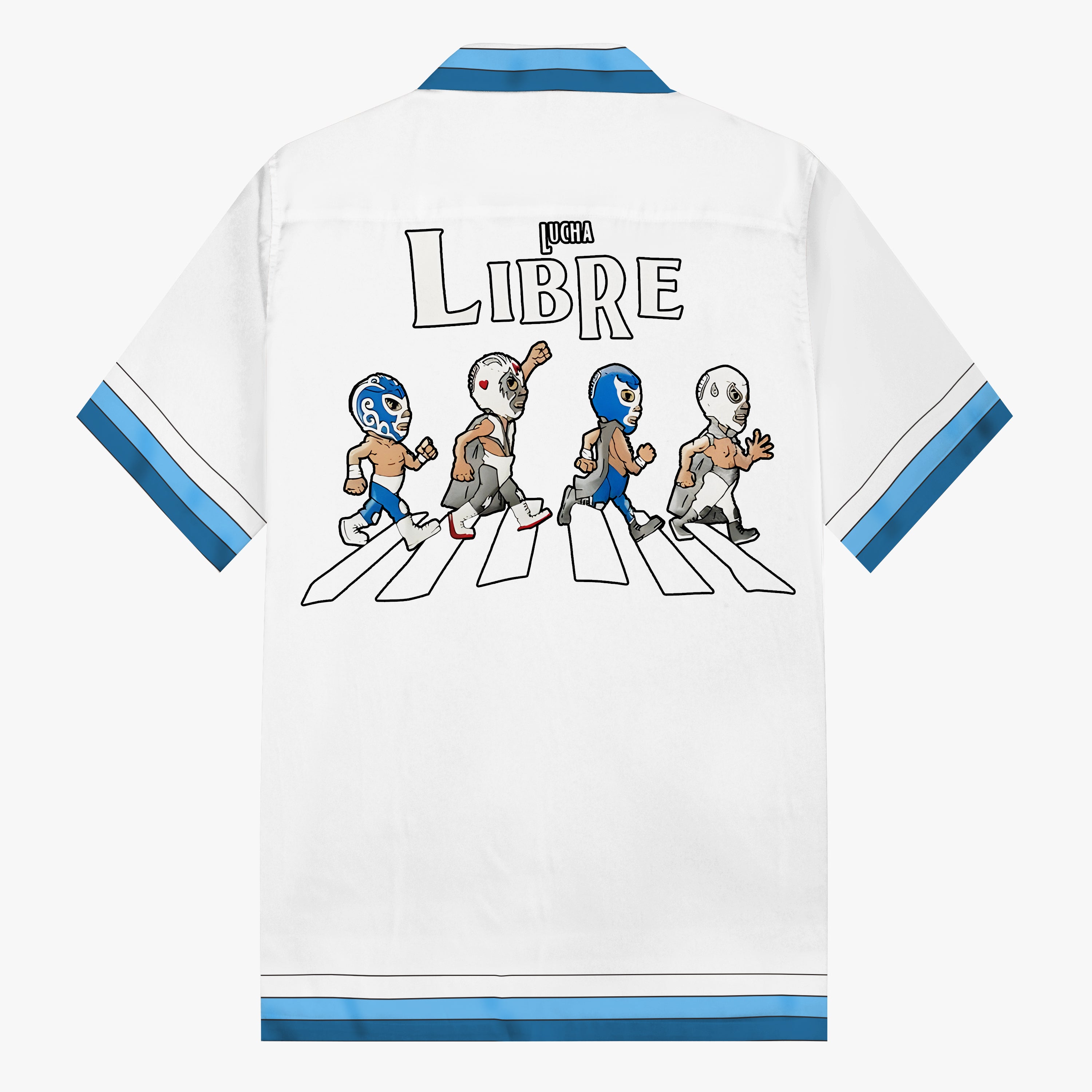 Mexican Wrestling Q Version 4-Person Print Camp Collar Short Sleeve Shirt