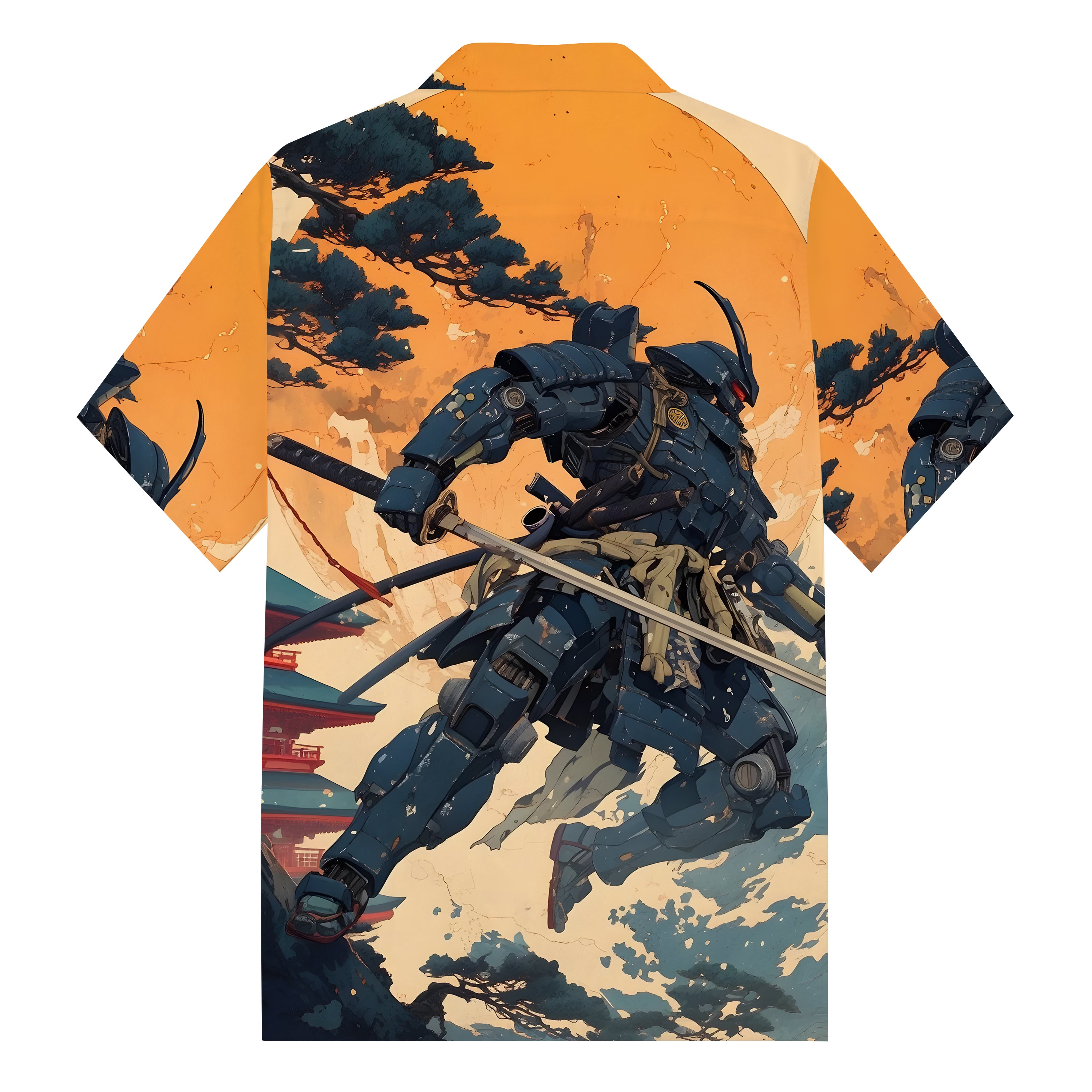 Gundam Series Print Camp Collar Short Sleeve Shirt Orange short-sleeved shirt