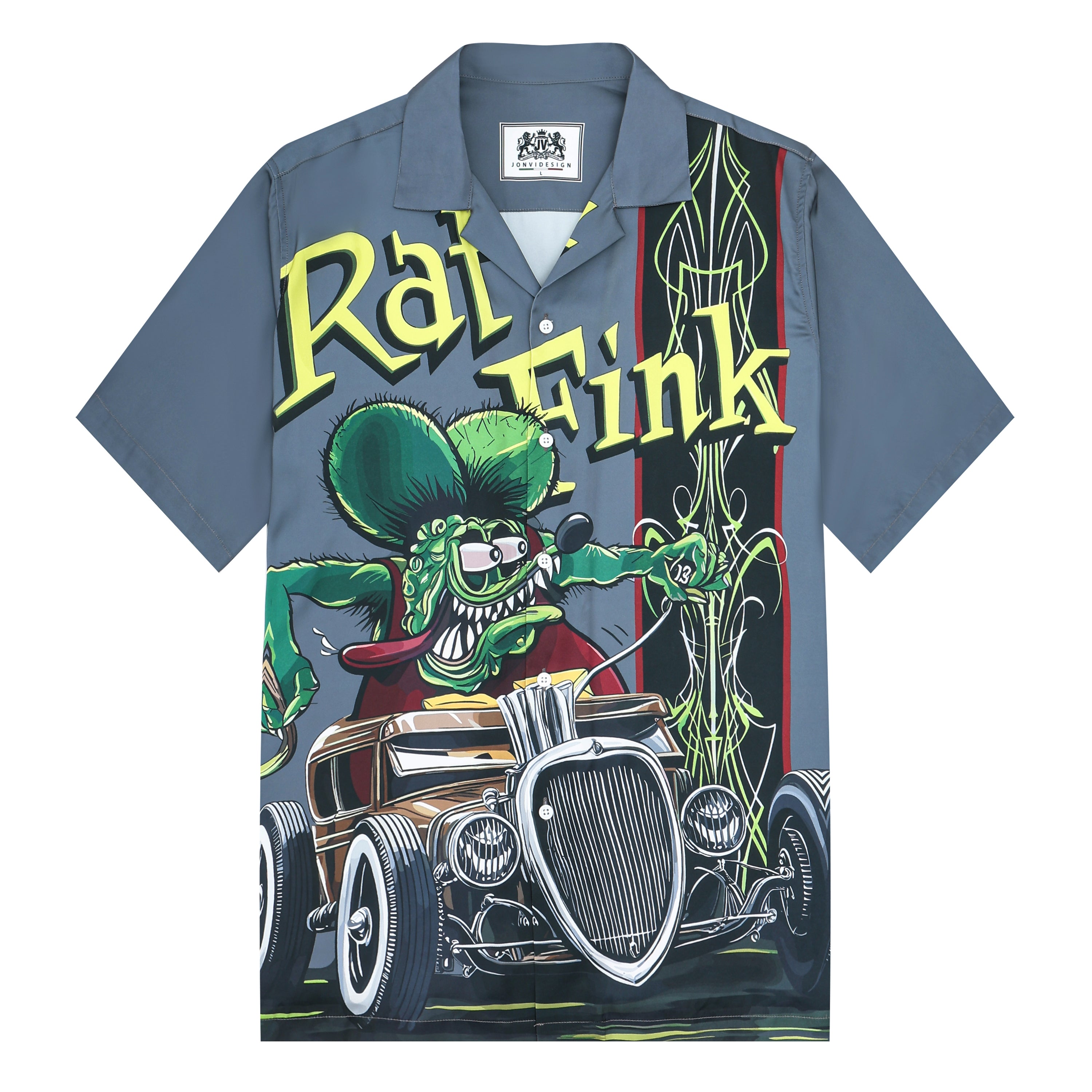 Modified Car Print Camp Collar Short Sleeve Shirt Grey