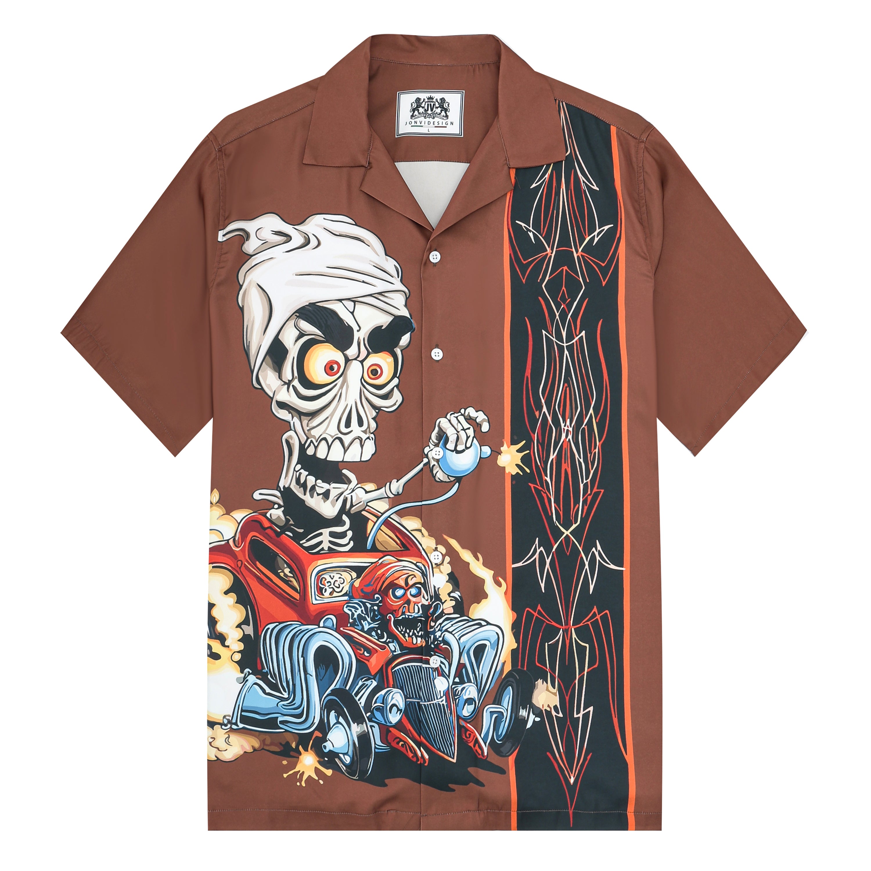 Skull Car Print Camp Collar Short Sleeve Shirt
