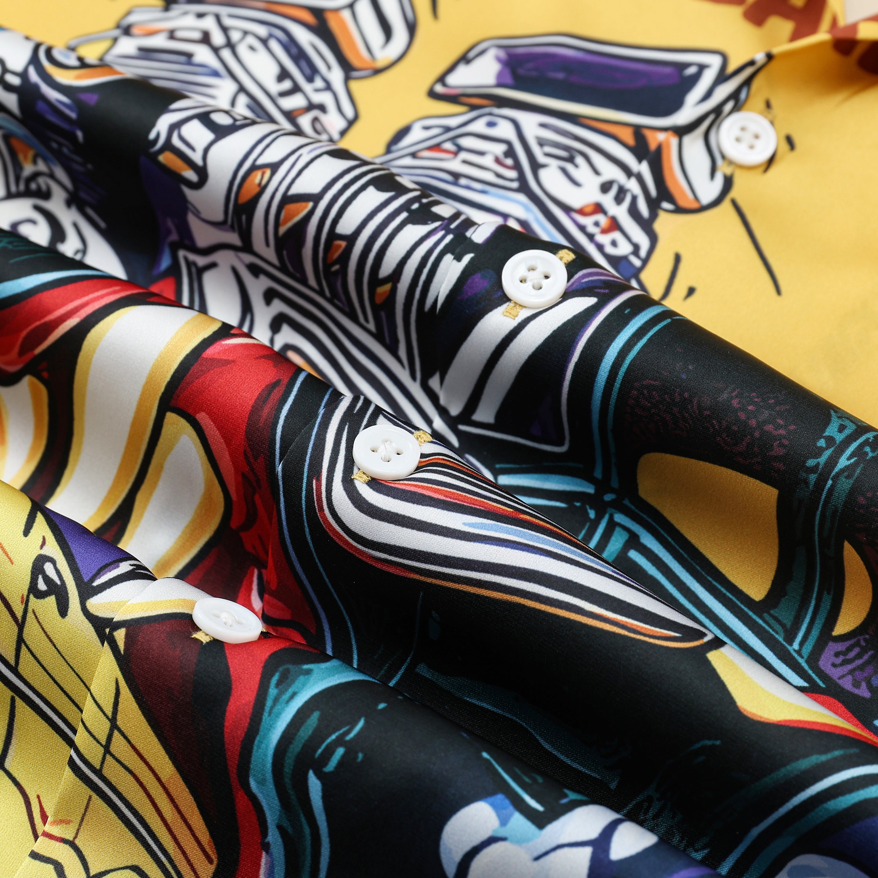 Modified Car Print Yellow Camping Collar Short-Sleeved Shirt