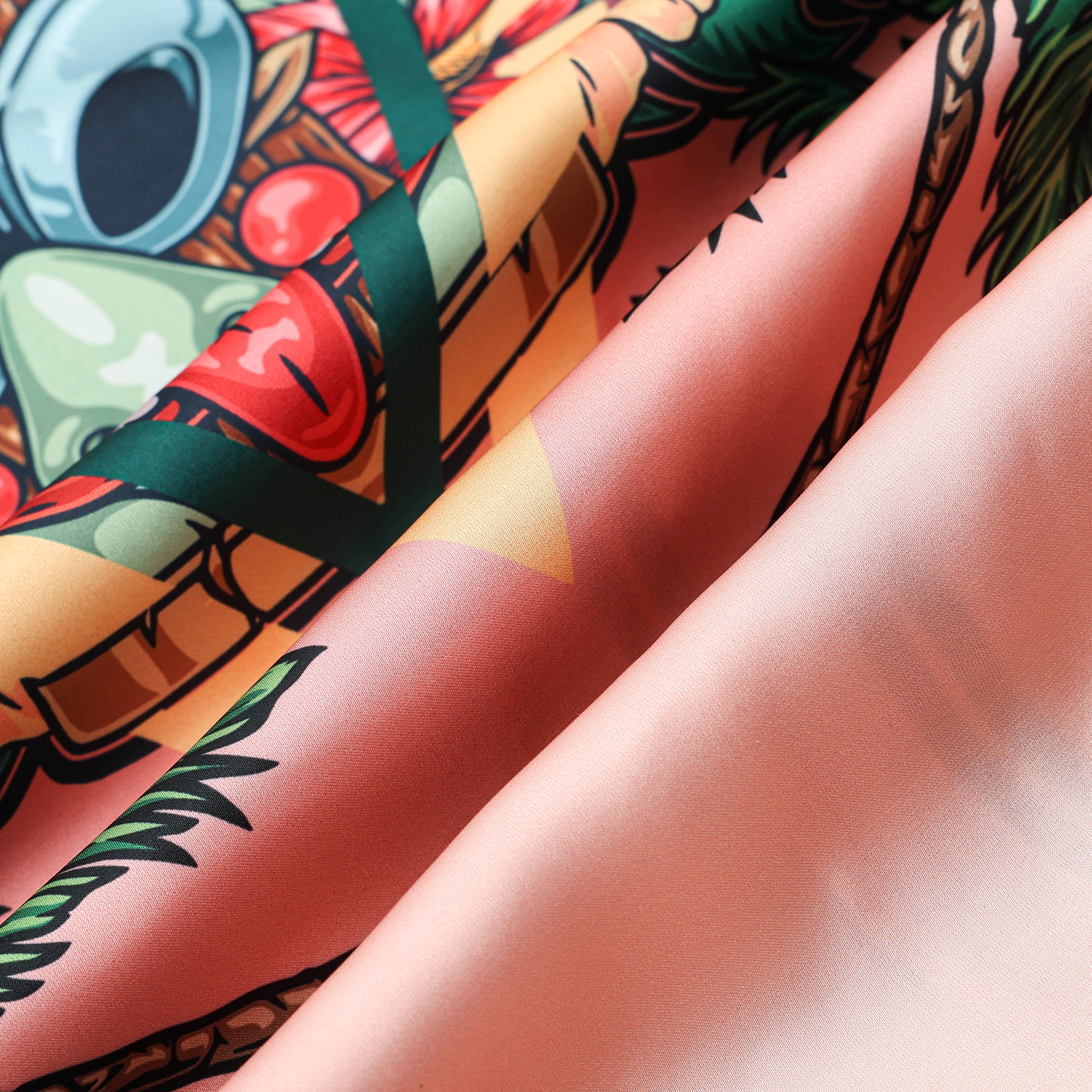 Palm Tree Tiki Themed Pattern Short Sleeve Camp Collar Shirt