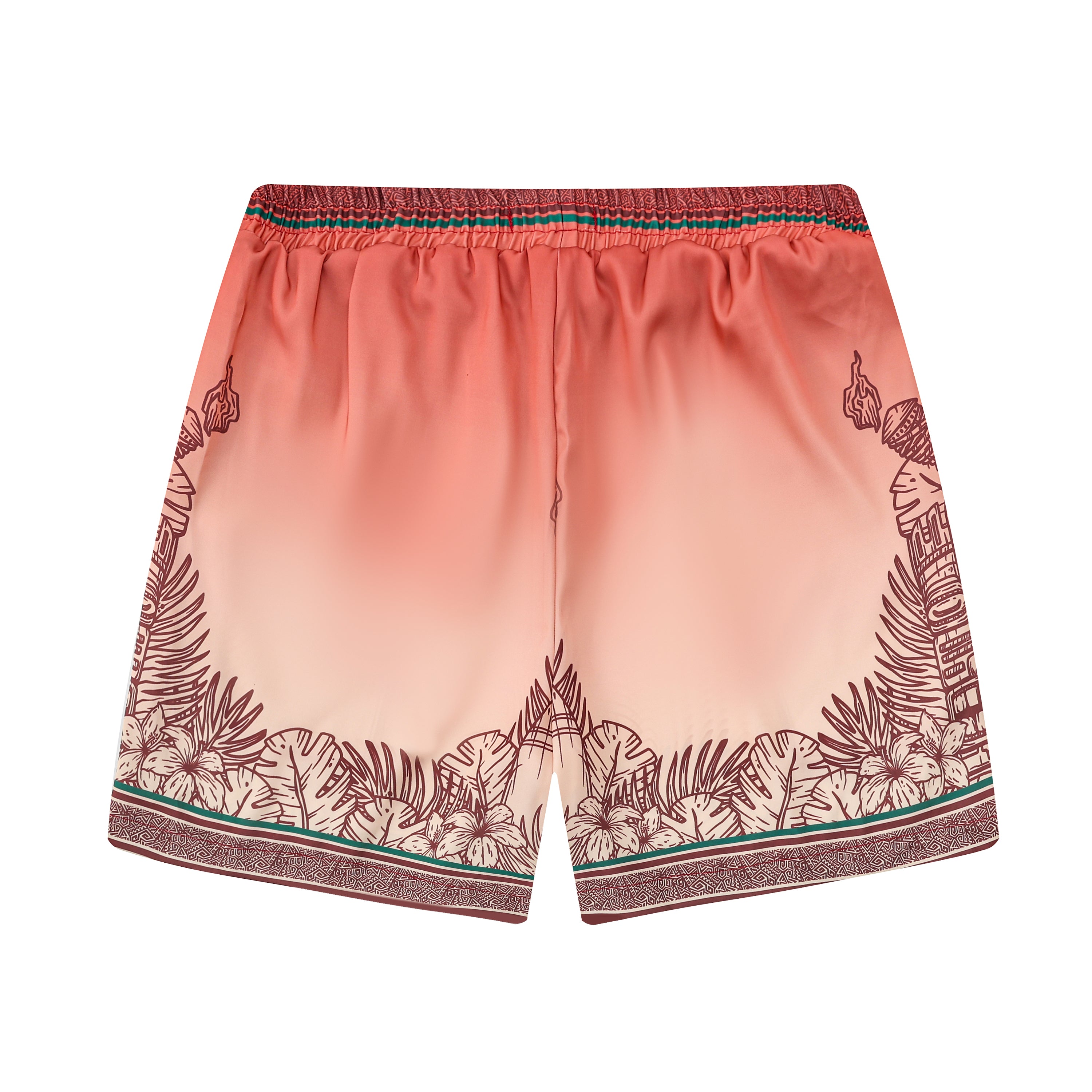 Palm Tree Tiki Themed Pattern Silk Fiber Waistband Shorts