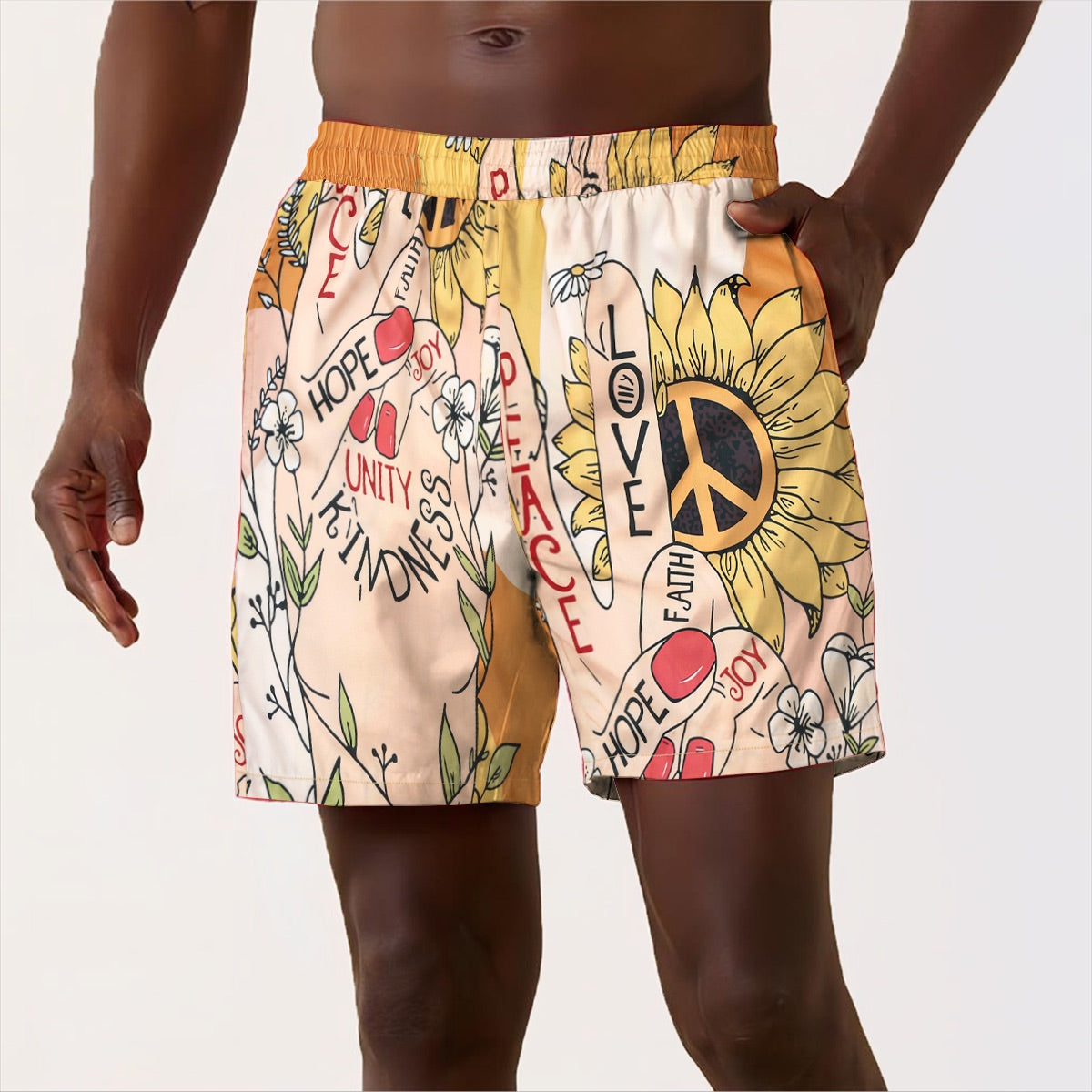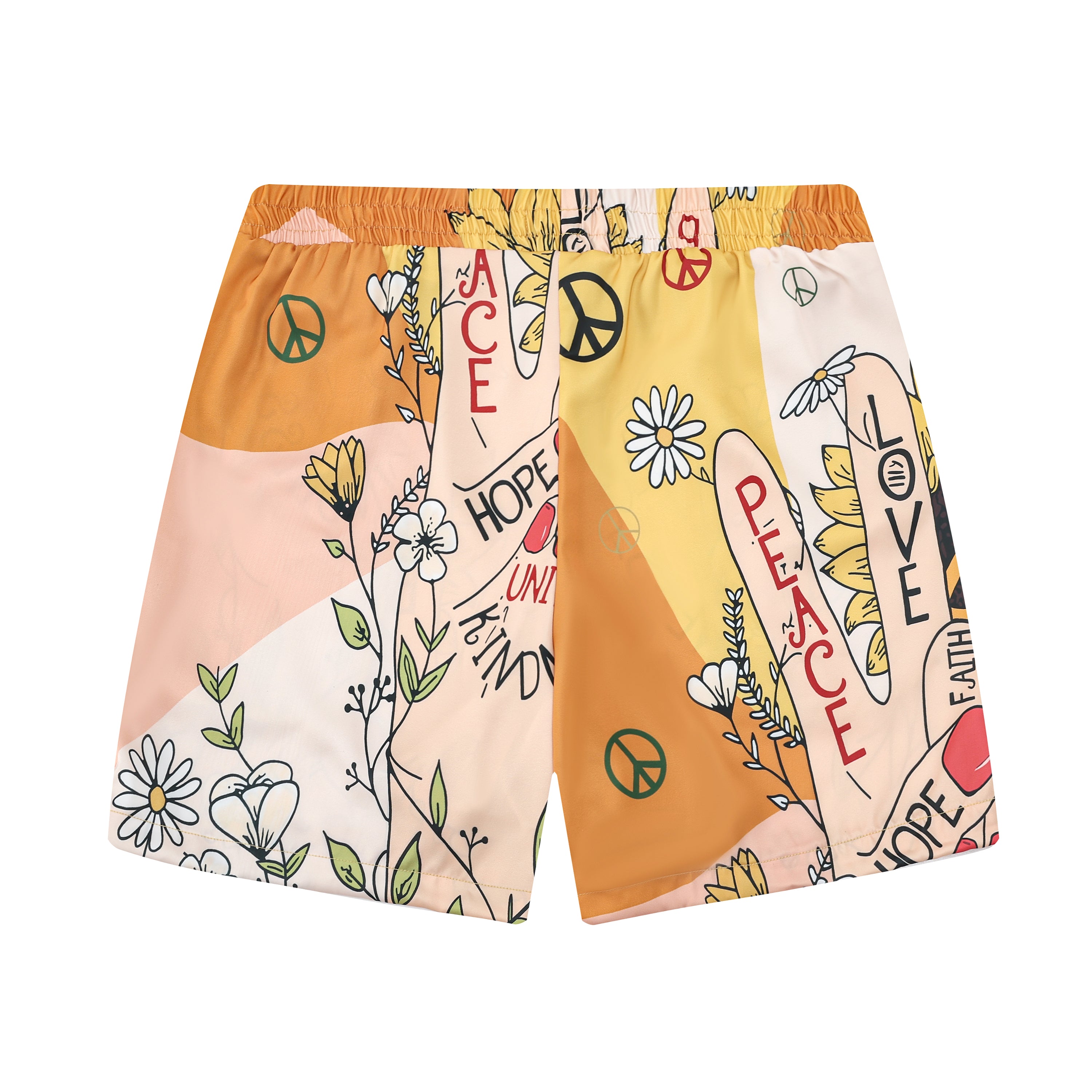 Peace and Love Sunflower Pattern Silk Fiber Waistband Shorts