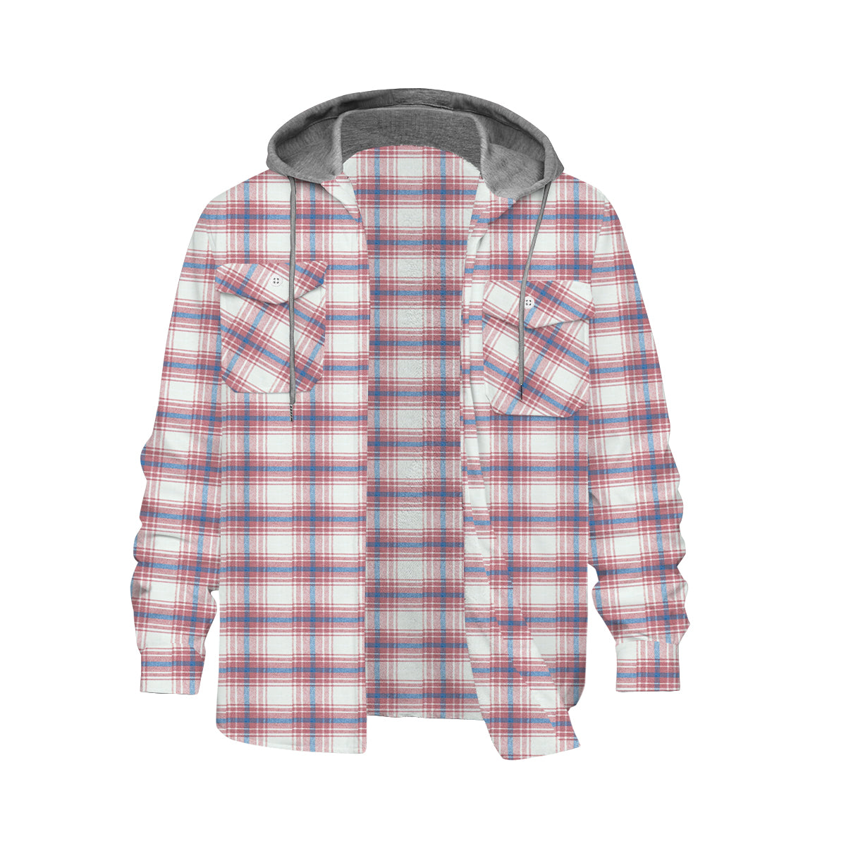 Pink Plaid Long Sleeve Hooded Shirt