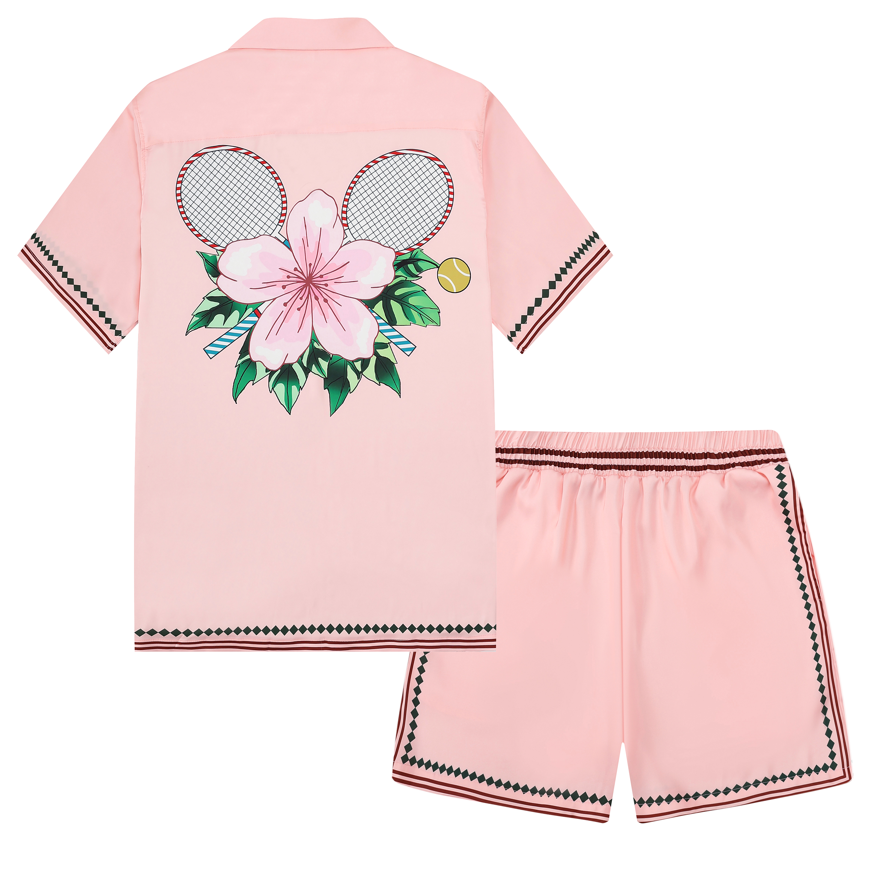 Pink Stripe Elastic Waistband Tennis Shorts for Men