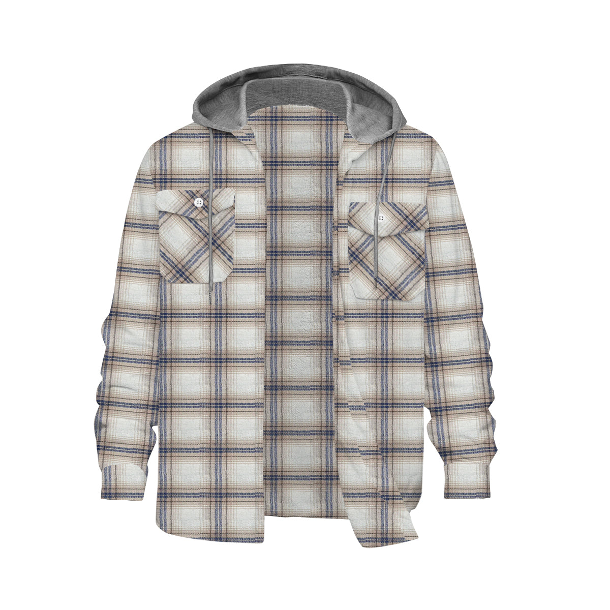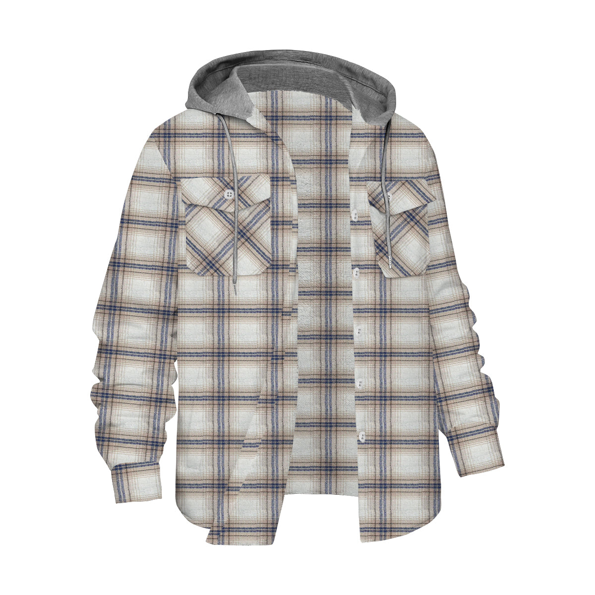 Plaid Long Sleeve Hooded Shirts For Men