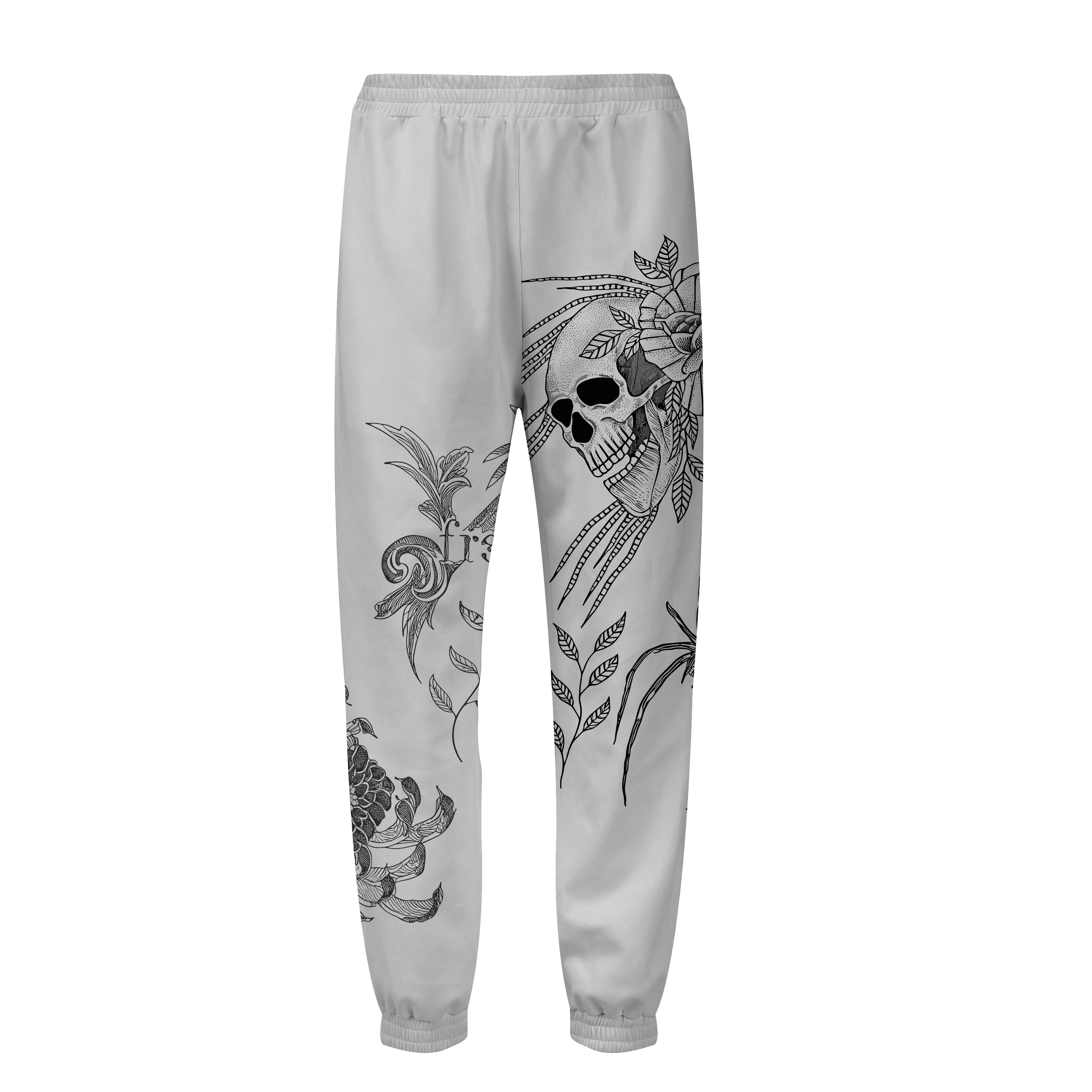 Skull Floral Print Elastic Waist Sports Sweatshirt Pants