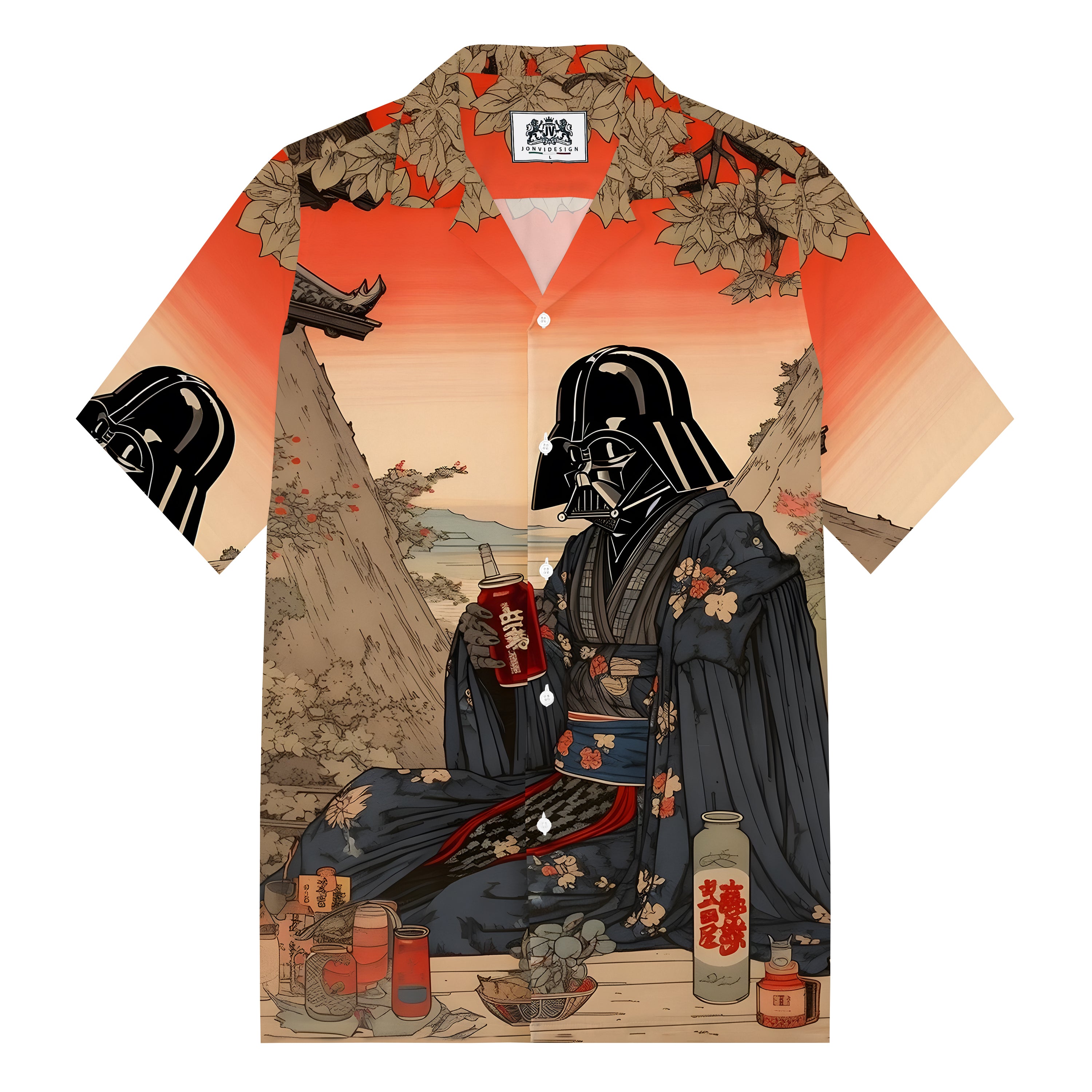 Star Wars Drinks Party Print Camp Collar Short Sleeve Shirt