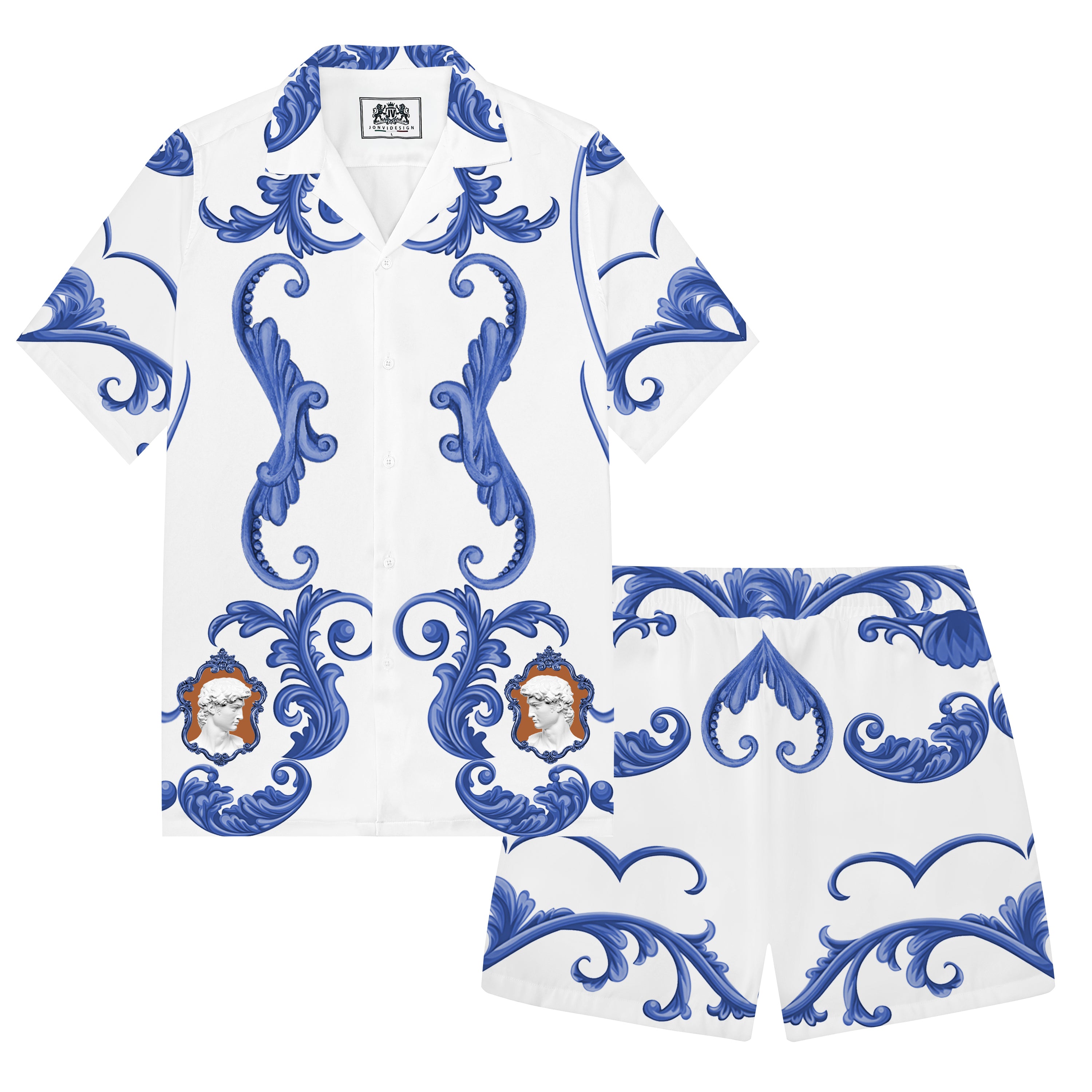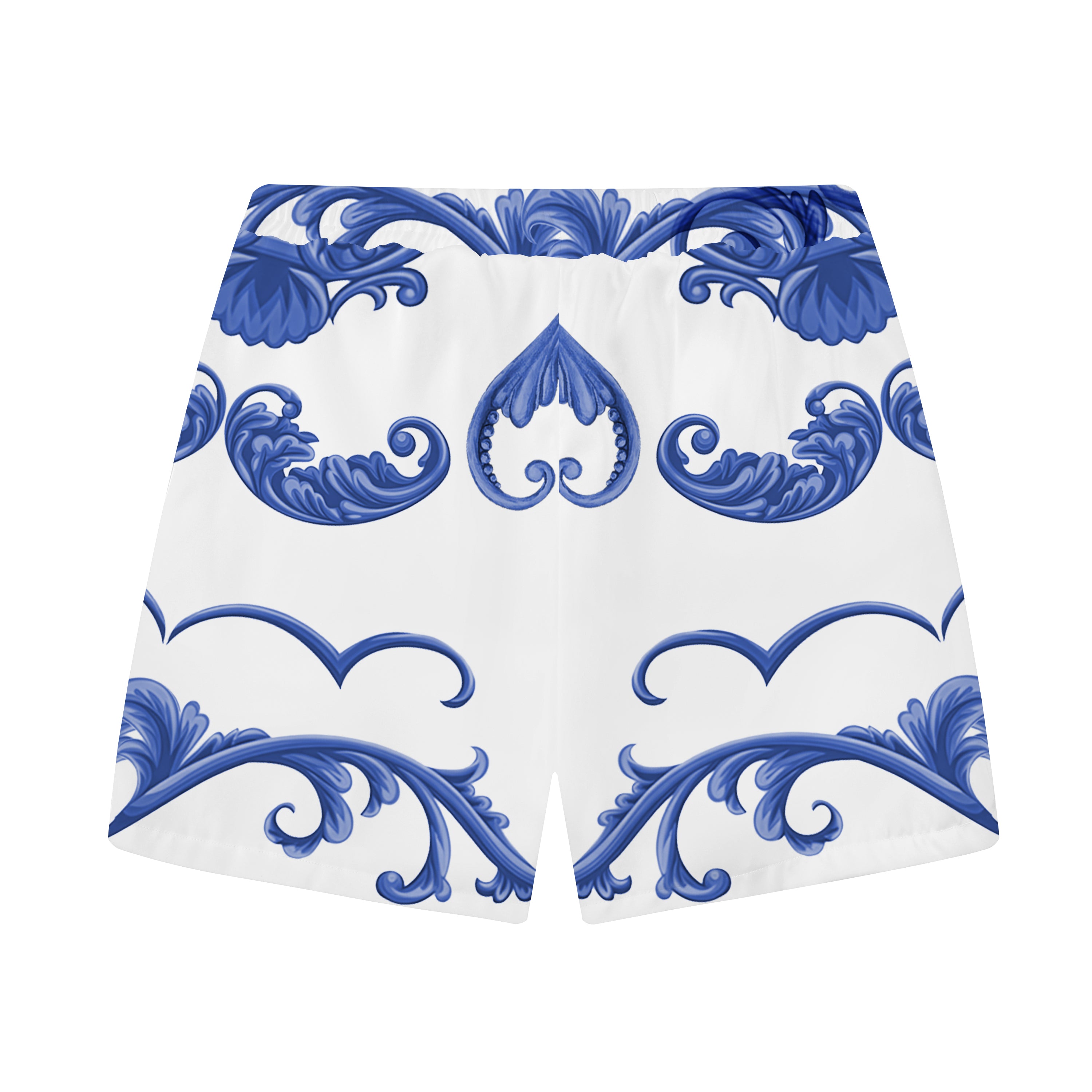 Statue Of David Baroque Floral Pattern Elastic Waistband Casual Shorts
