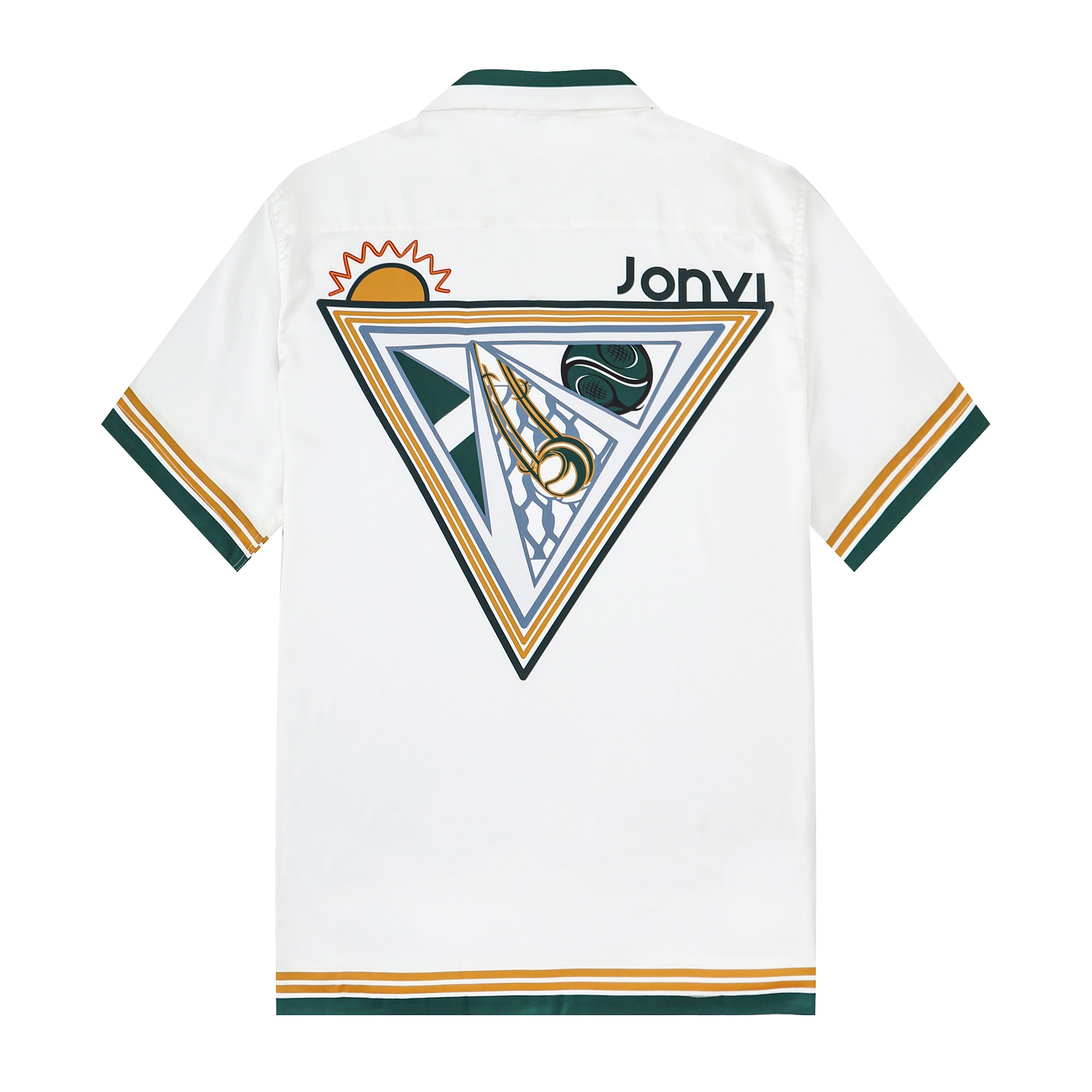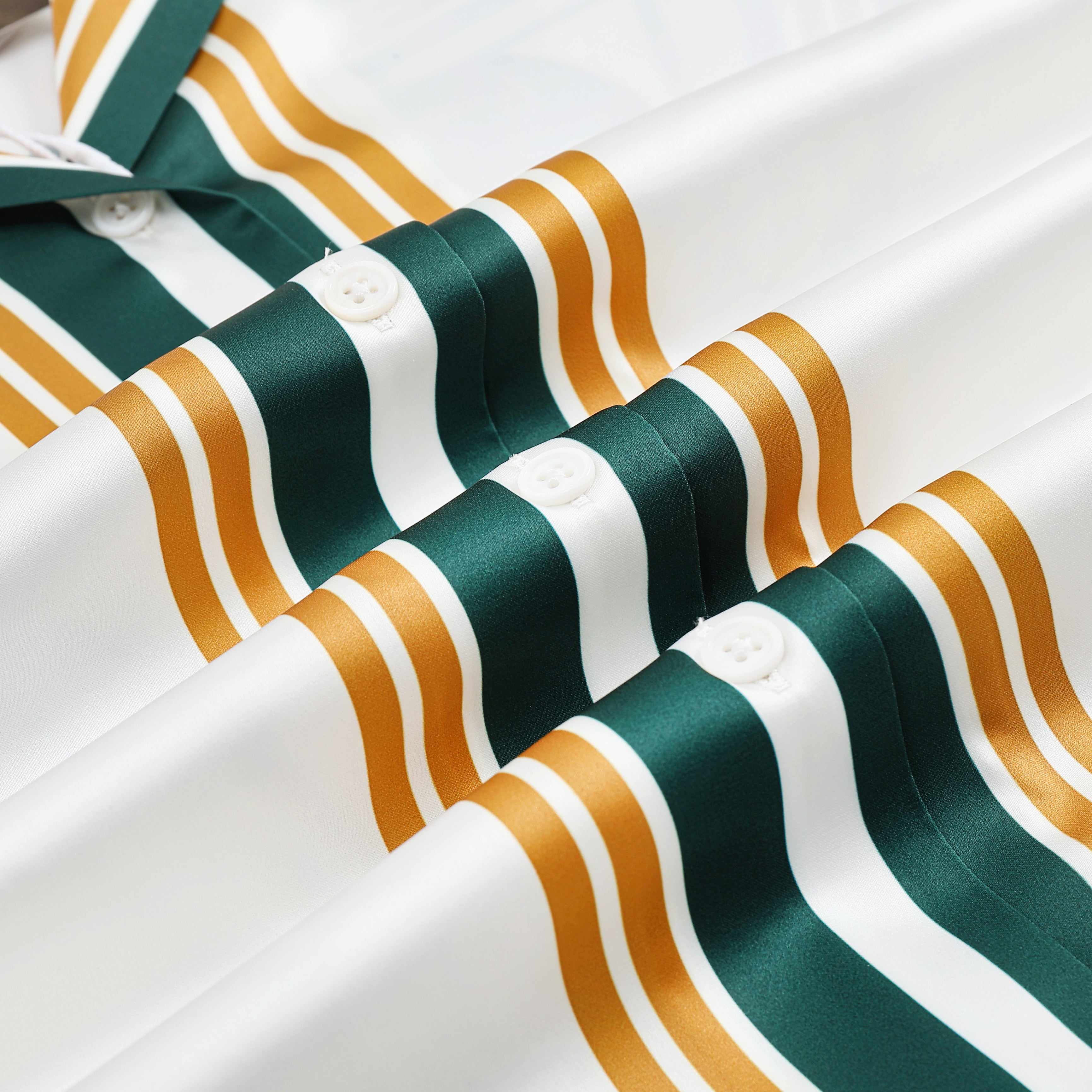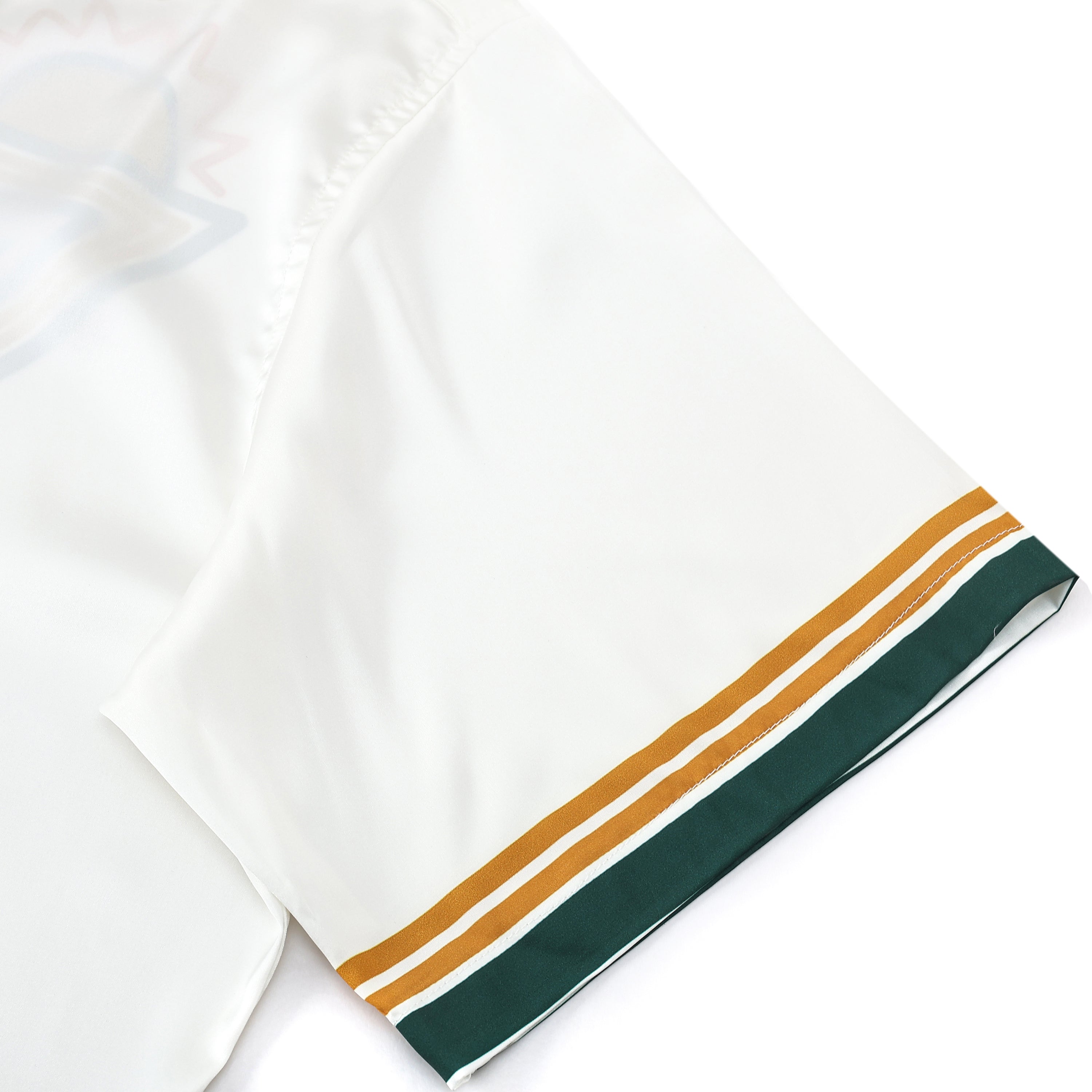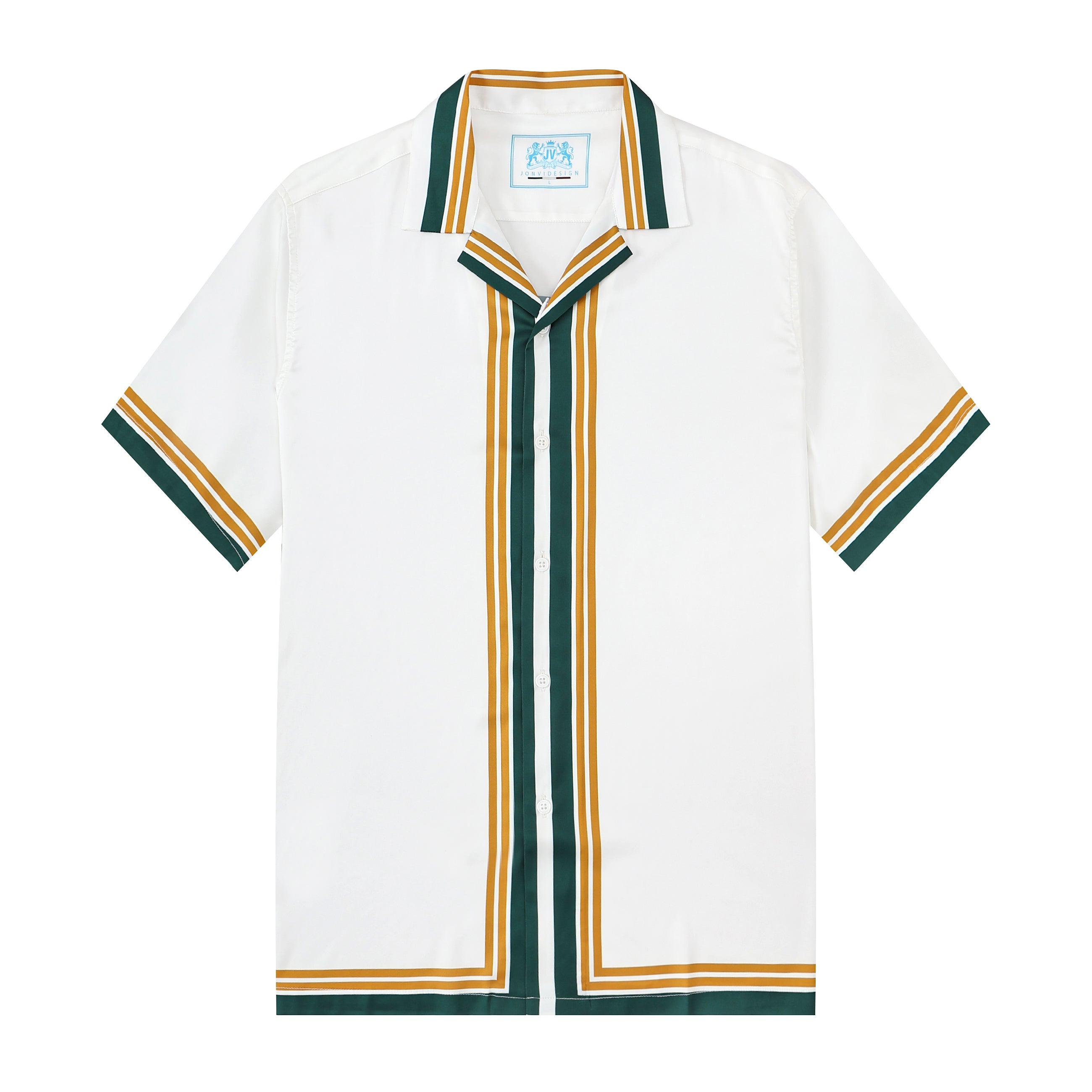 Stripe Pattern Tennis Court Print Short Sleeve Camp Collar Shirt