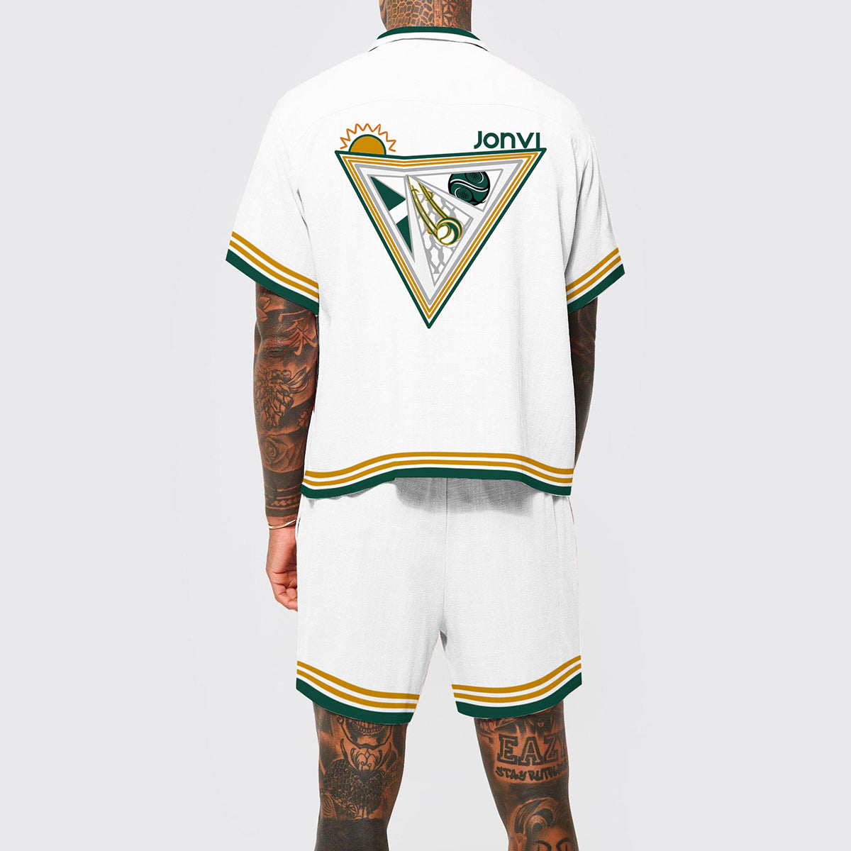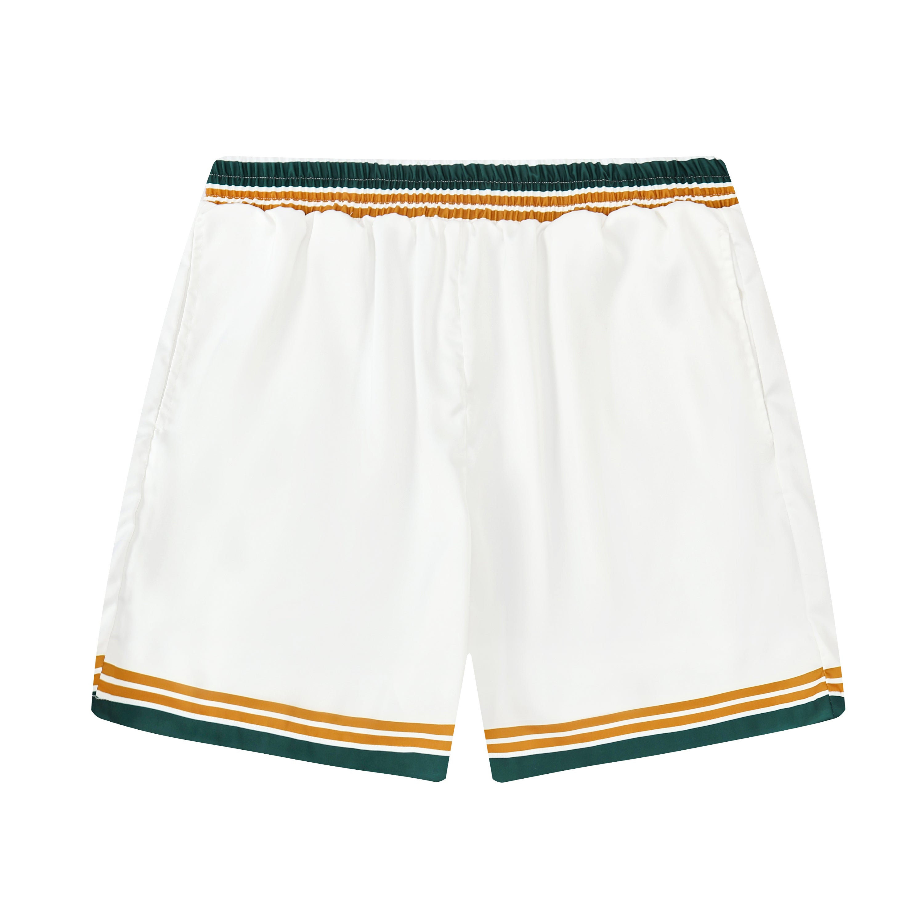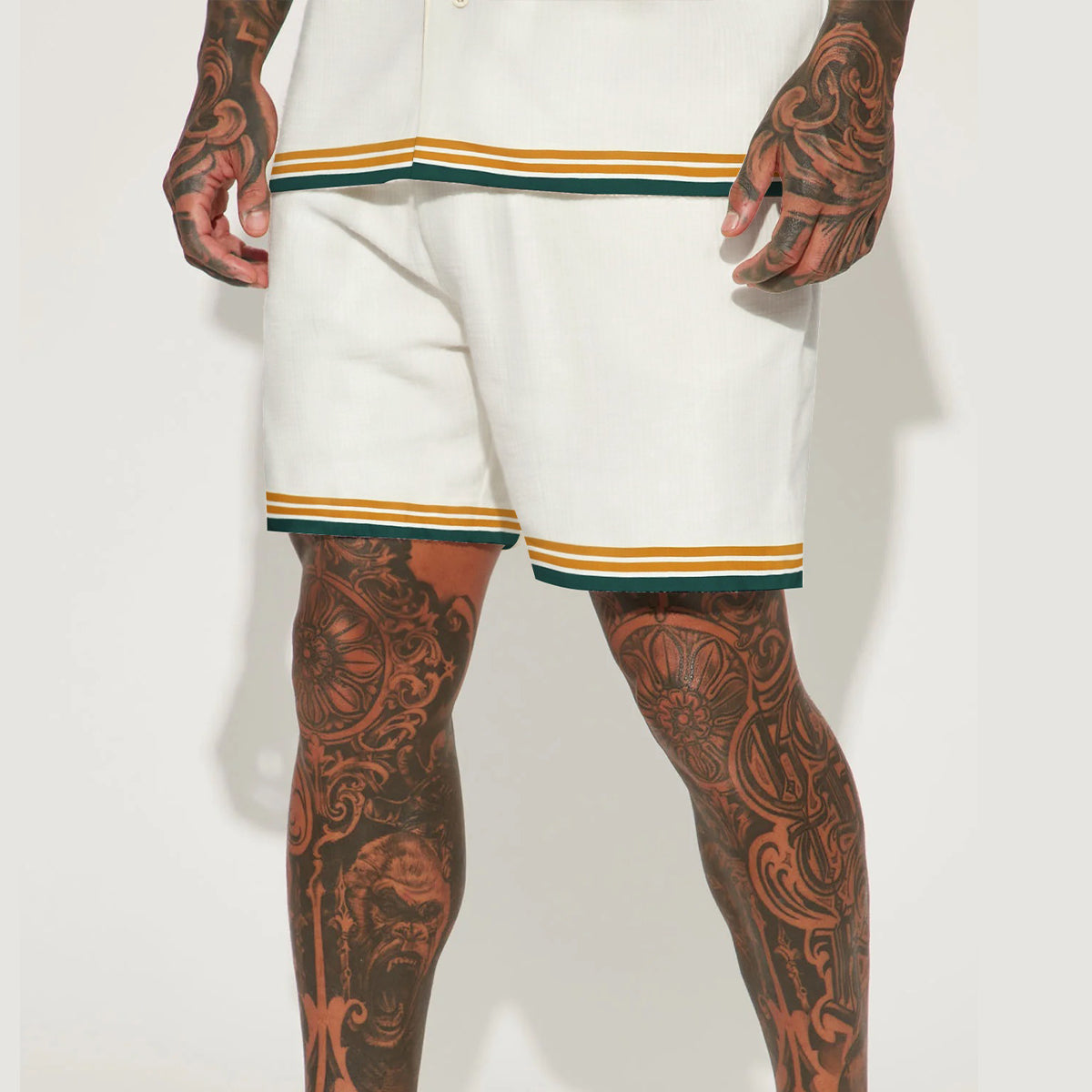 Stripe Pattern Tennis Court Print Waistband Shorts