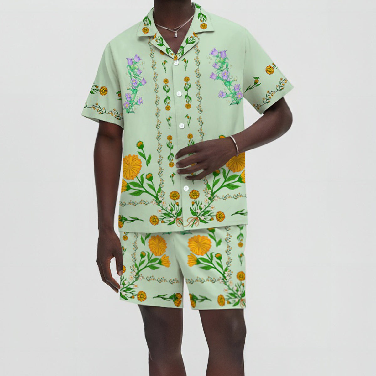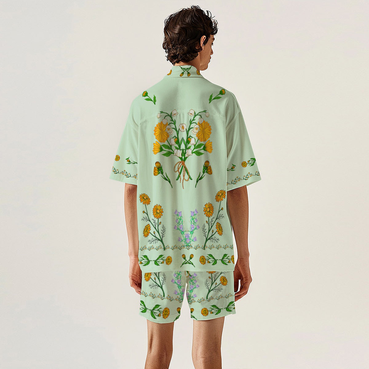 Summer Daisy Floral Pattern Camp Collar Casual Shirt for Men