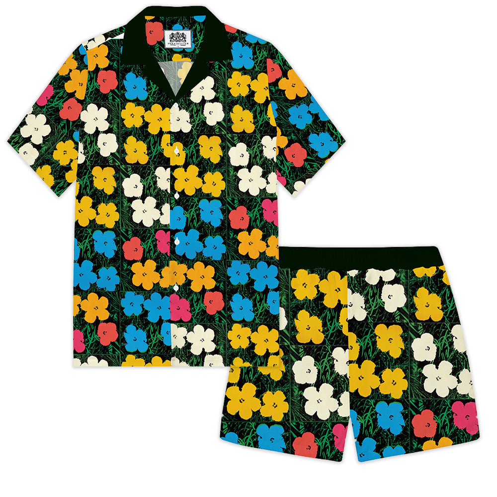 Summer Fresh Floral Pattern Camp Collar Short Sleeve Shirt