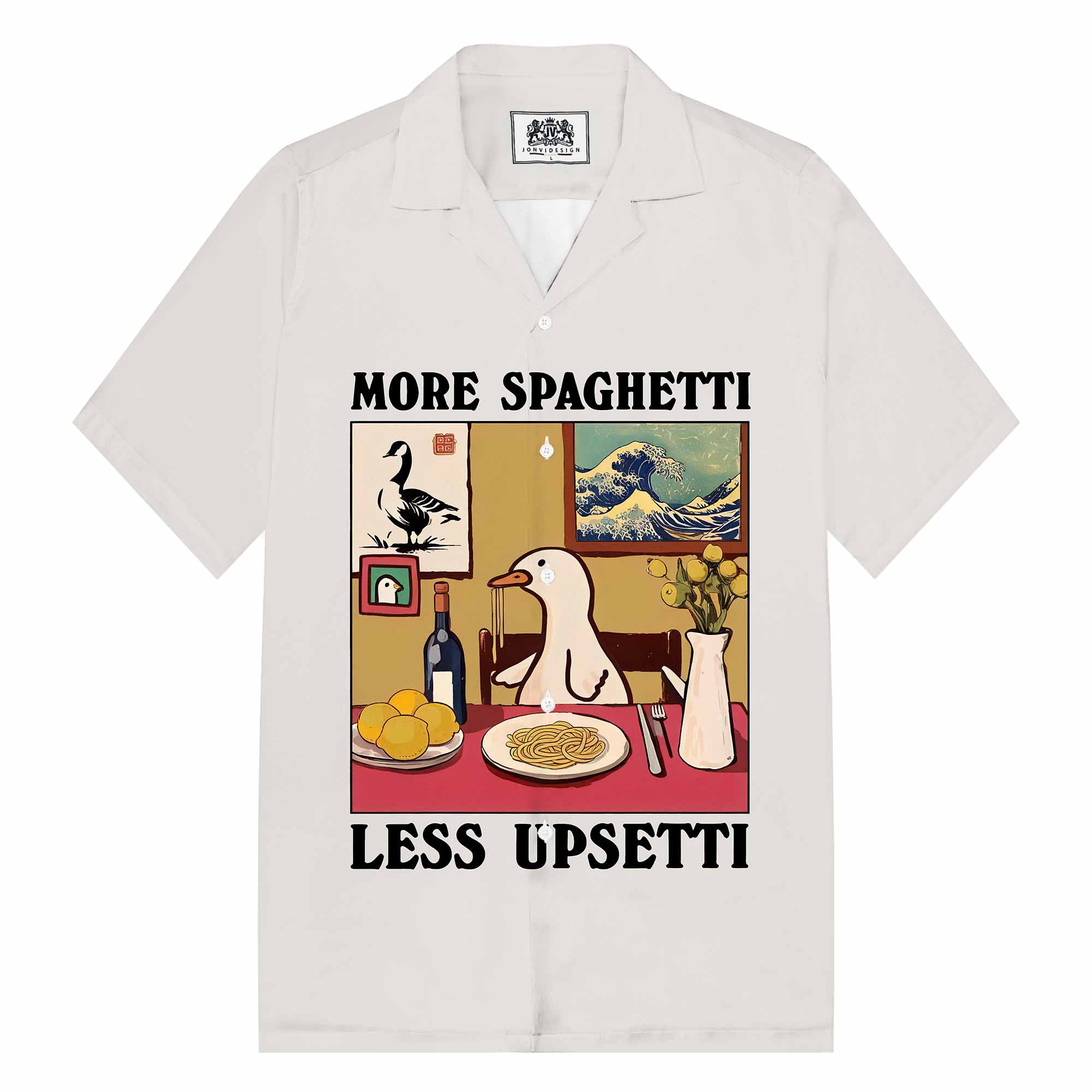 Summer More Spaghetti Less Upsetti Print Camp Collar Short-Sleeved Shirt
