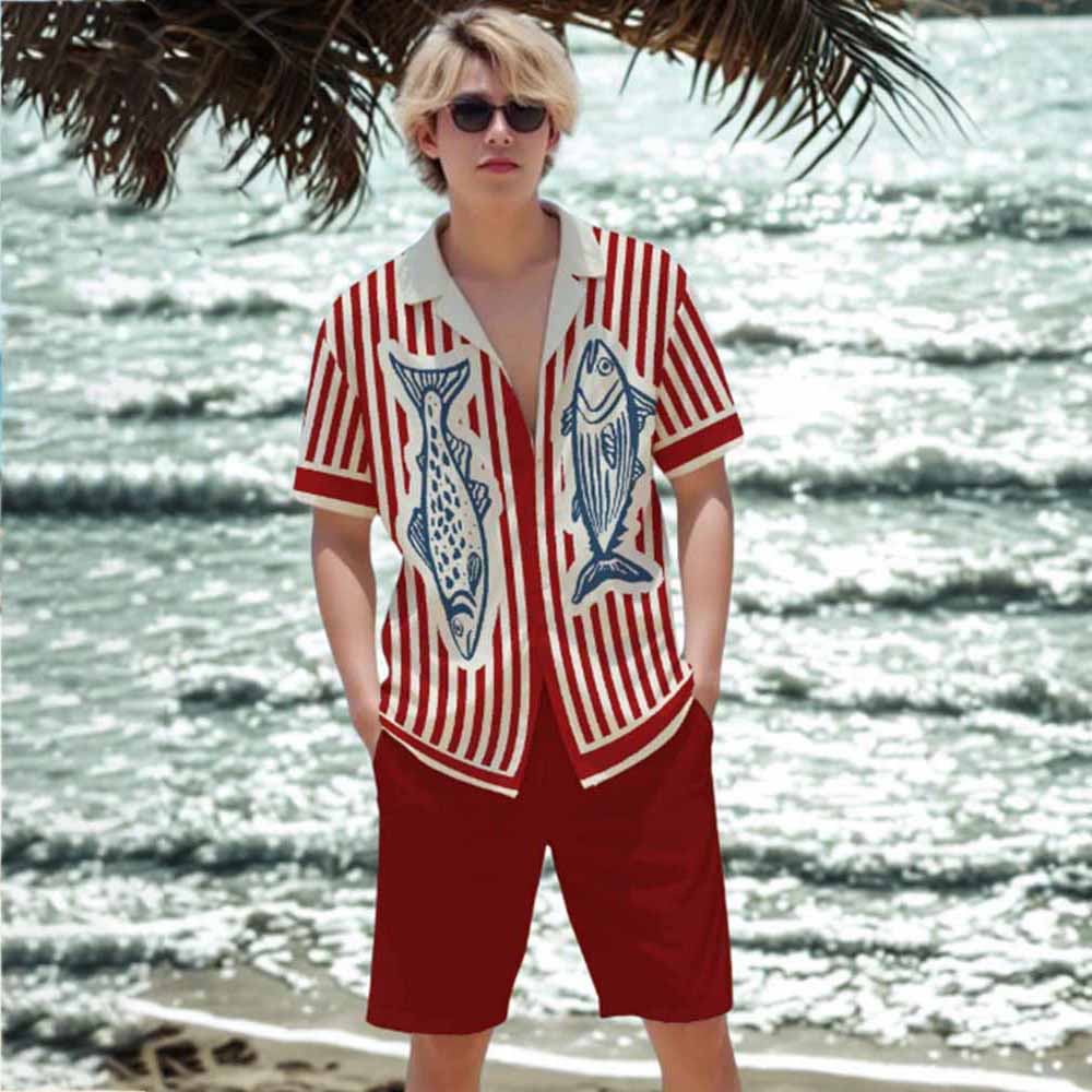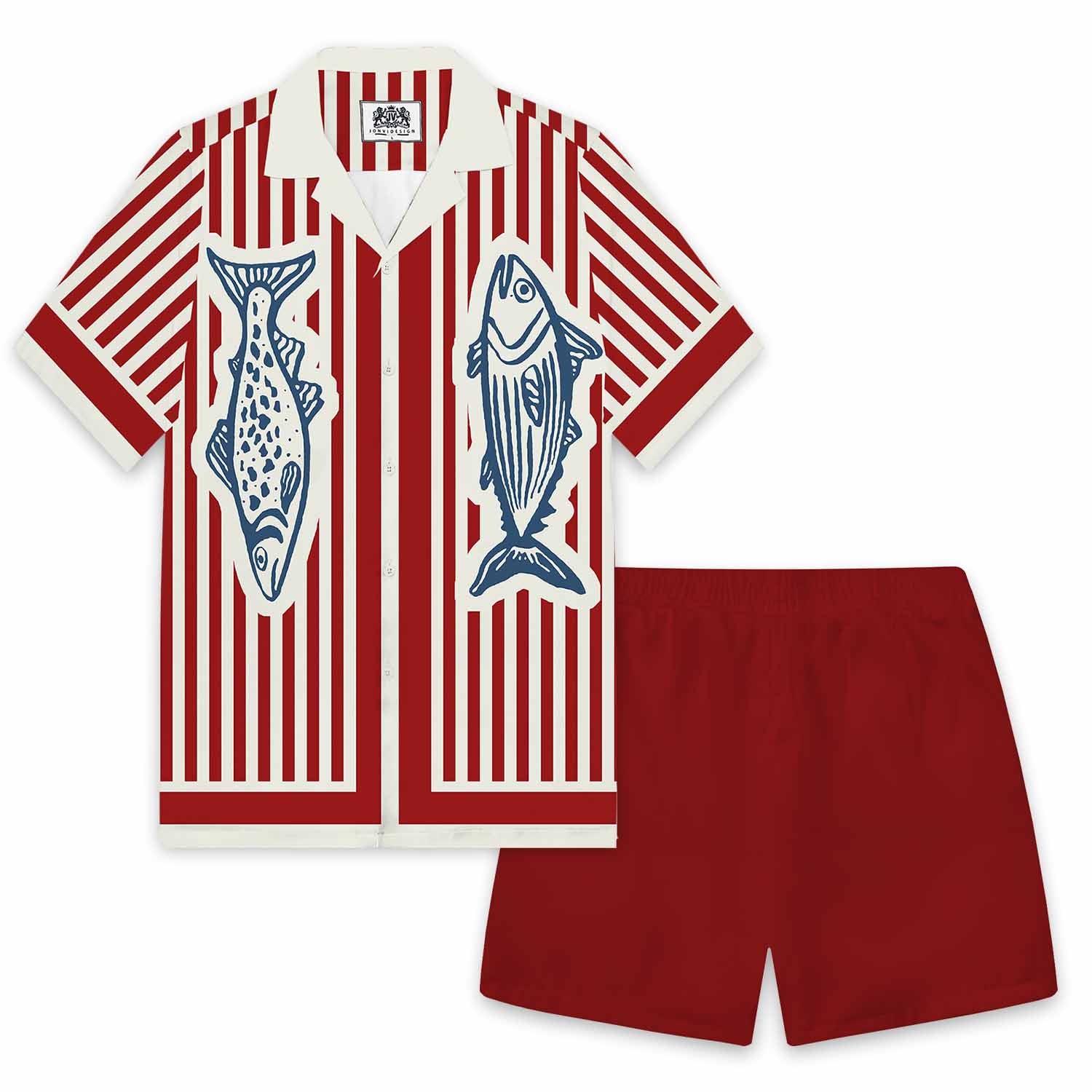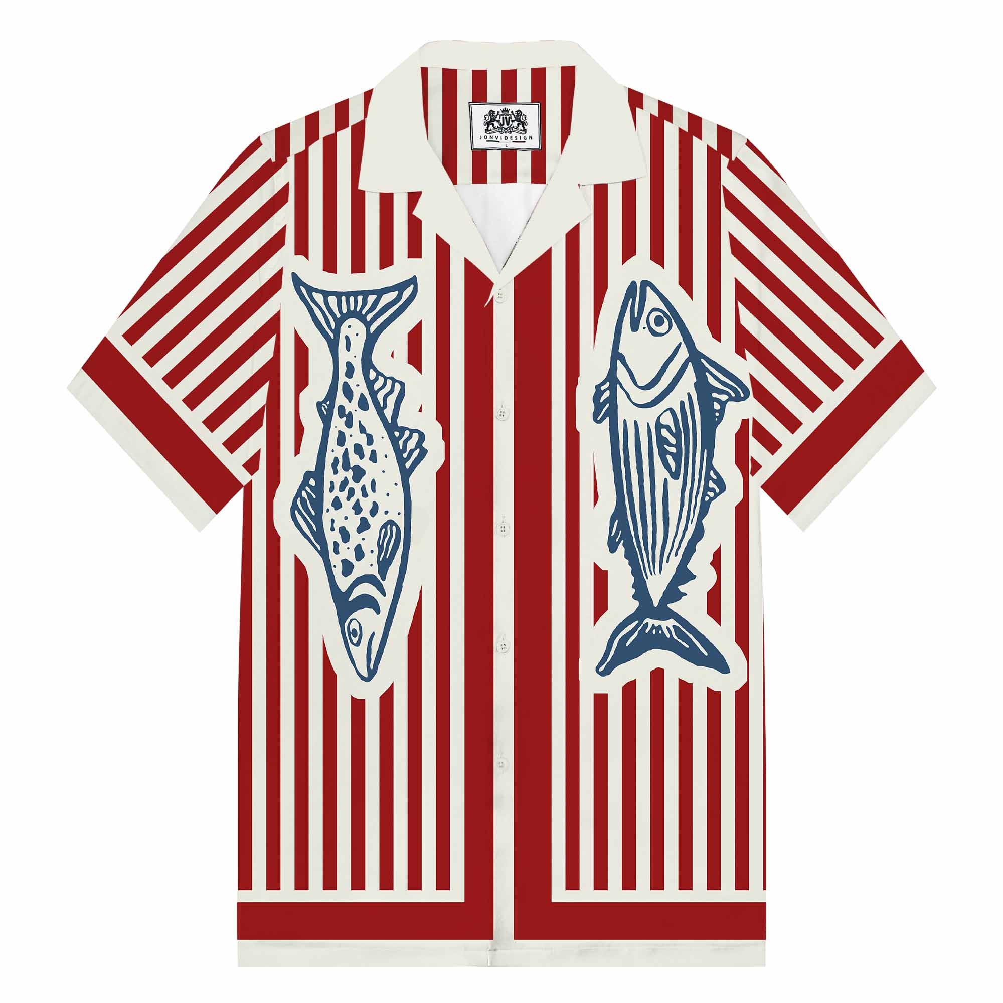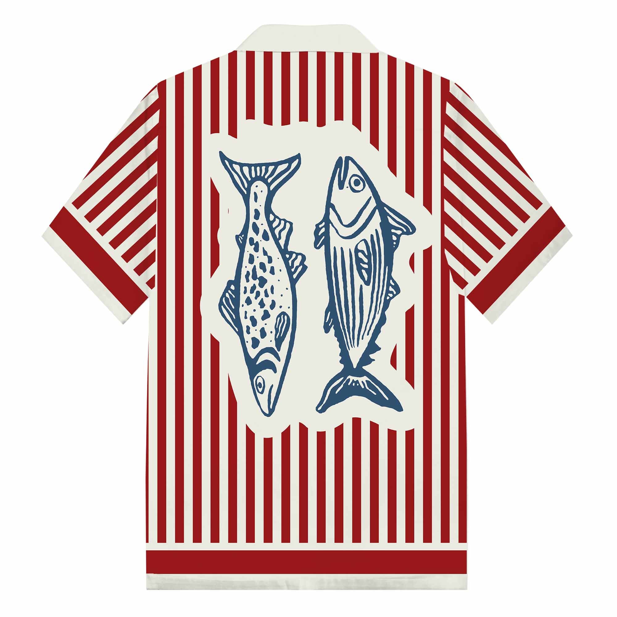 Summer Vacation Retro Fish Pattern Camp Collar Short Sleeve Shirt
