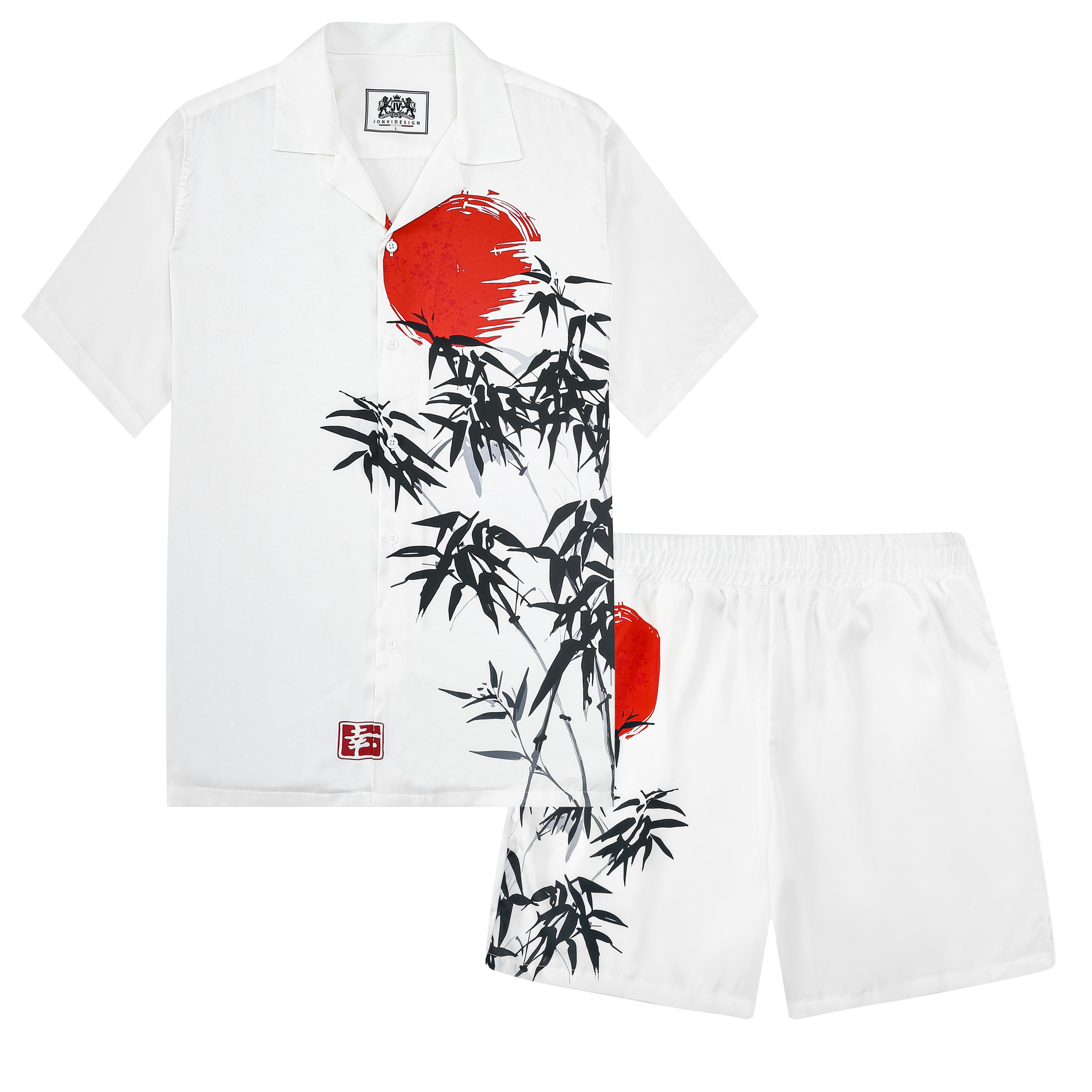 Sun Bamboo Combination Print Camp Collar Short Sleeve Shirt