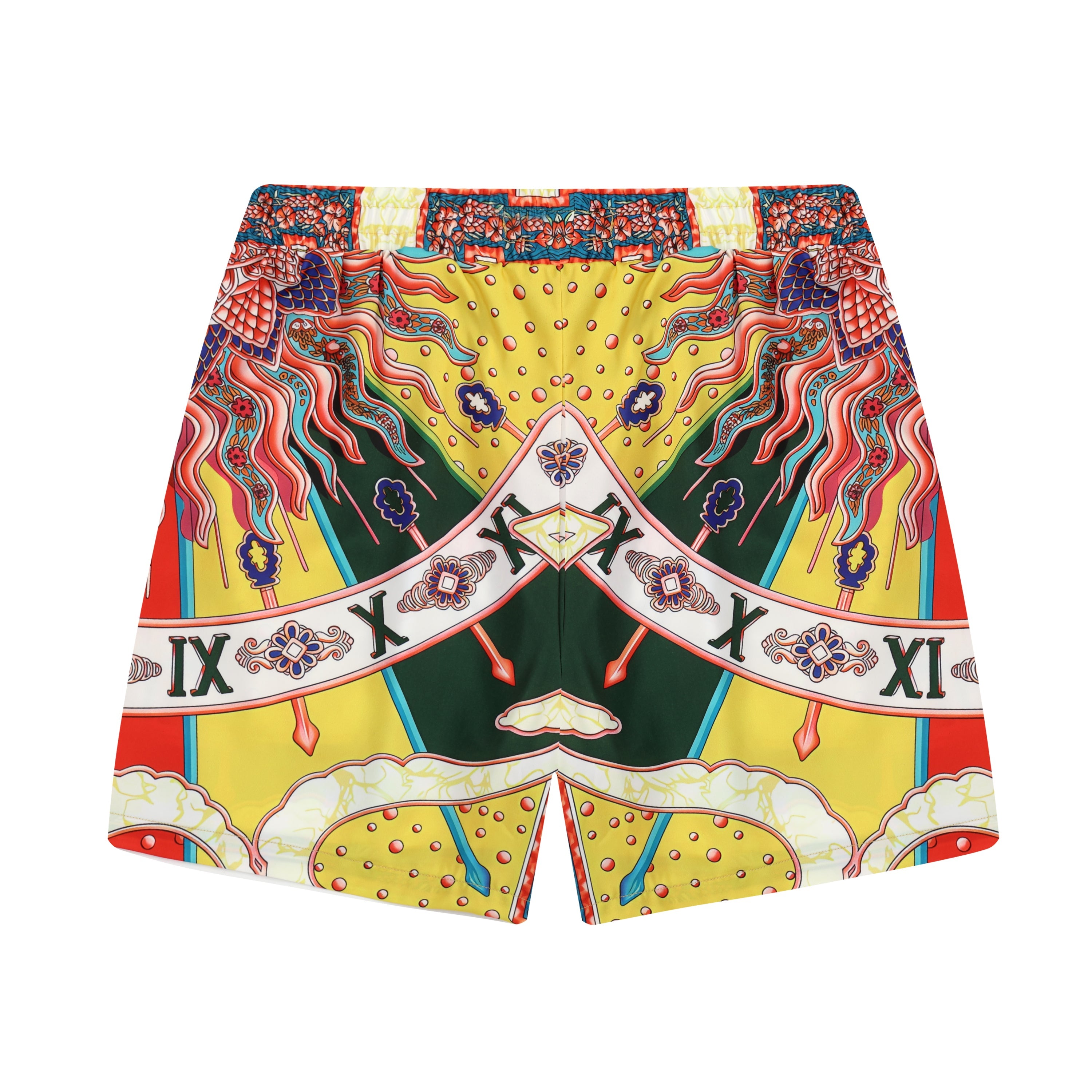 Sun Pattern Elastic Waistband Casual Shorts in Yellow