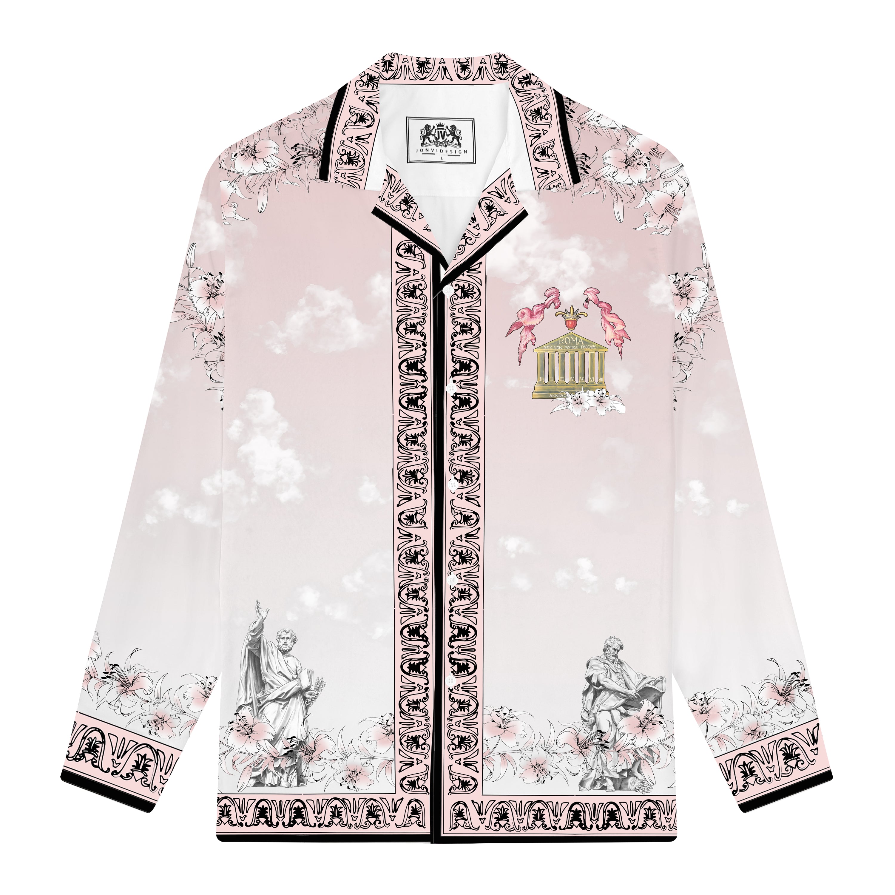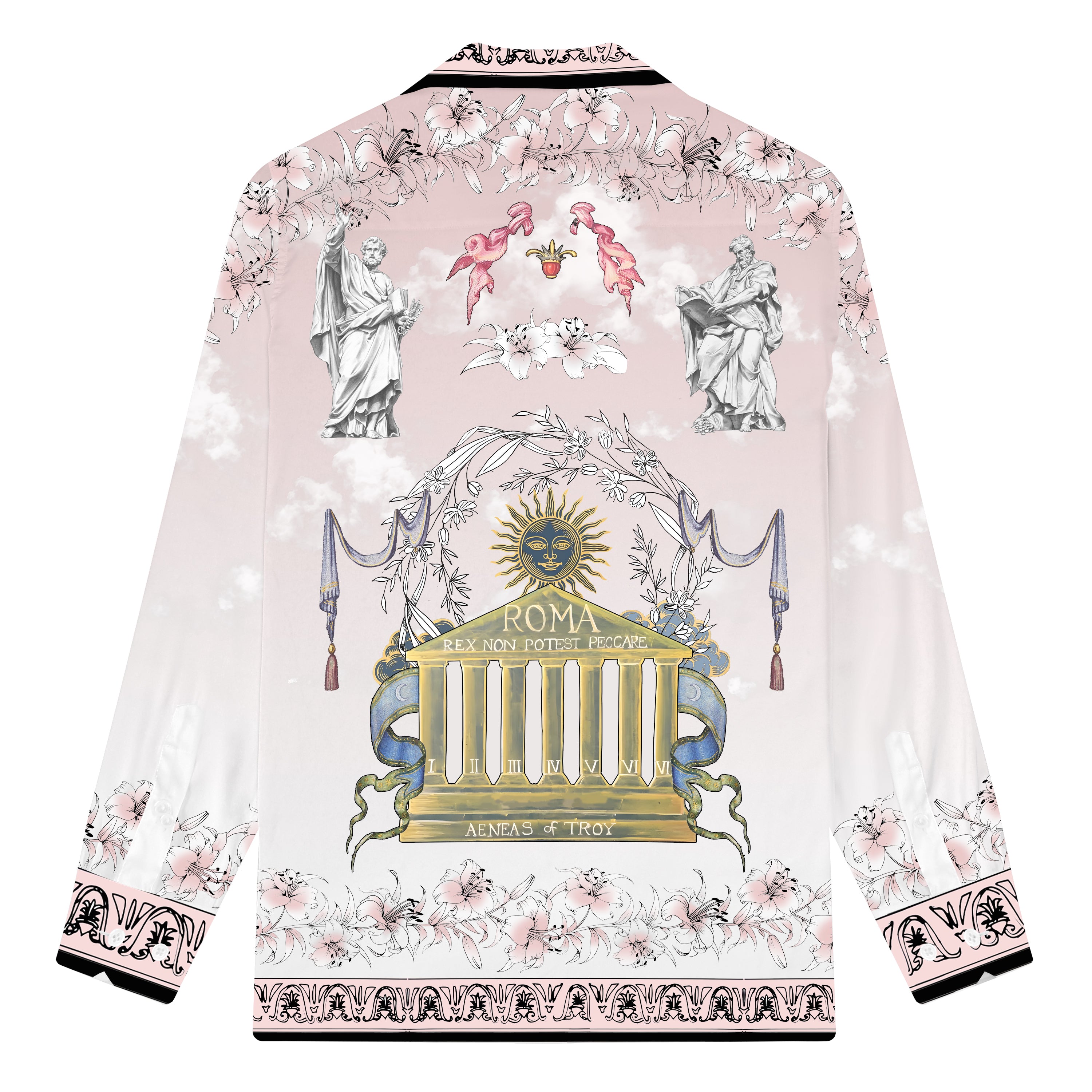 Roman Temple Print Camp Collar Long Sleeve Shirt