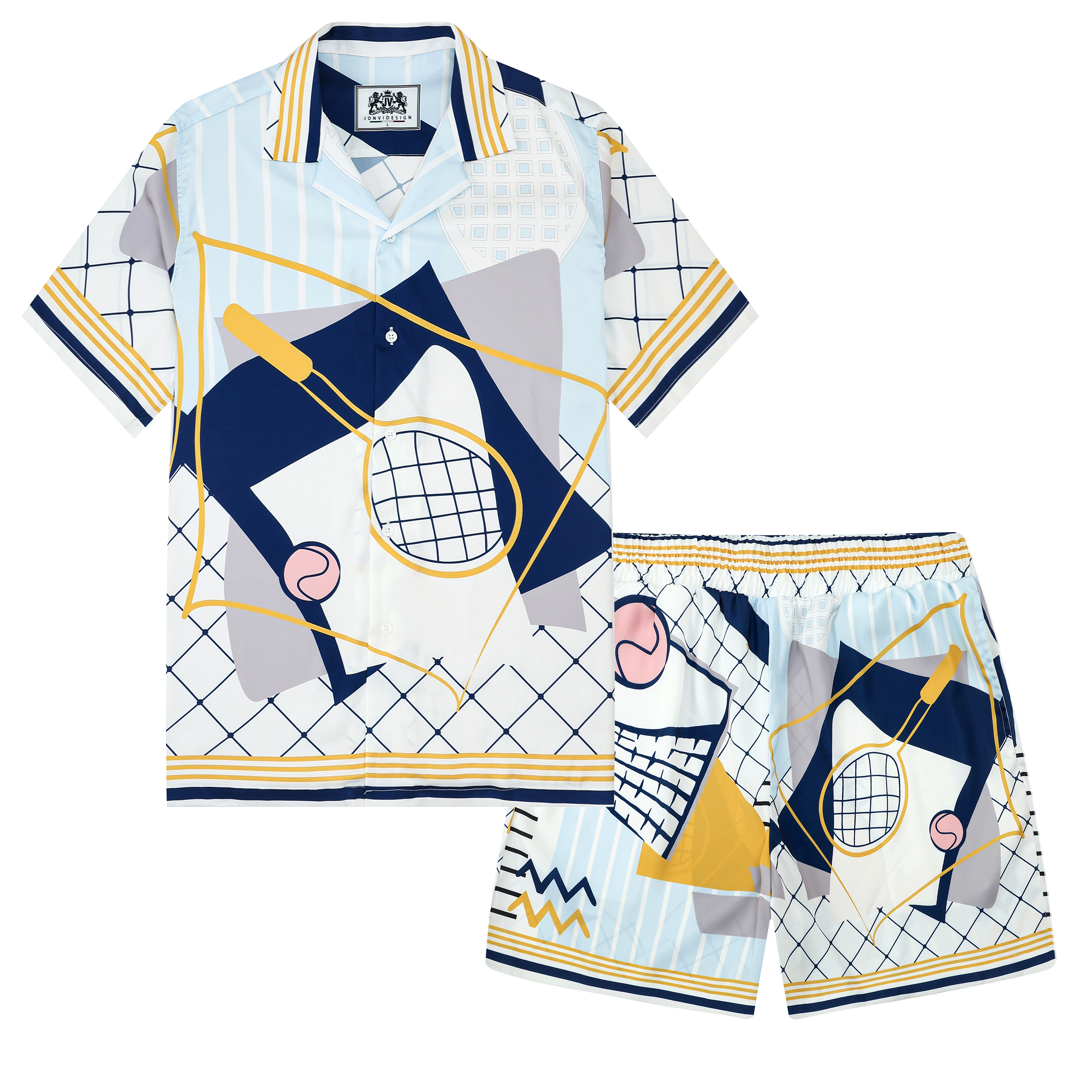 Tennis Court Pattern Silk Fiber Waistband Shorts