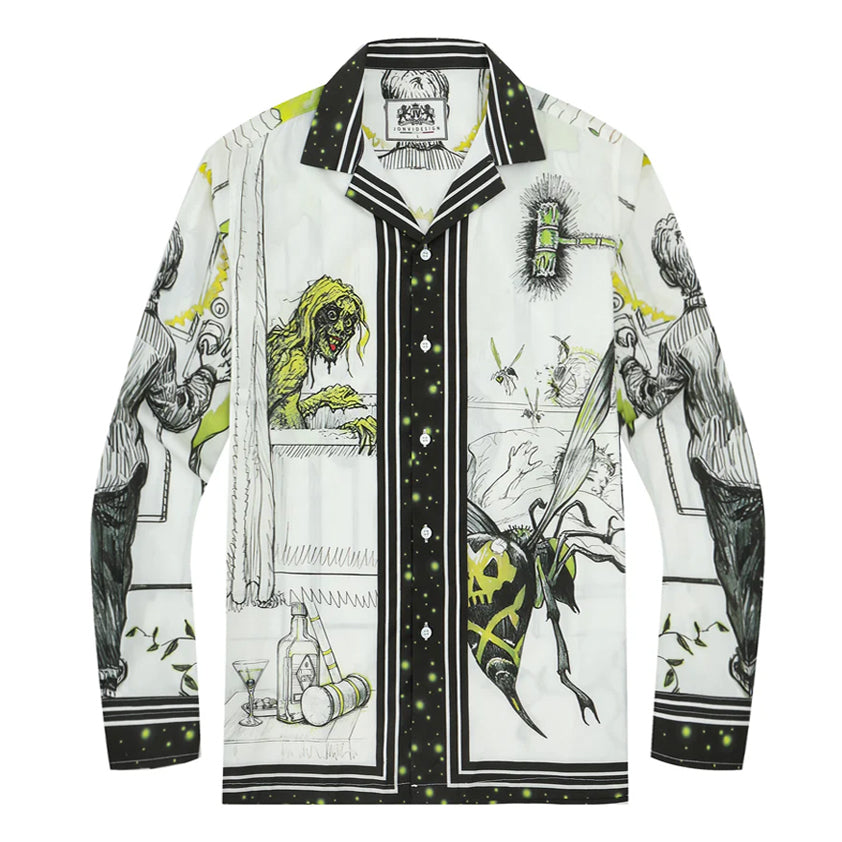 The Shining Little Boy Shady Print Halloween Long Sleeve Camp Collar Shirt