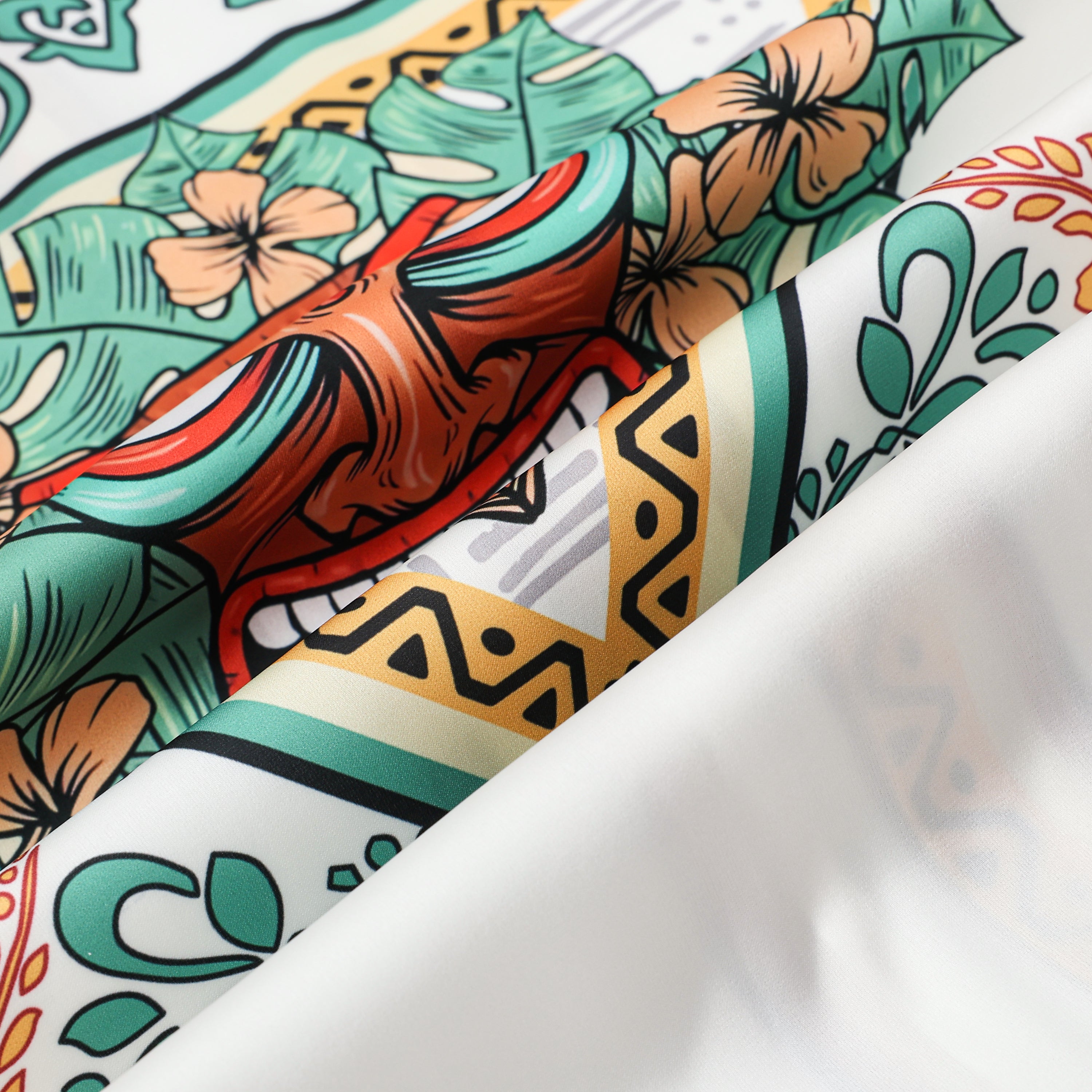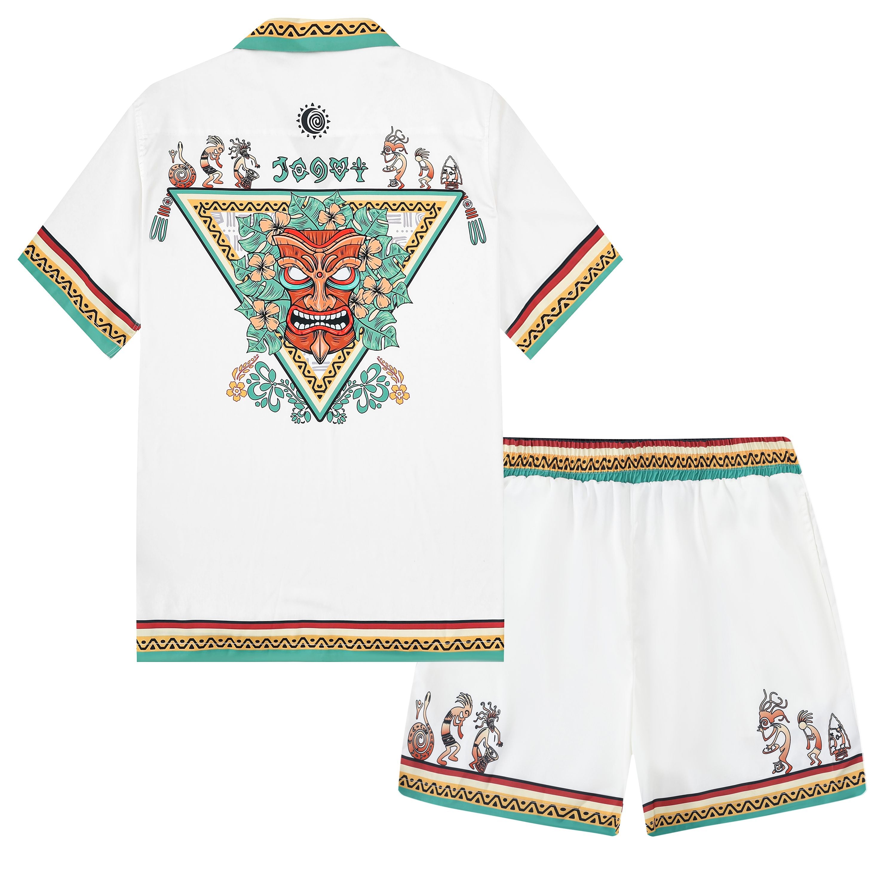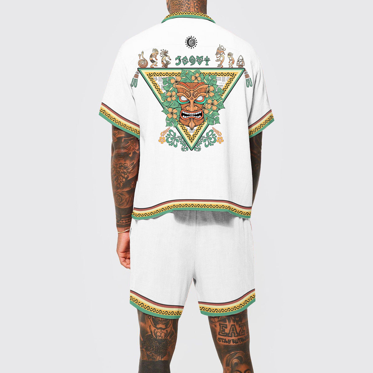 Festival Outfit Tiki Statue Pattern Short Sleeve Camp Collar Shirt