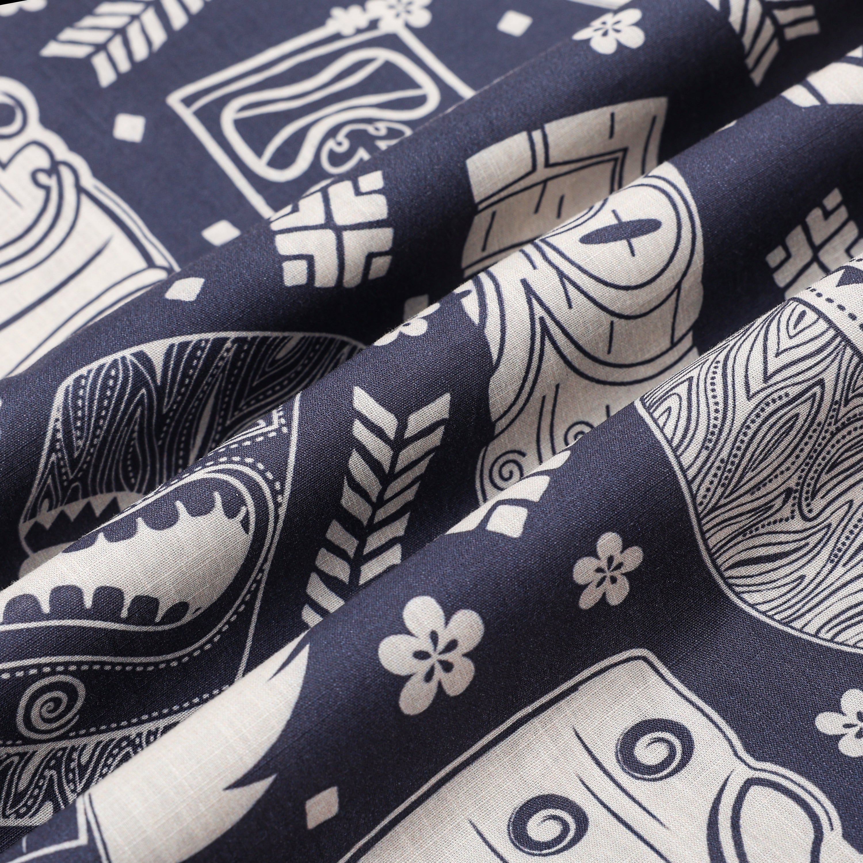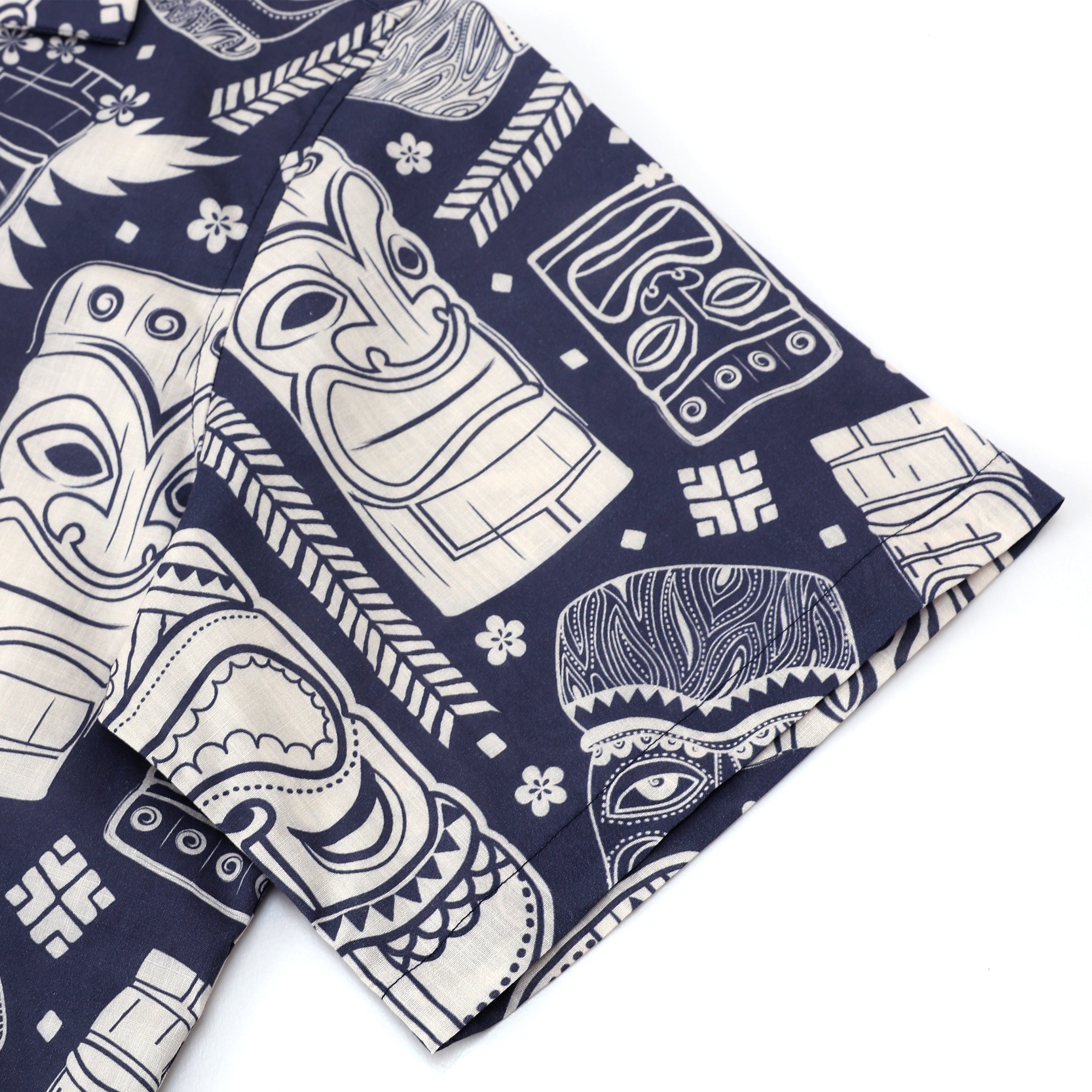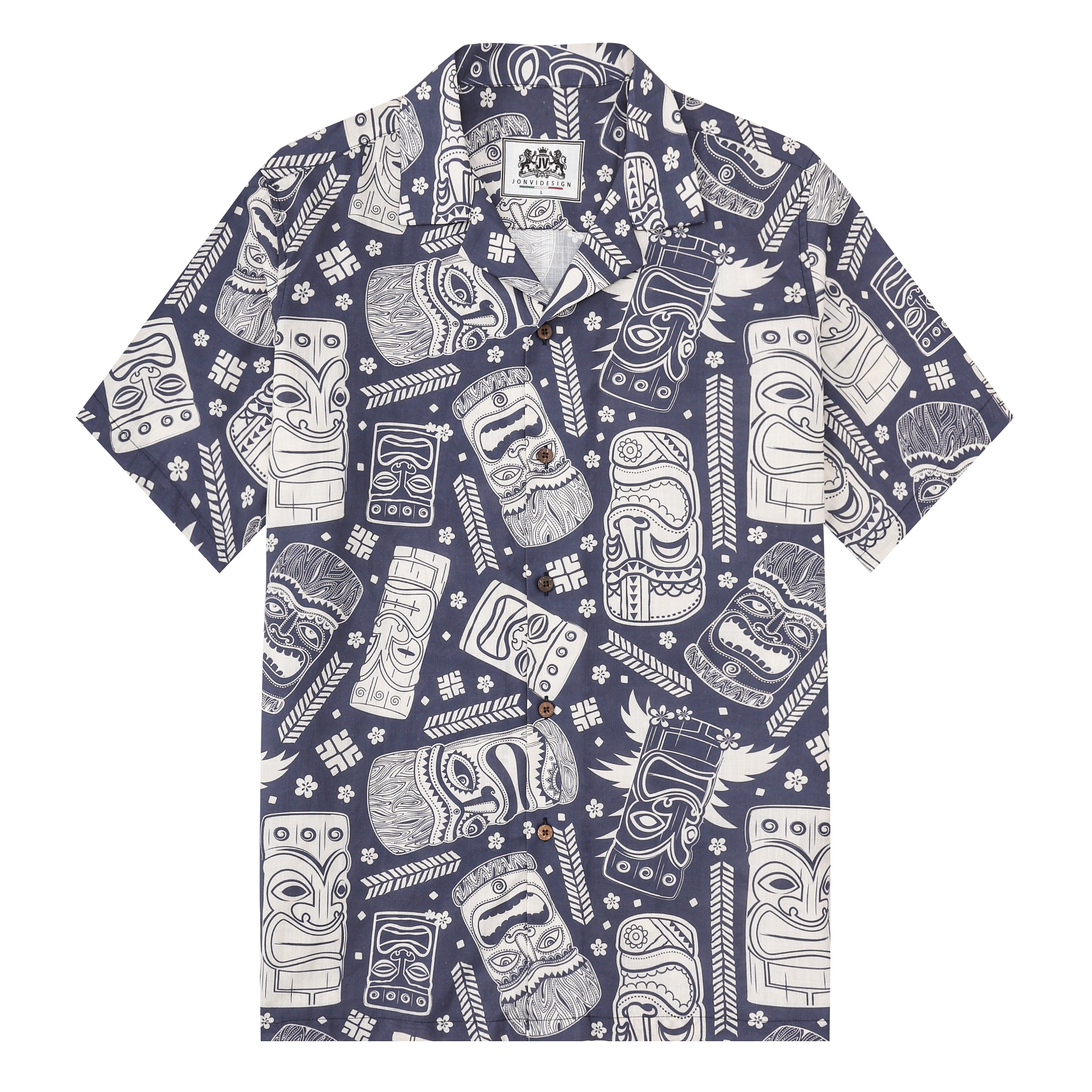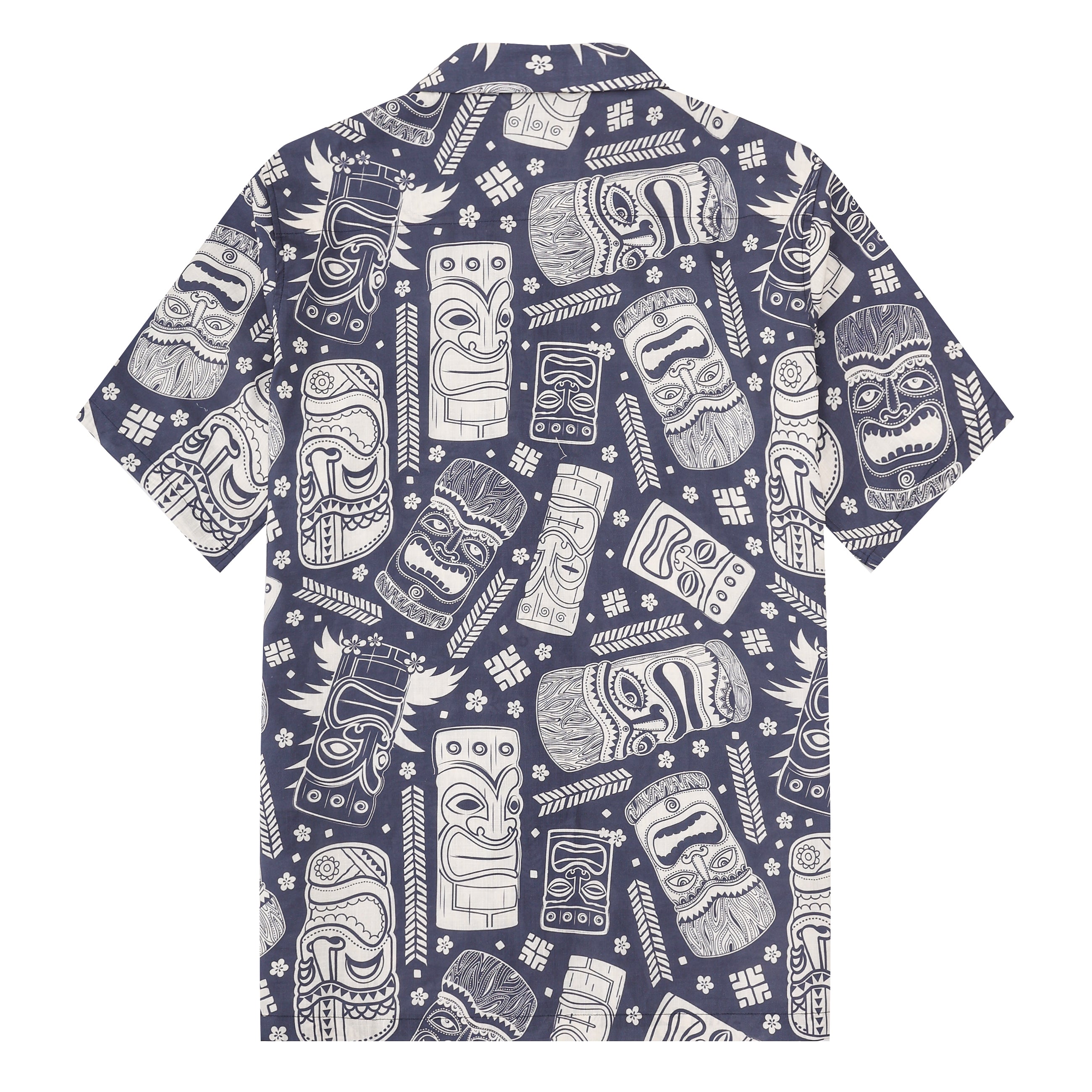 Tiki Statue Pattern Short Sleeve Camp Collar Shirt