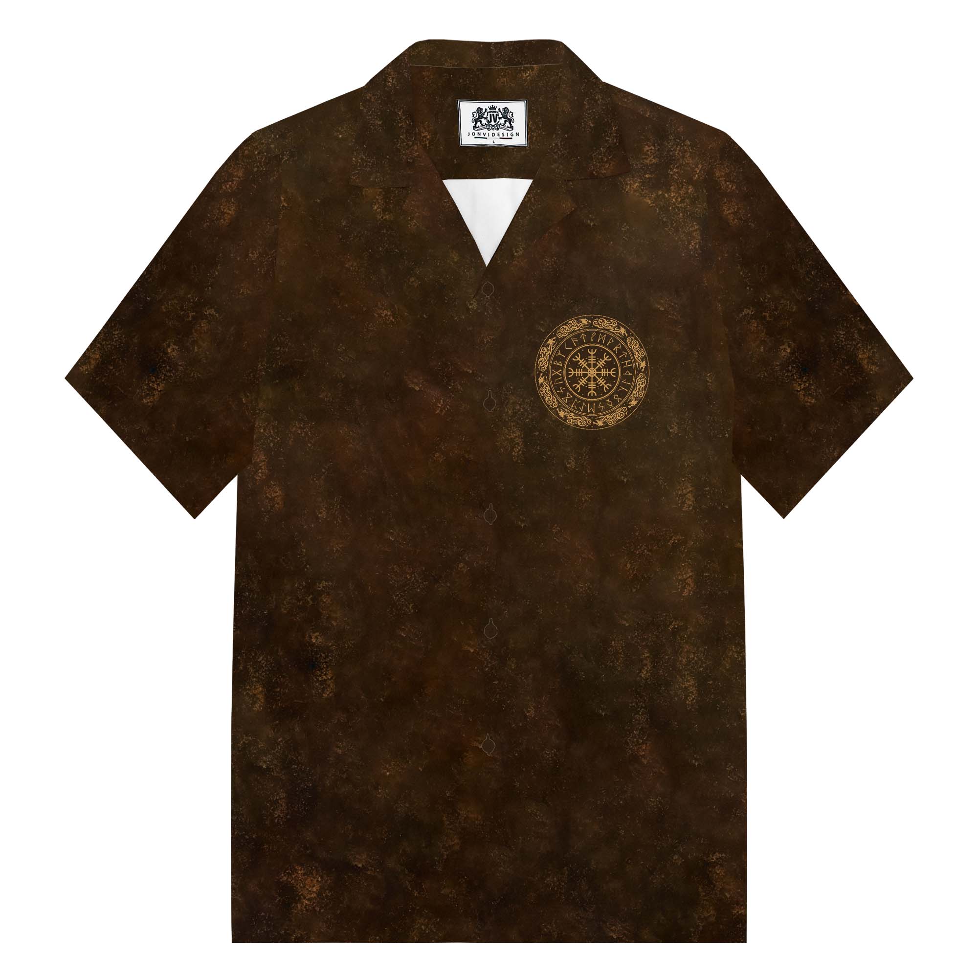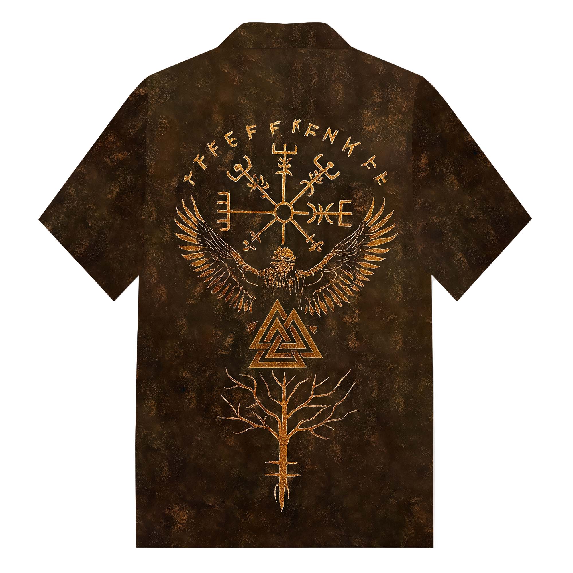 Tribal Viking Bird Graphics Camp Collar Short Sleeve Shirt