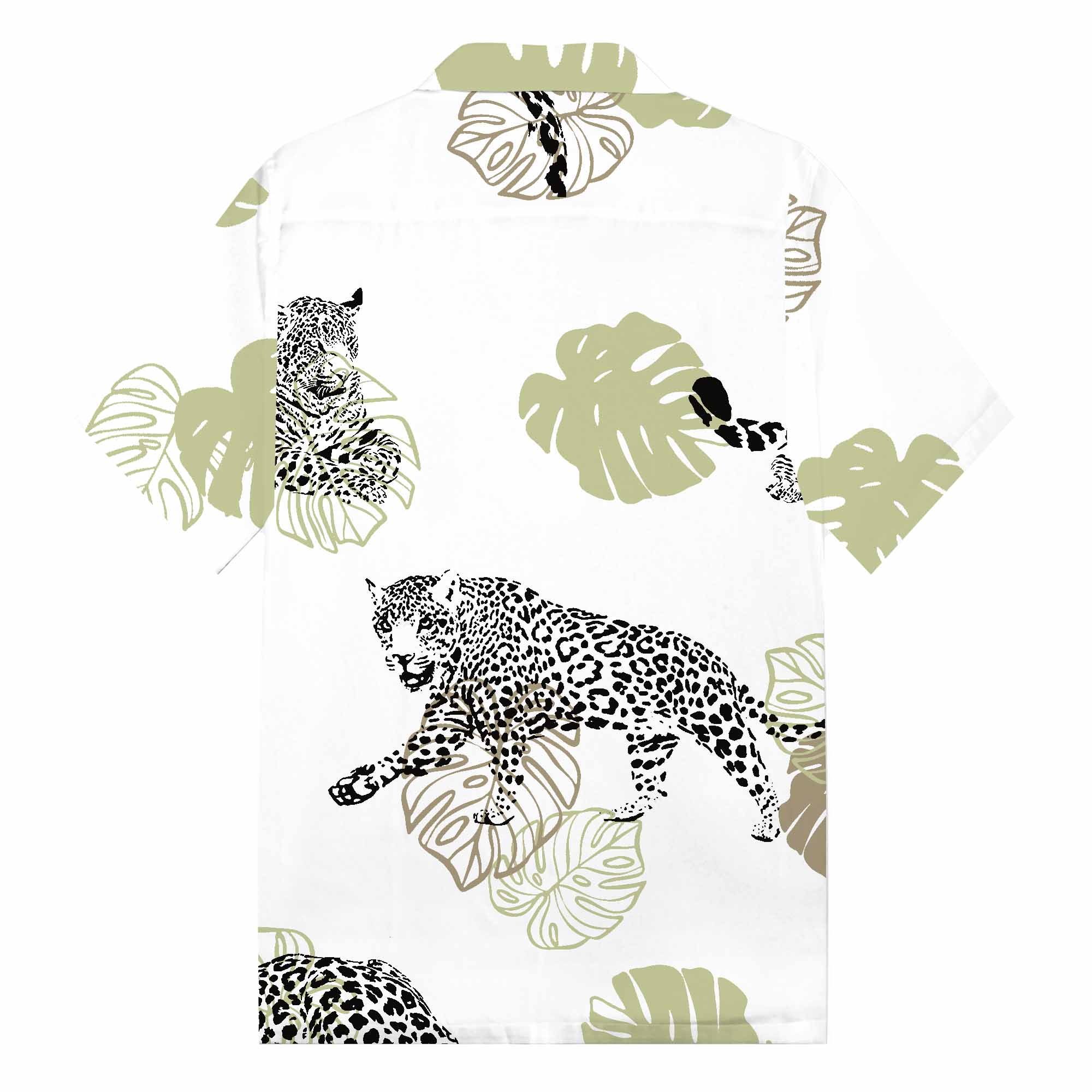 Tropical Leaves And Leopard Prints Camp Collar Short-Sleeved Shirt