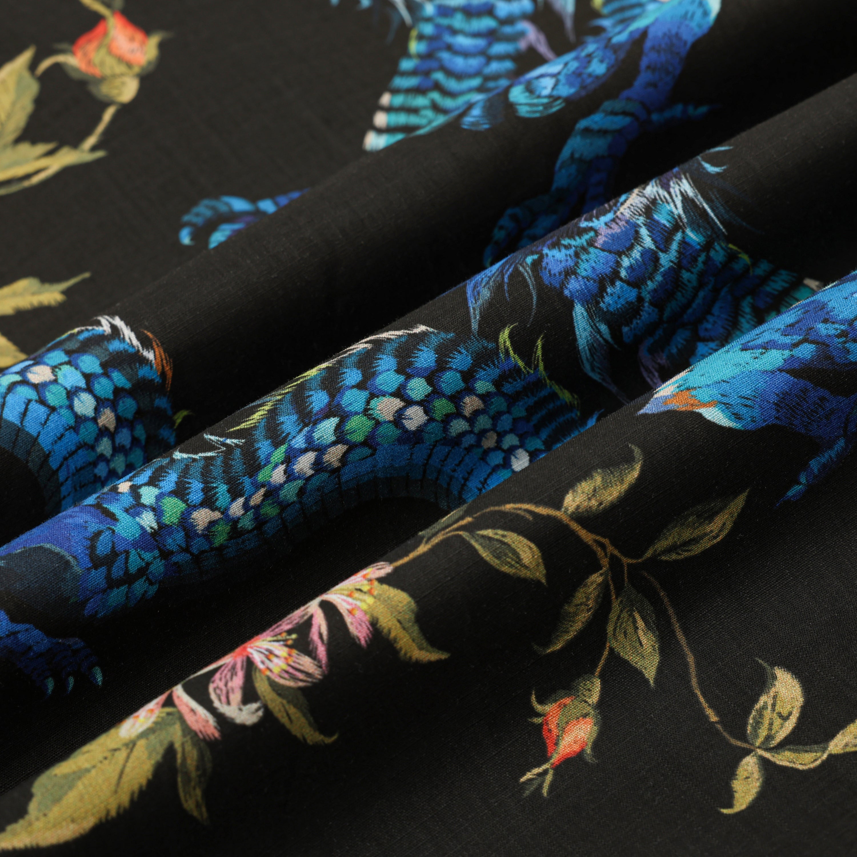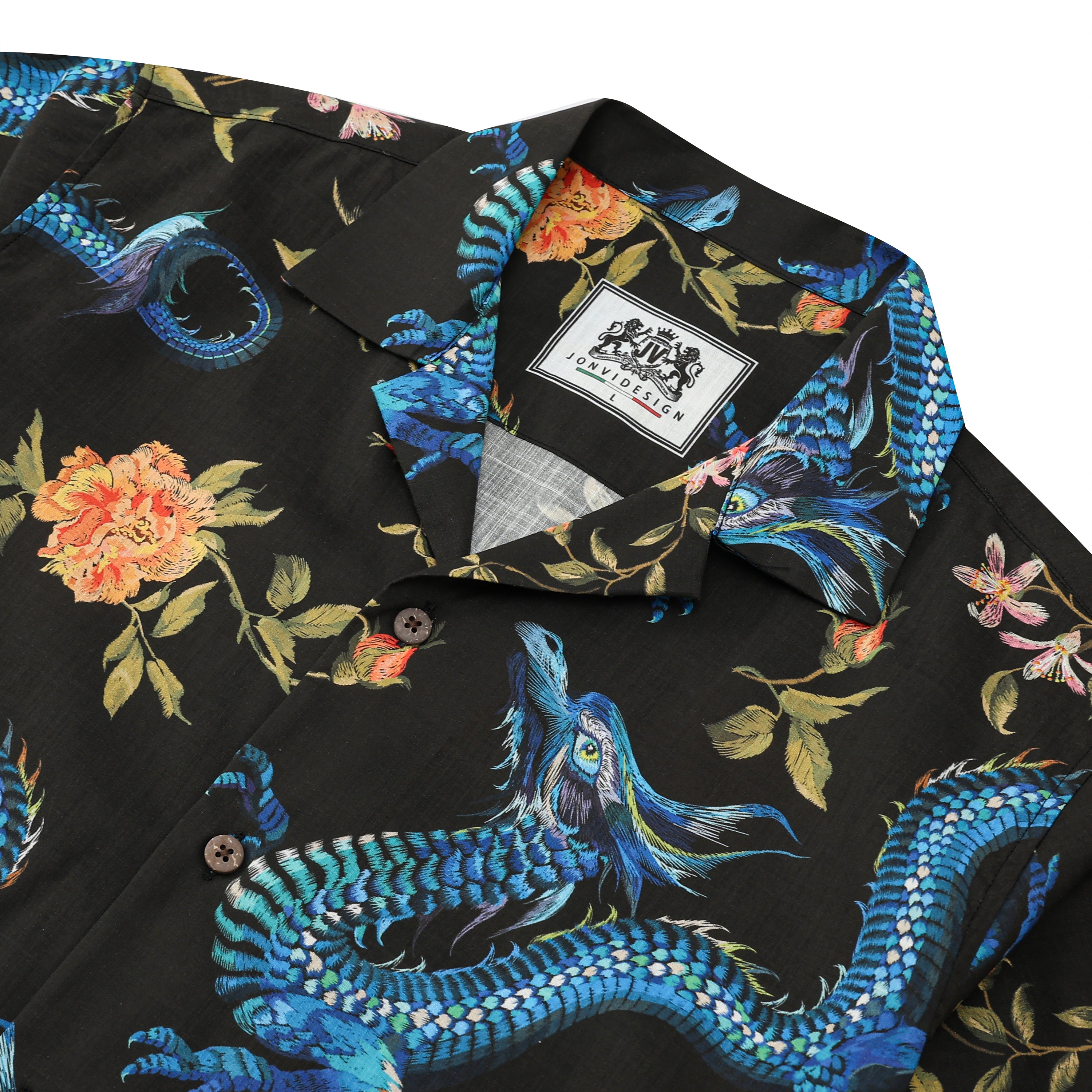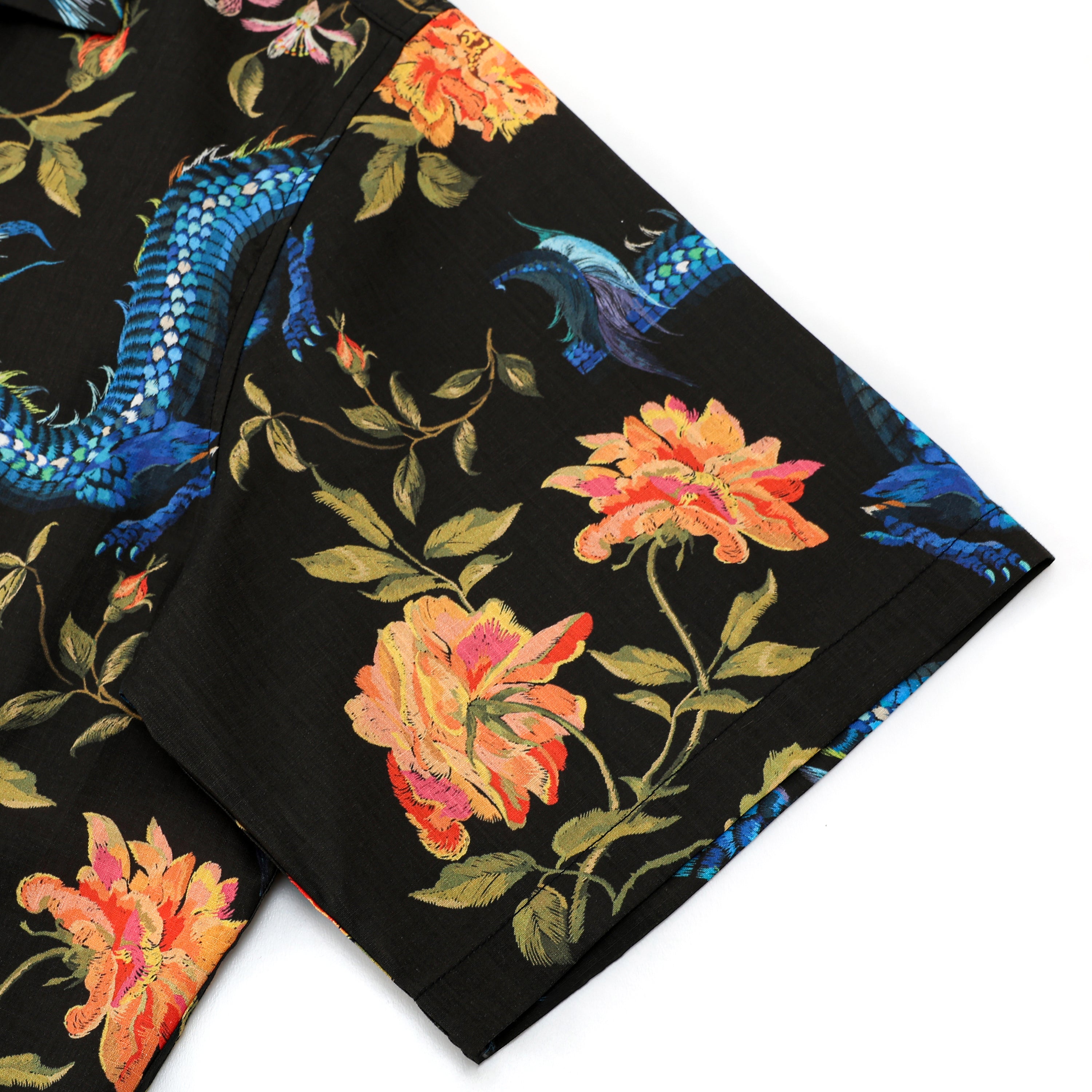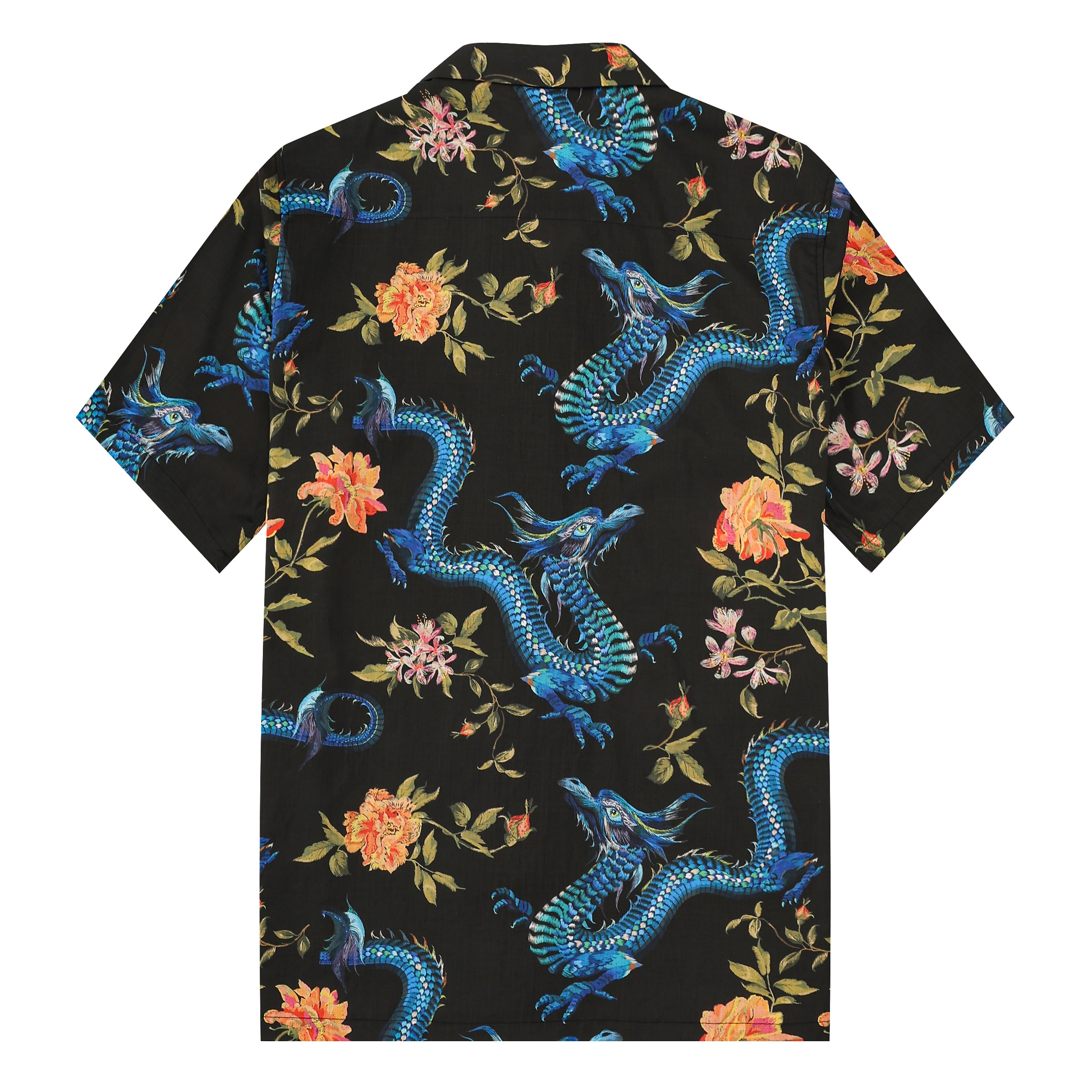 Ukiyo-e Floral Dragon Printed Camp Collar Short Sleeve Shirt