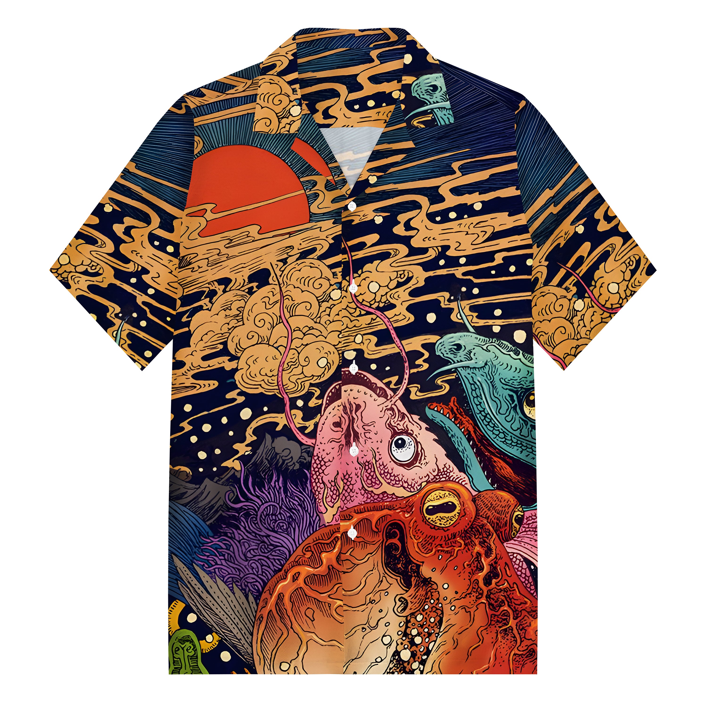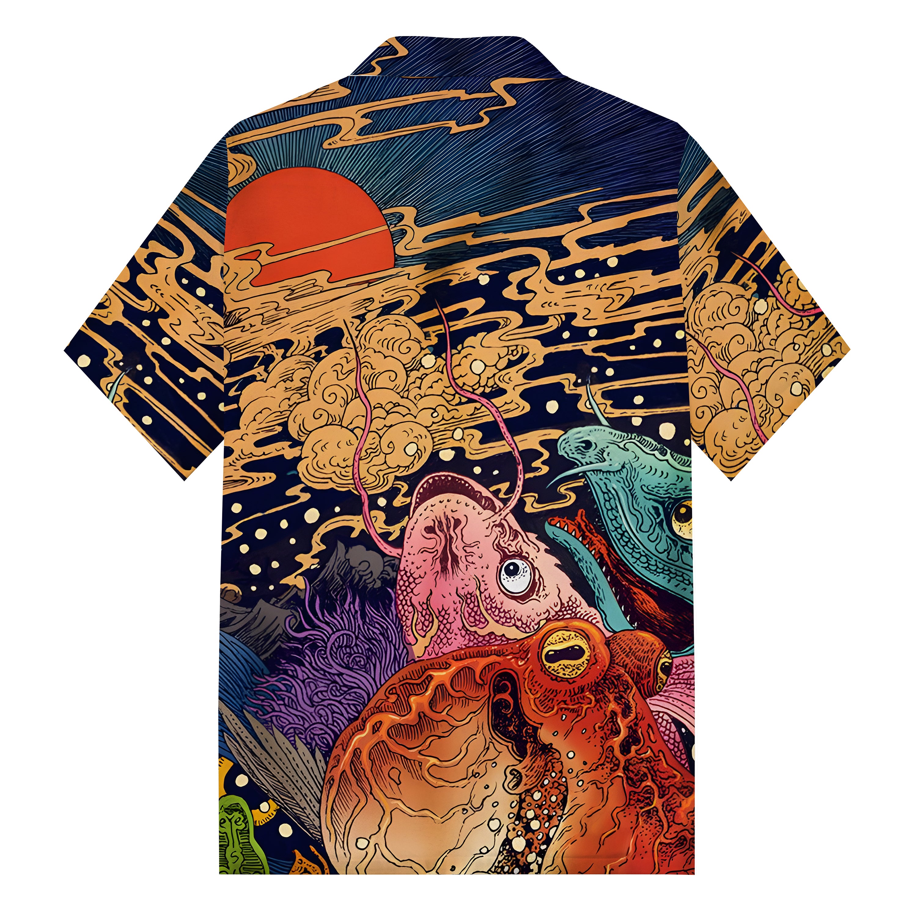 Ukiyoe Marine Life Print Camp Collar Short Sleeve Shirt