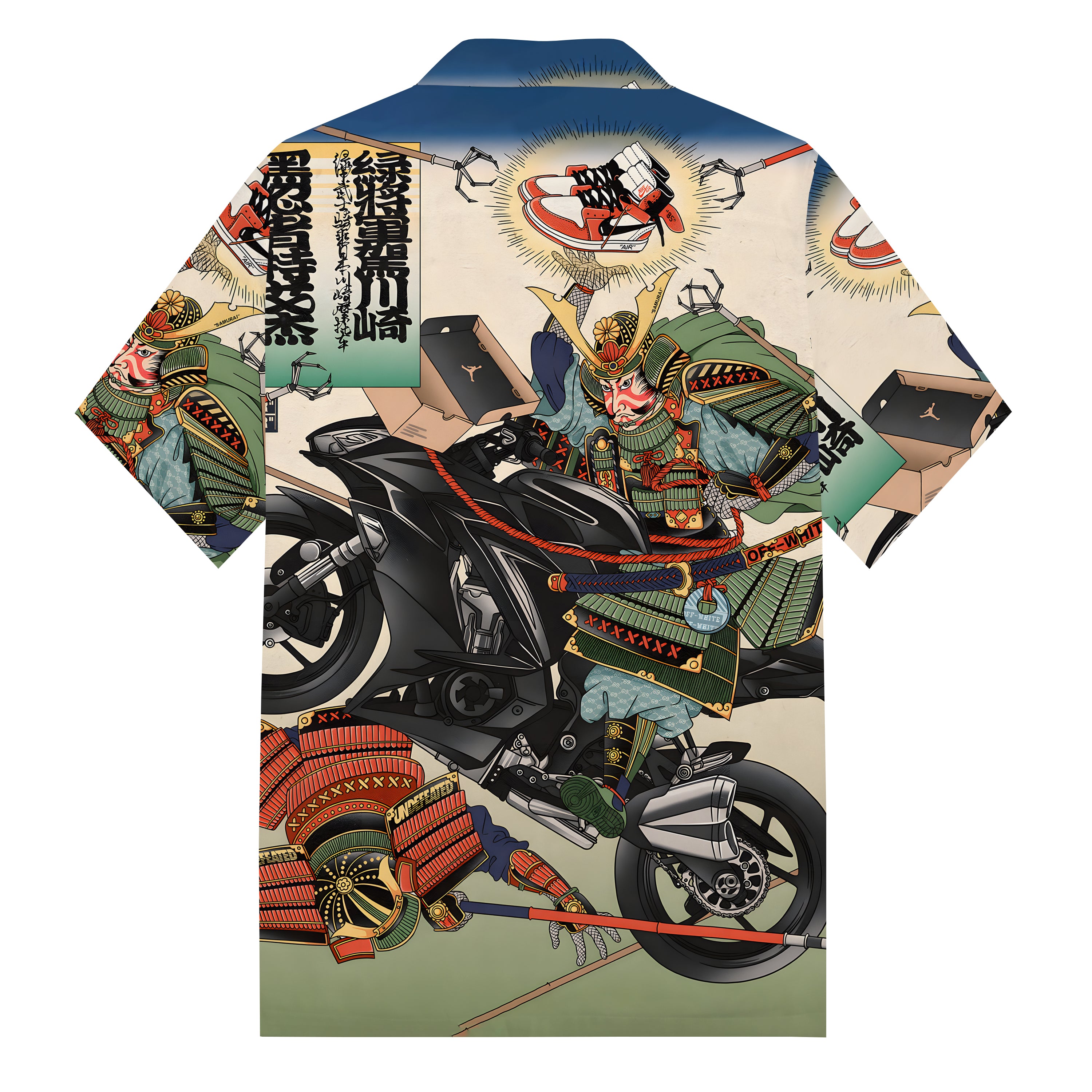 Ukiyoe Motorcycle Print Camp Collar Short Sleeve Shirt