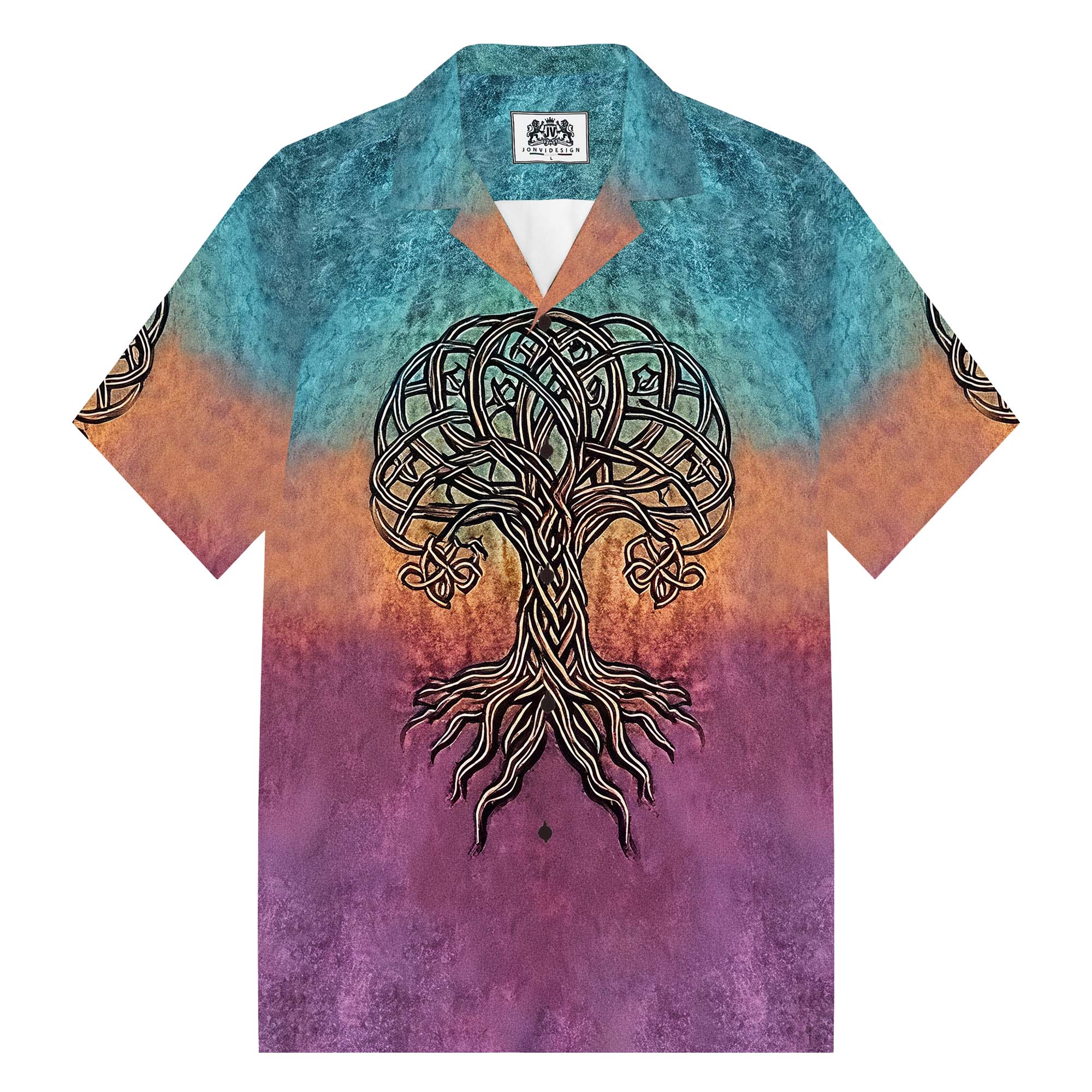 Viking-Style Tree Of Life Celtic Knot Art Camp Collar Short Sleeve Shirt