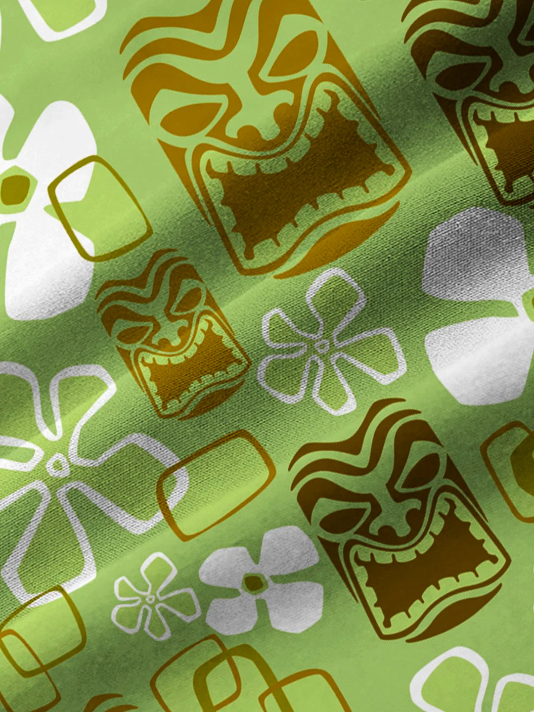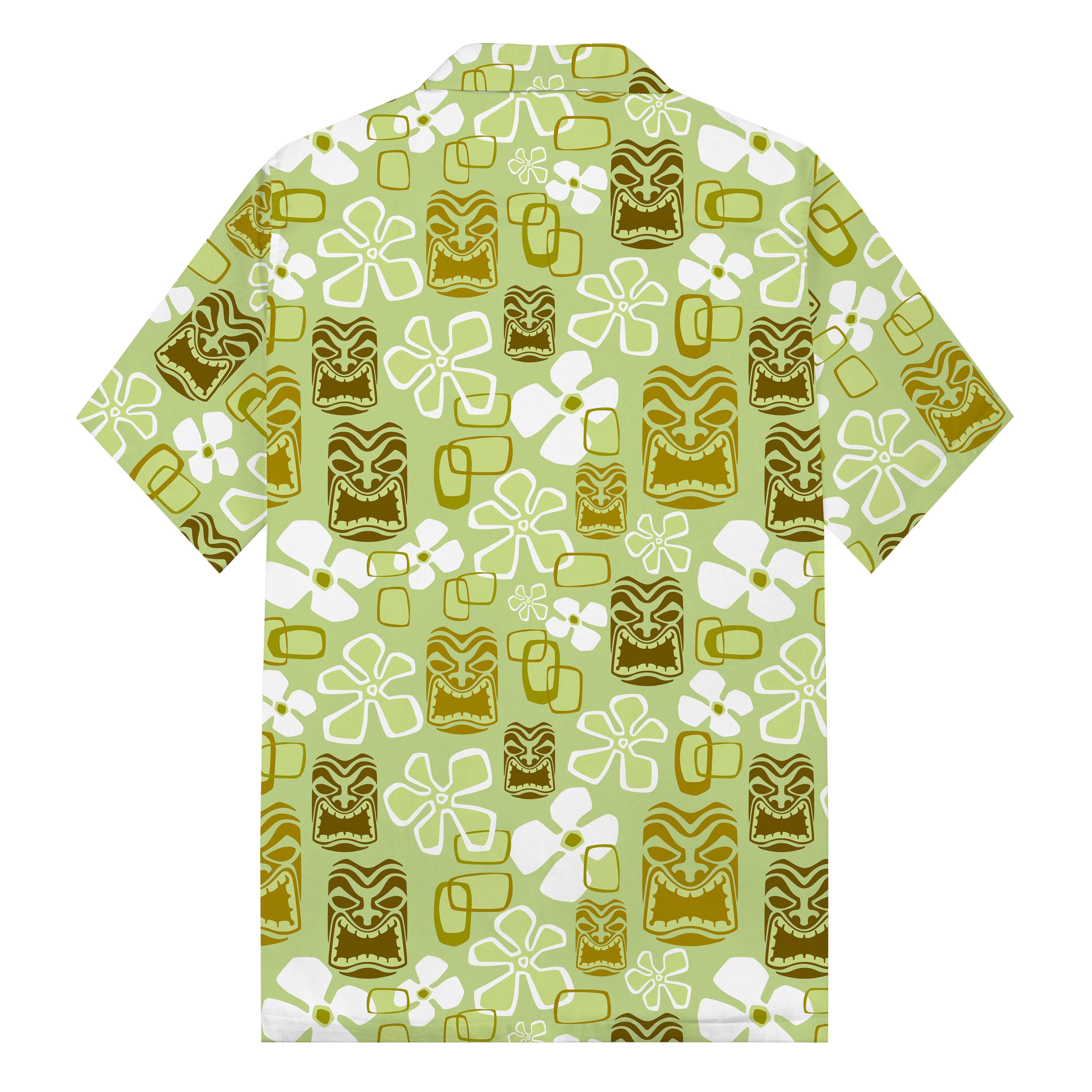 Vintage Holiday Tiki Art Green Men's Hawaiian Camp Collar Short Sleeve Shirt