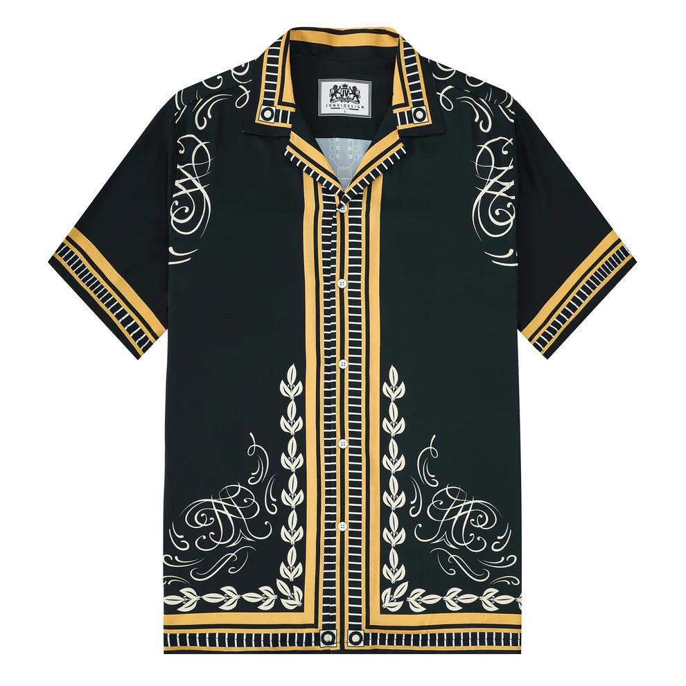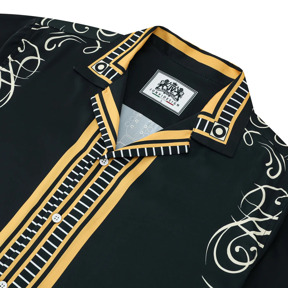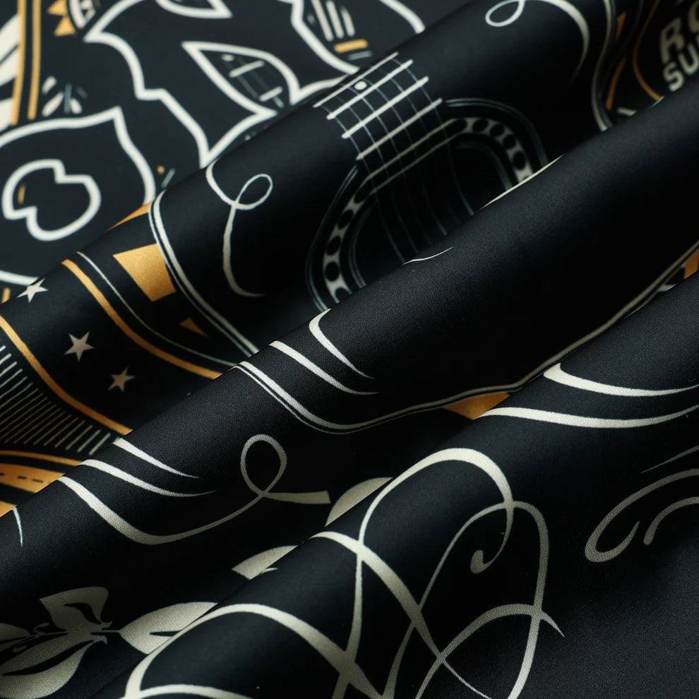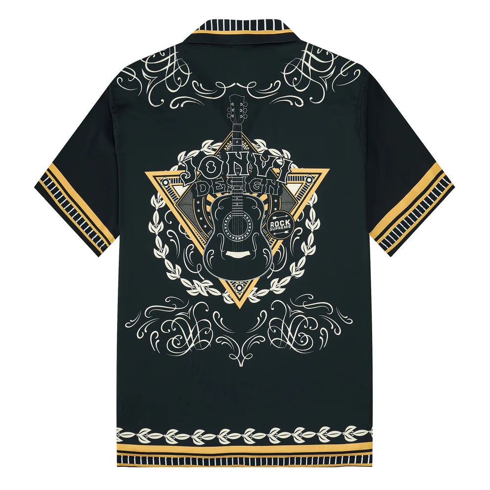 Rockstar Outfit Guitar Pattern Camp Collar Casual Shirt for Men