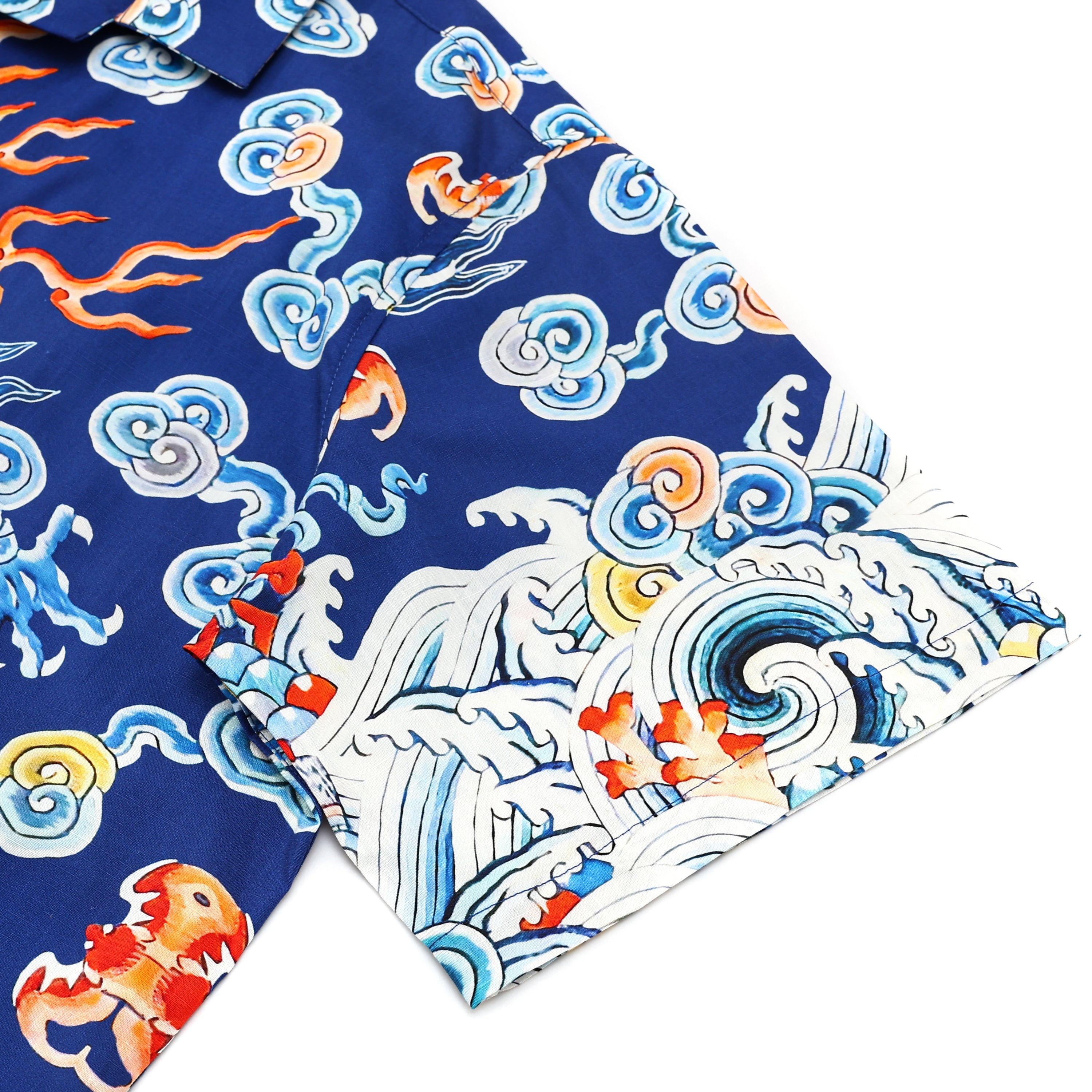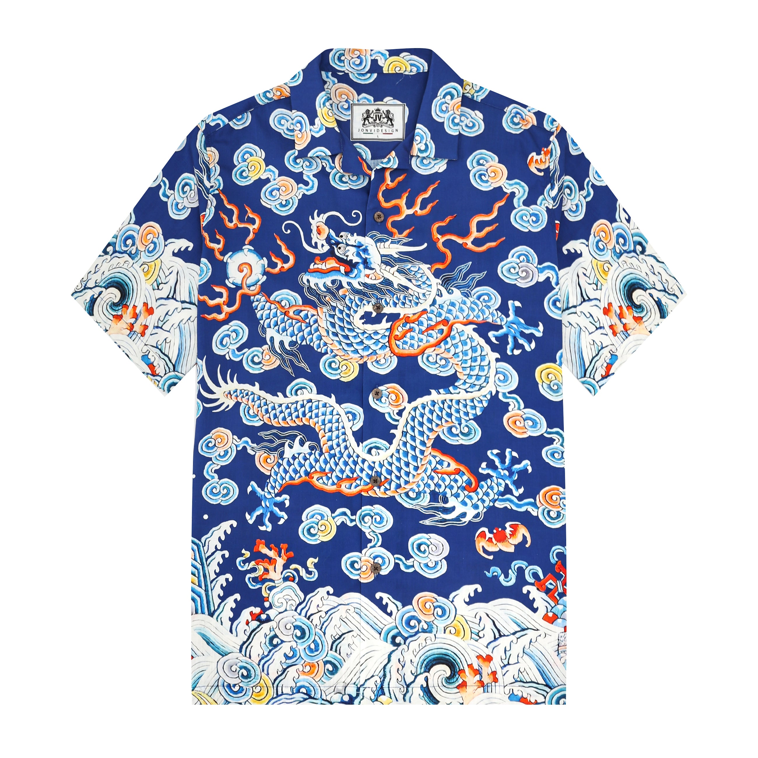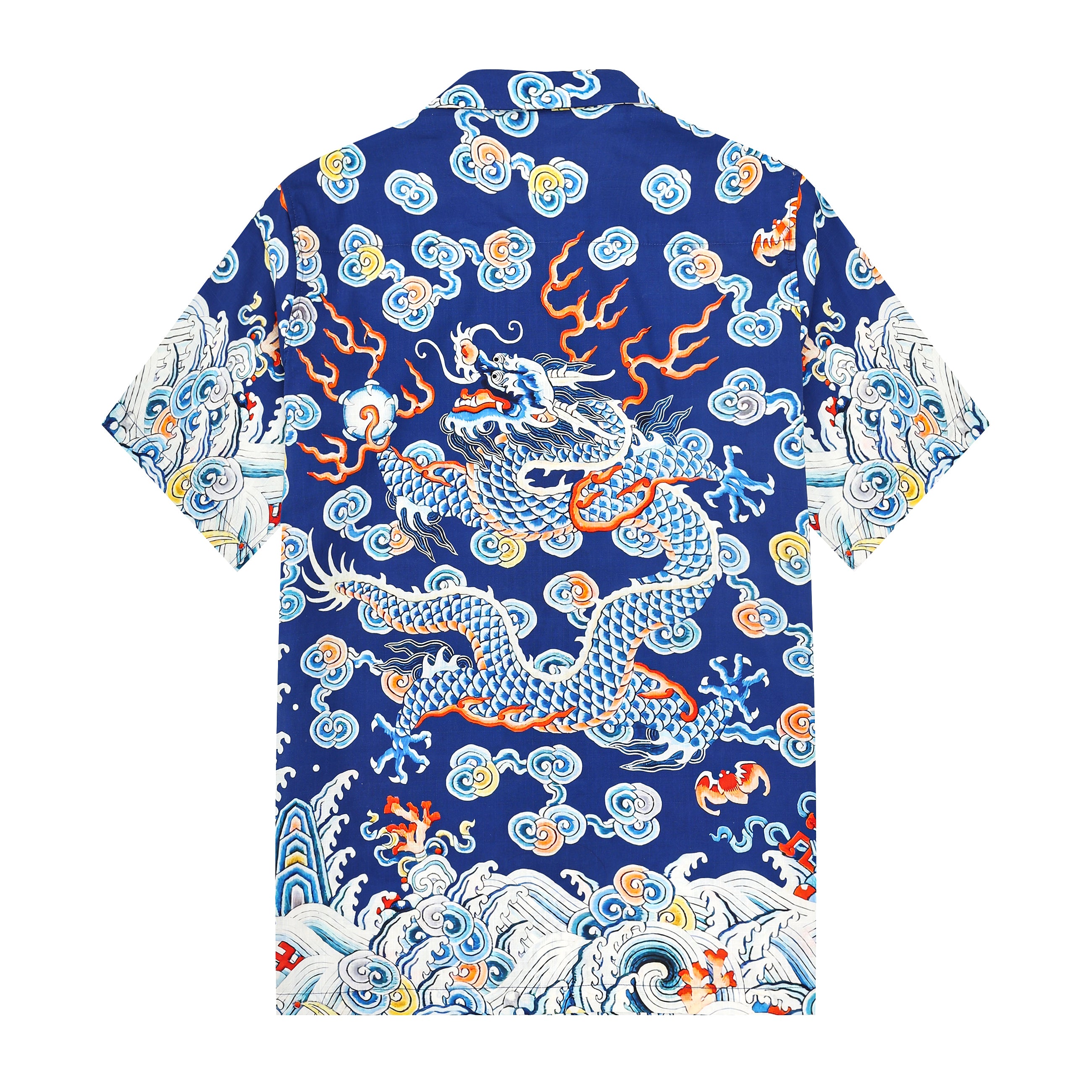 Wave Dragon Printed Camp Collar Short Sleeve Shirt