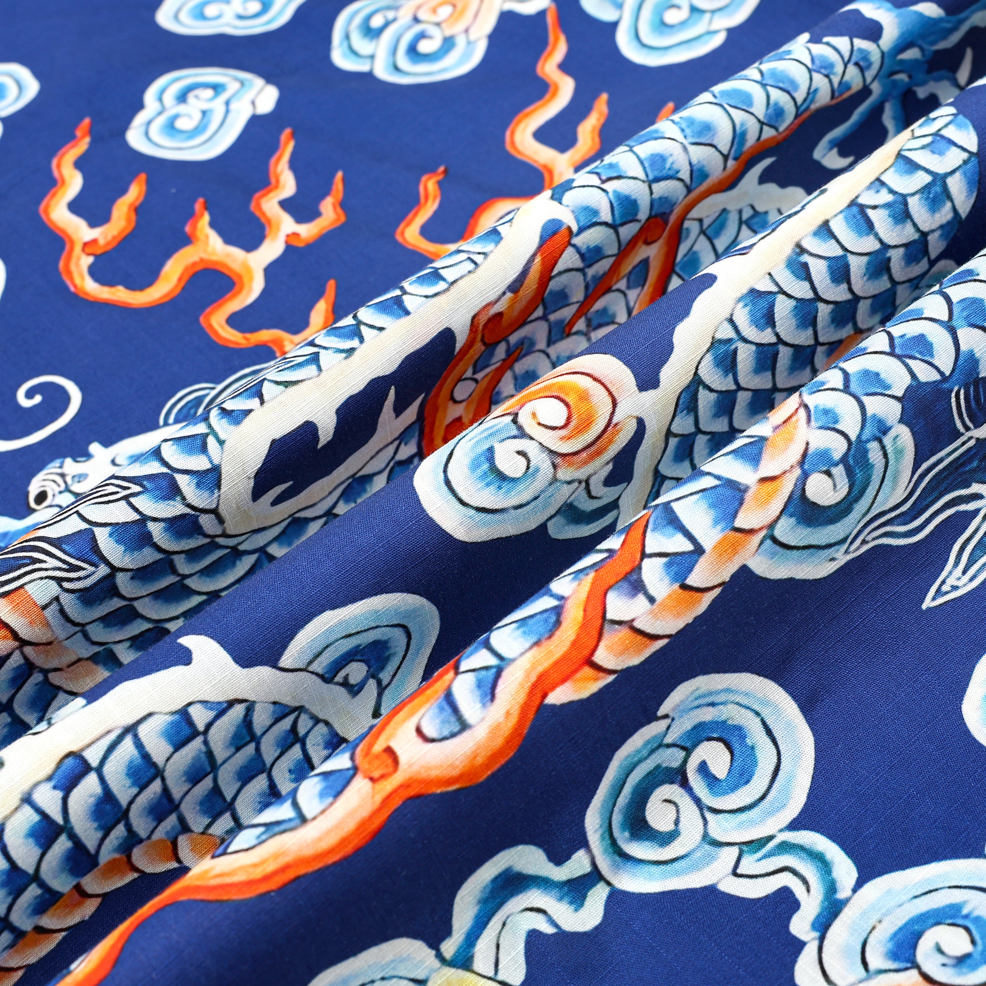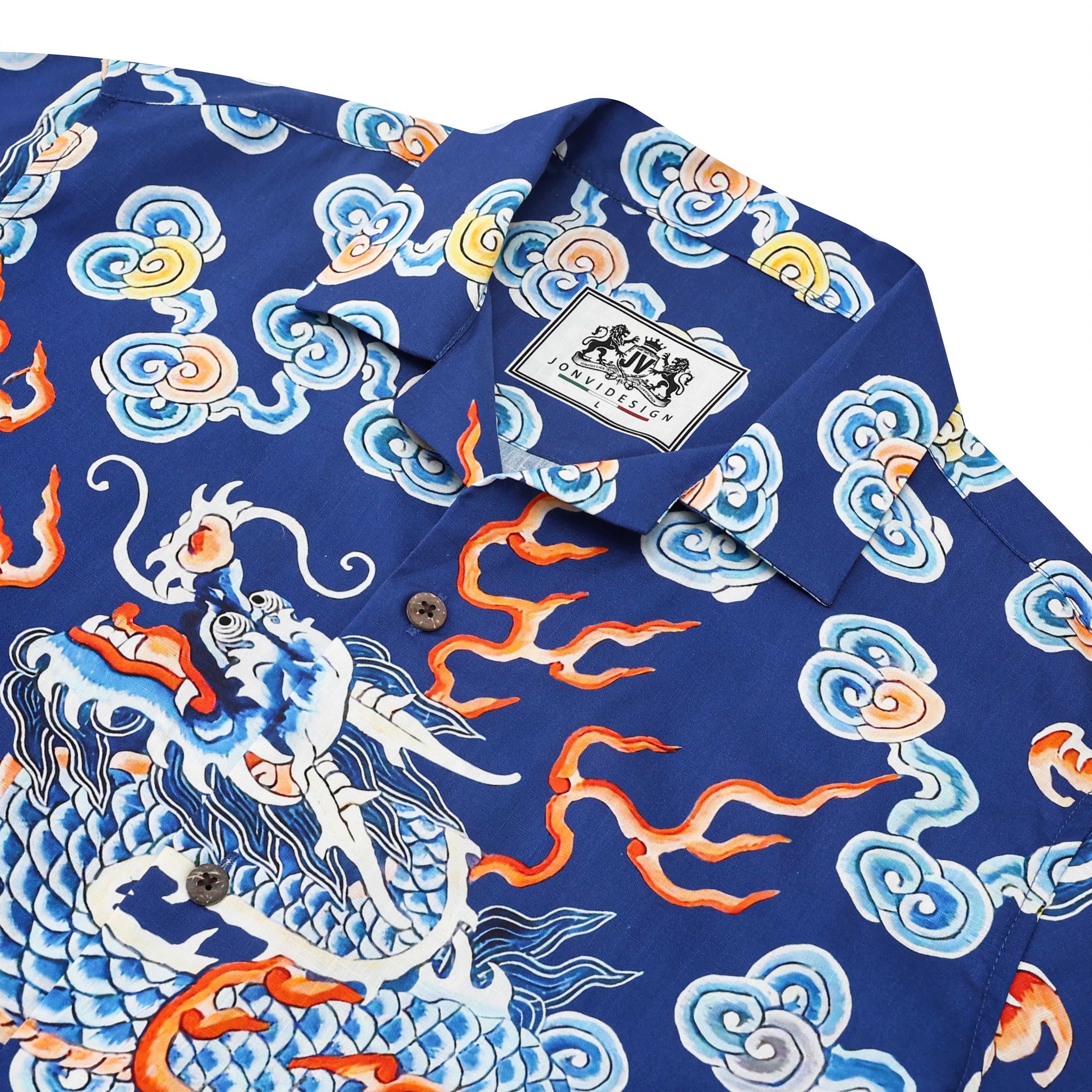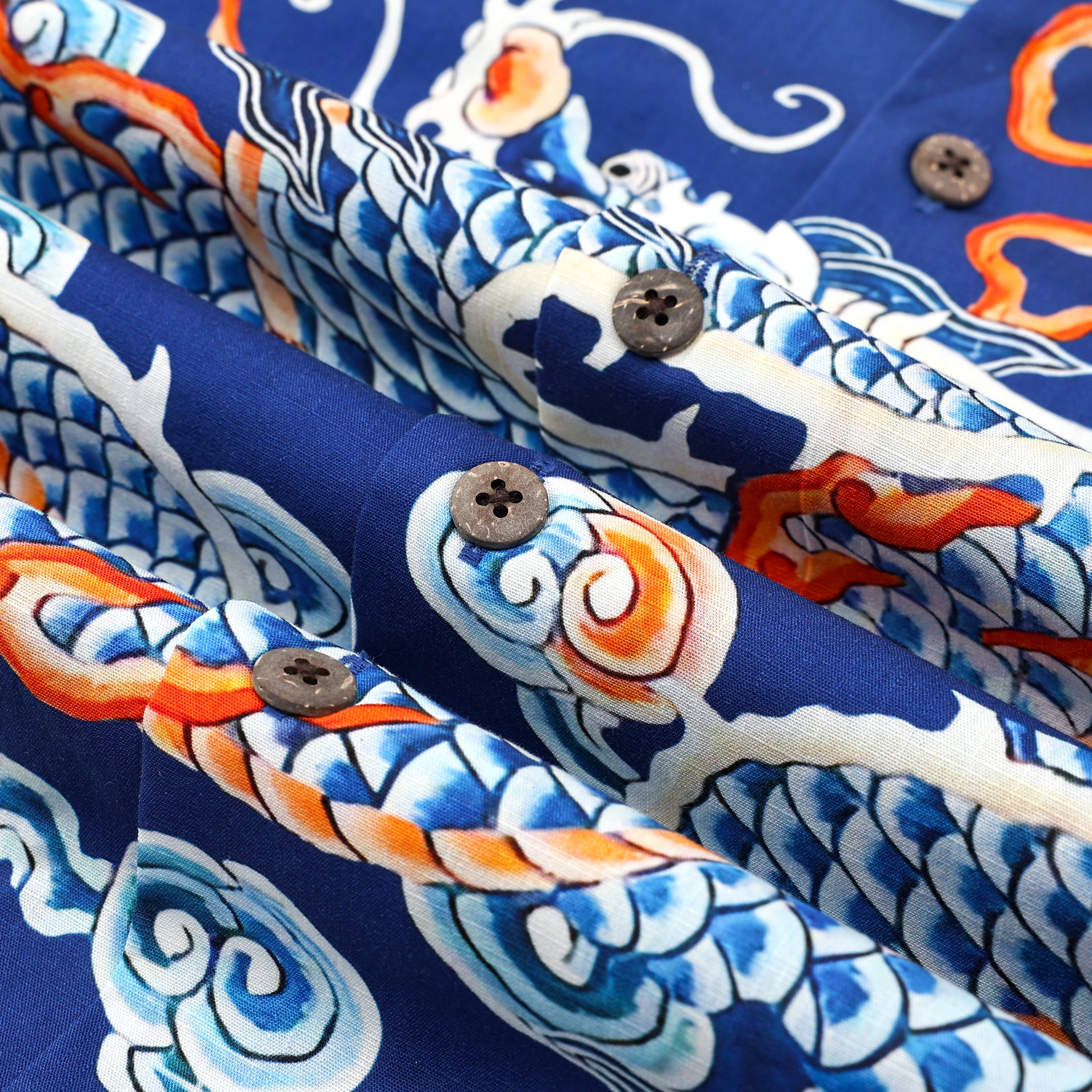 Wave Dragon Printed Camp Collar Short Sleeve Shirt
