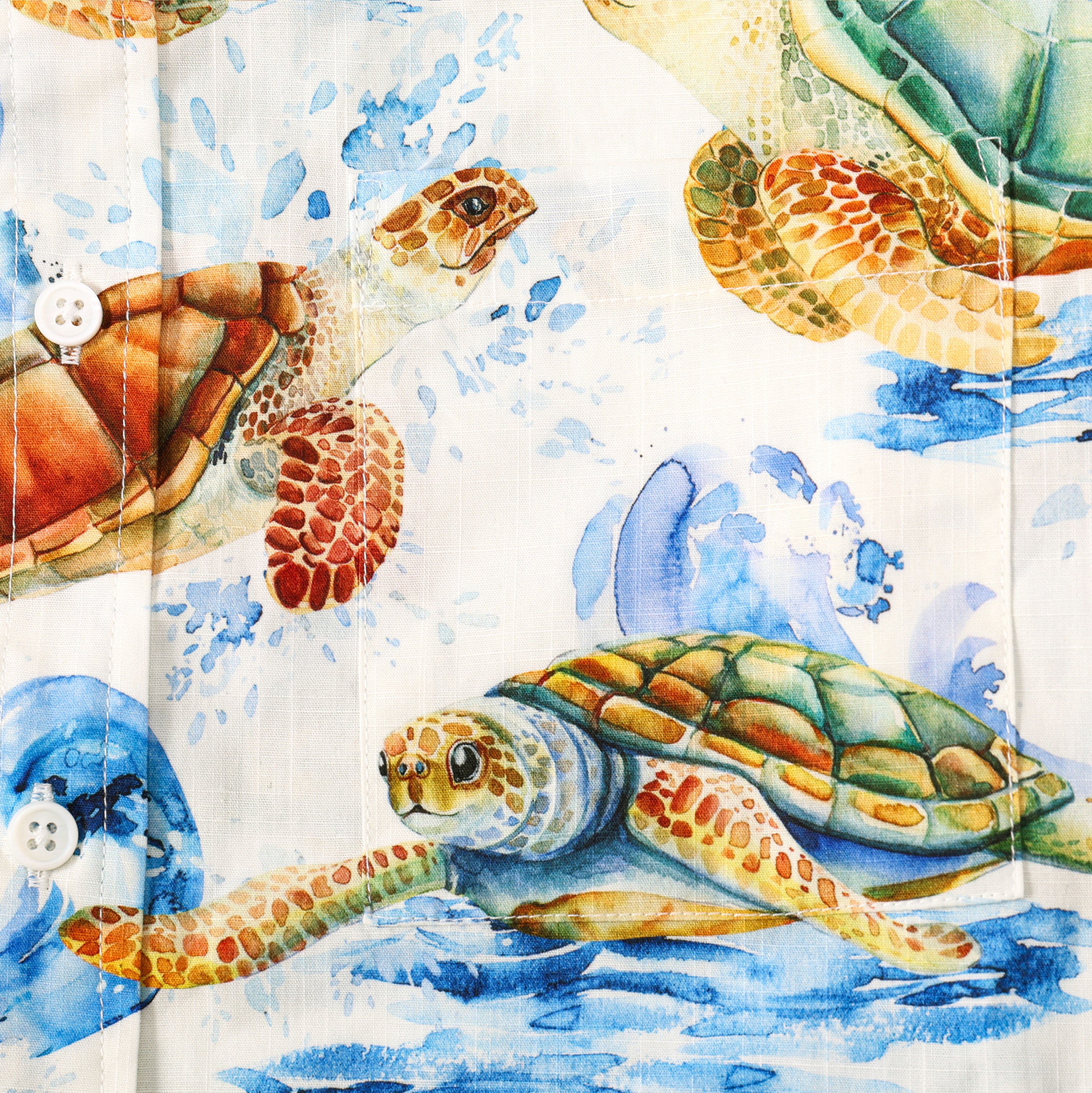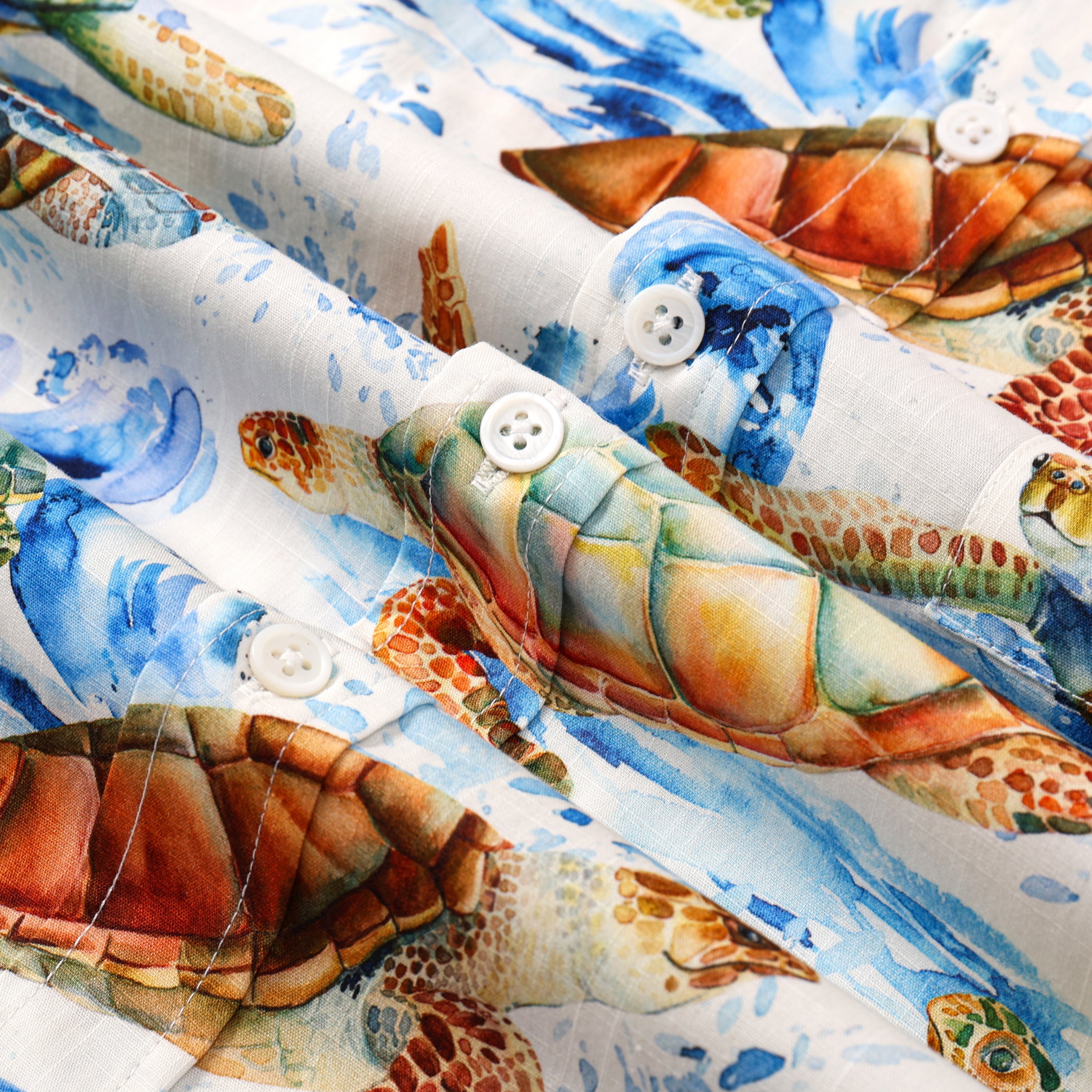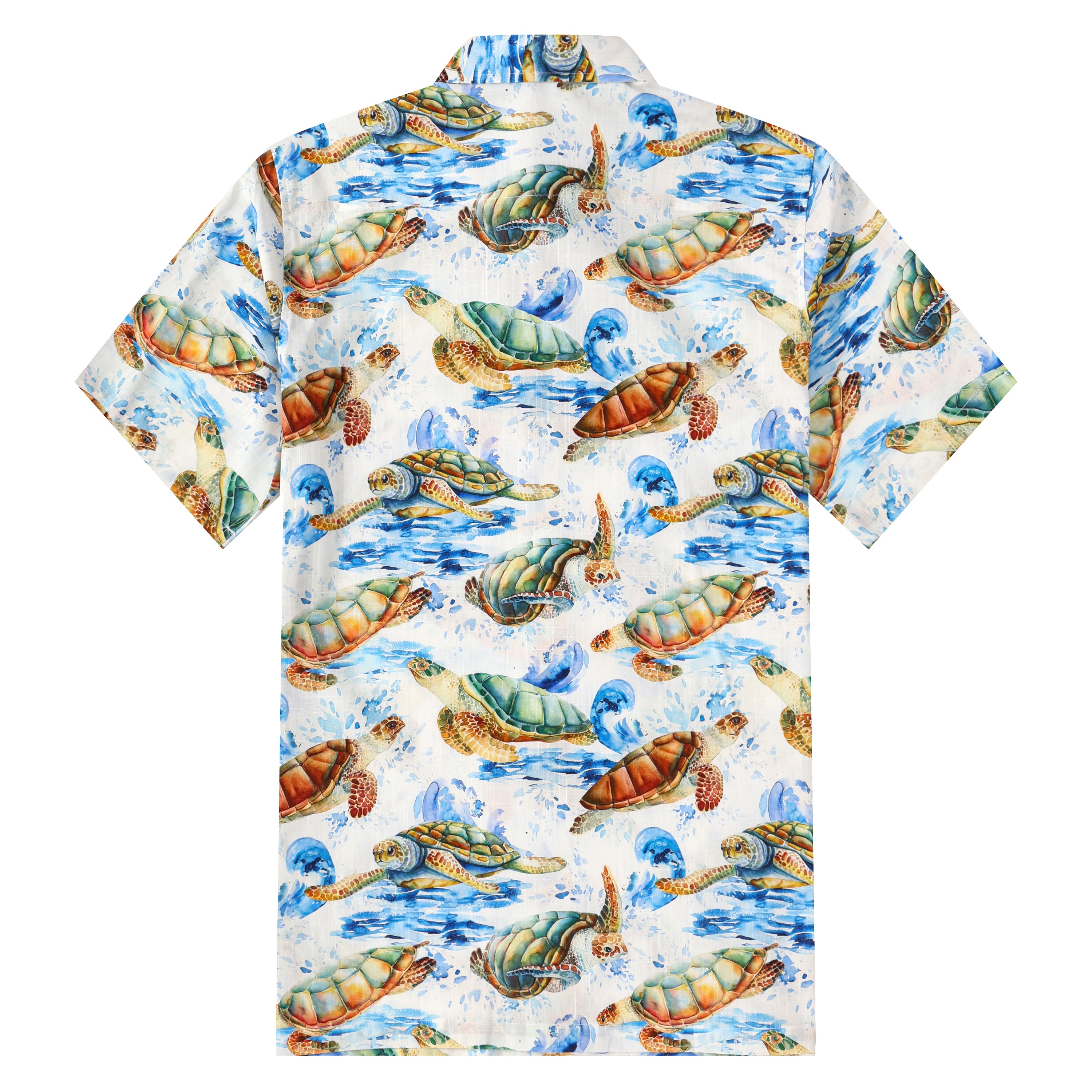 Wave Turtle Pattern Button Short Sleeve Shirt
