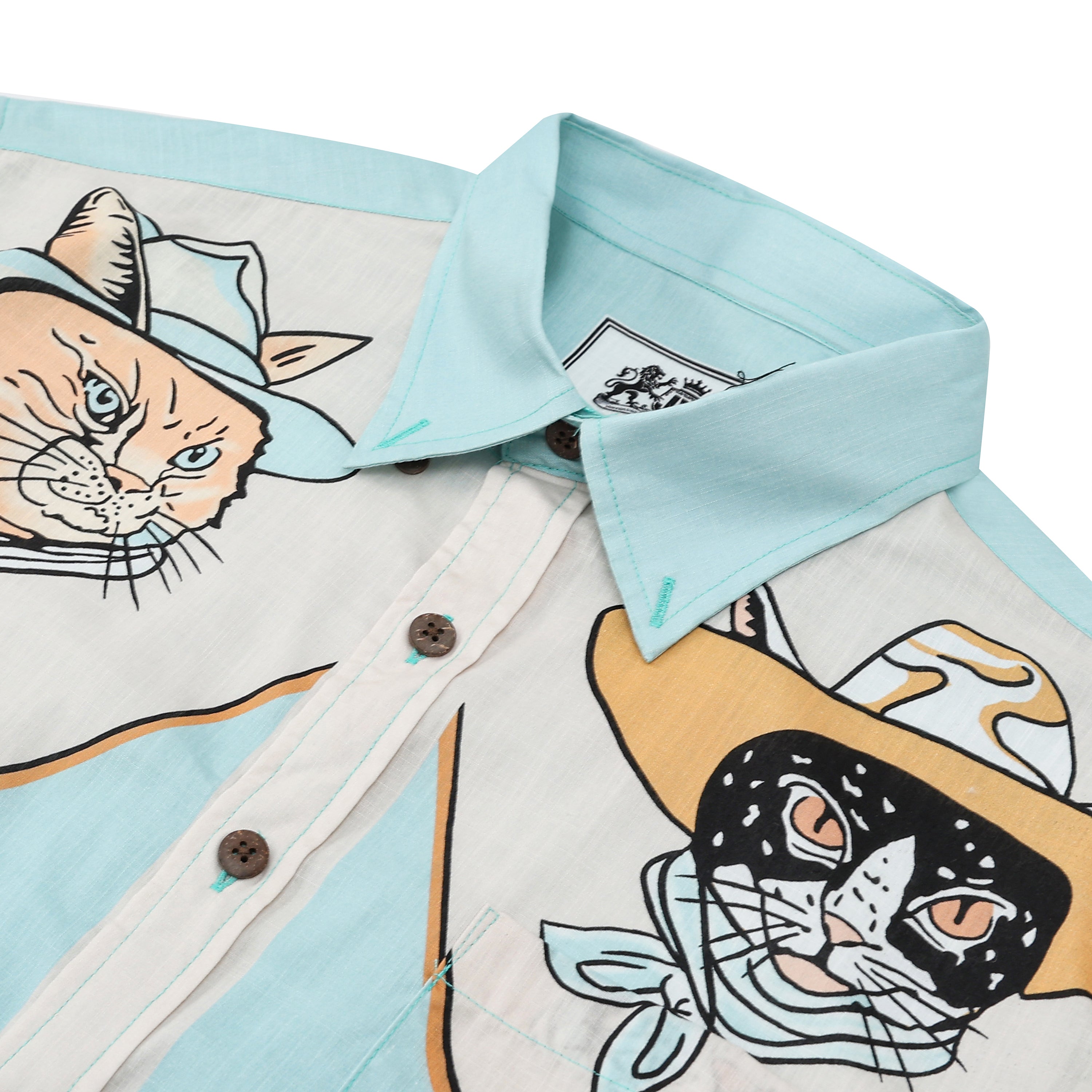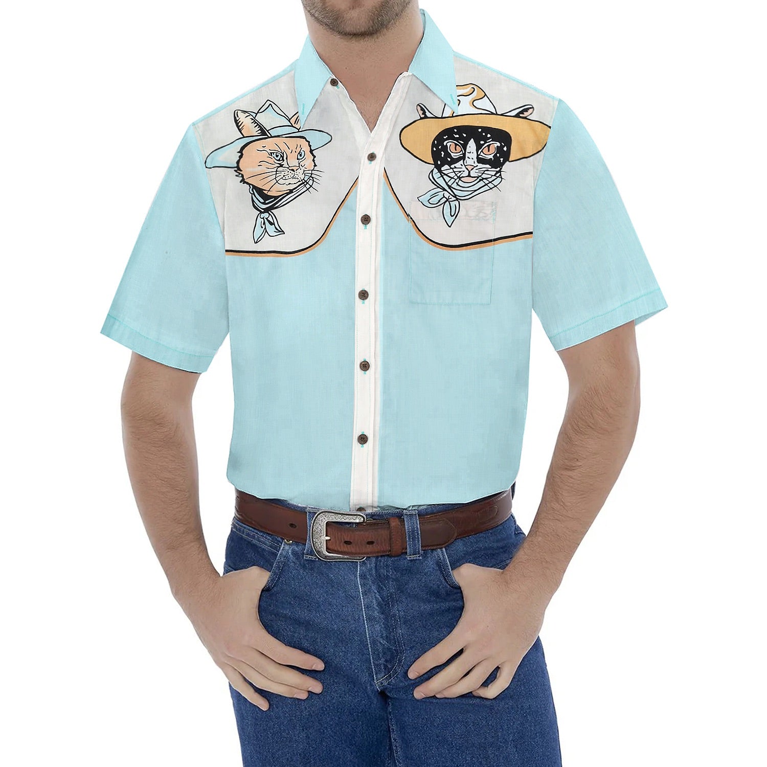 Western Cat Pattern Cattlemen Short Sleeve Shirt for Men