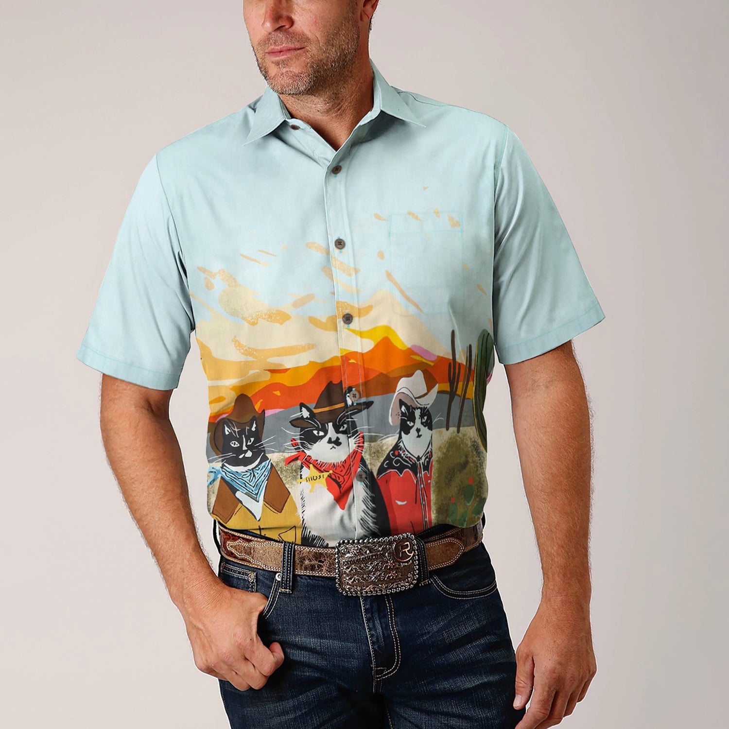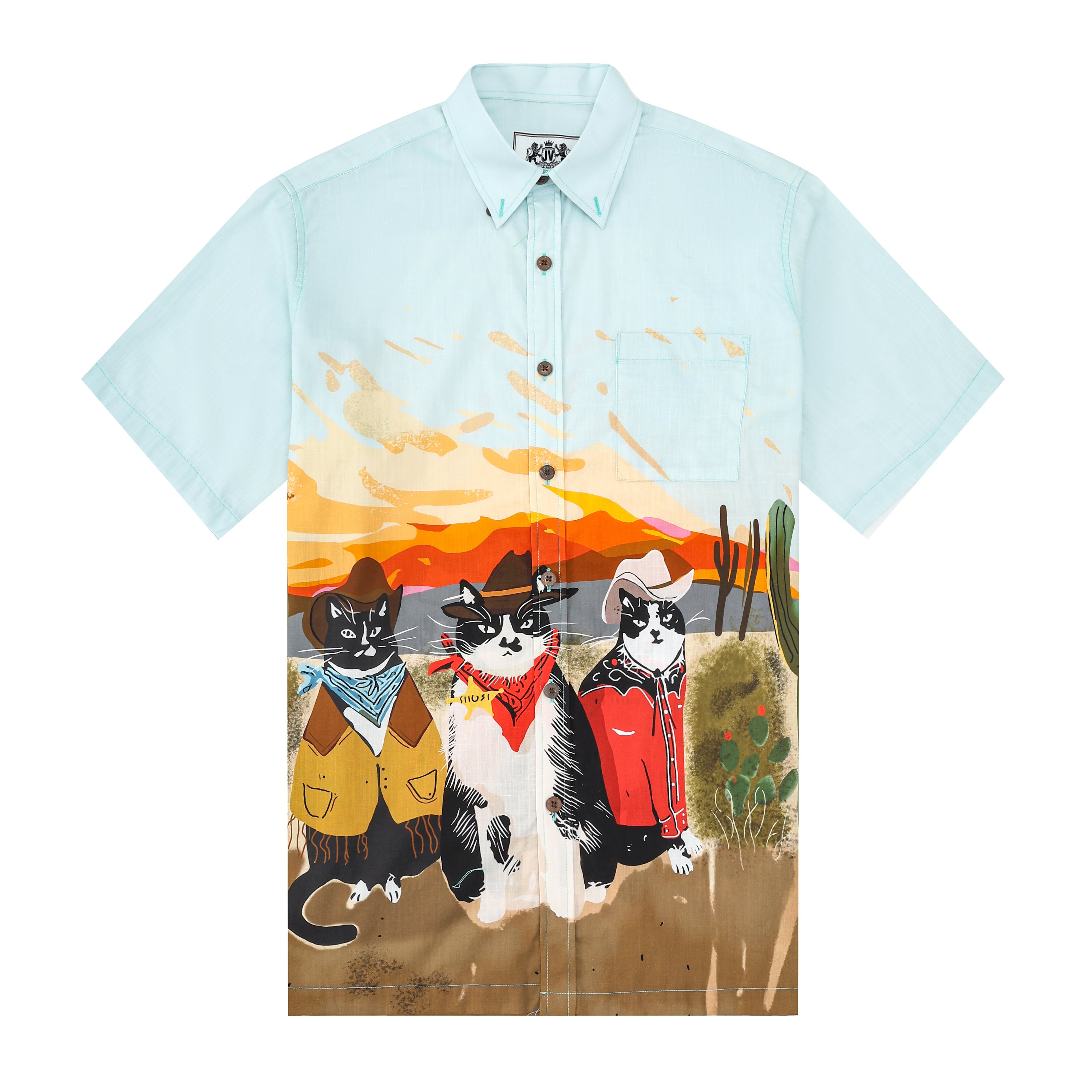 Western Cowboy 3 Cats Pattern Short Sleeve Shirt