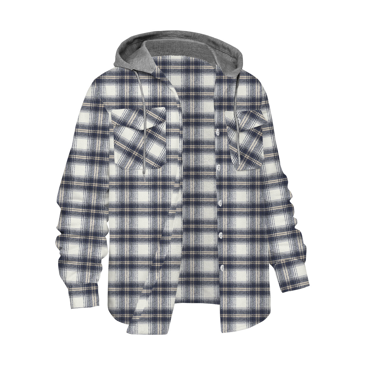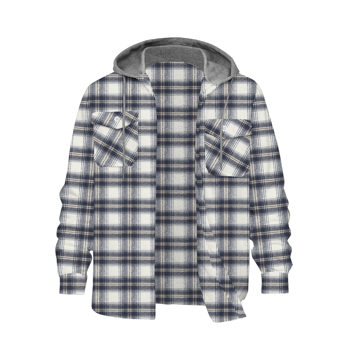 XK-40-43 Plaid Long Sleeve Hooded Shirt